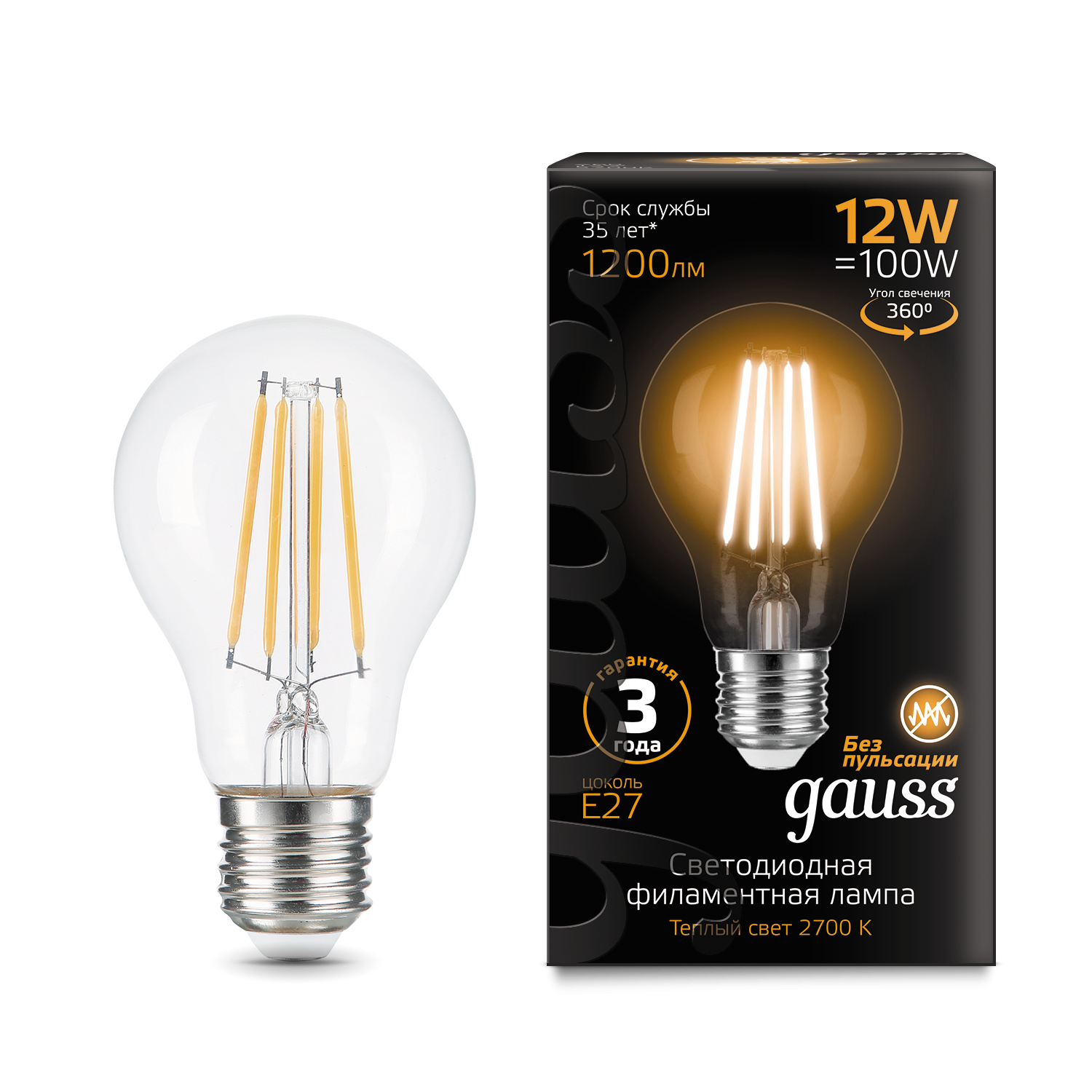 Светодиодные филаментные лампы GAUSS - это новейшие технологии в светотехнике. Лампы имеют привычный вид классических ламп накаливания, освещают пространство на 360о и дают больше света по сравнению с обычными светодиодными лампами за счет прозрачной колбы. Идеально подходят для хрустальных люстр и открытых светильников, а также для реализации дизайнерских решений, где важен вид классических ламп накаливания.