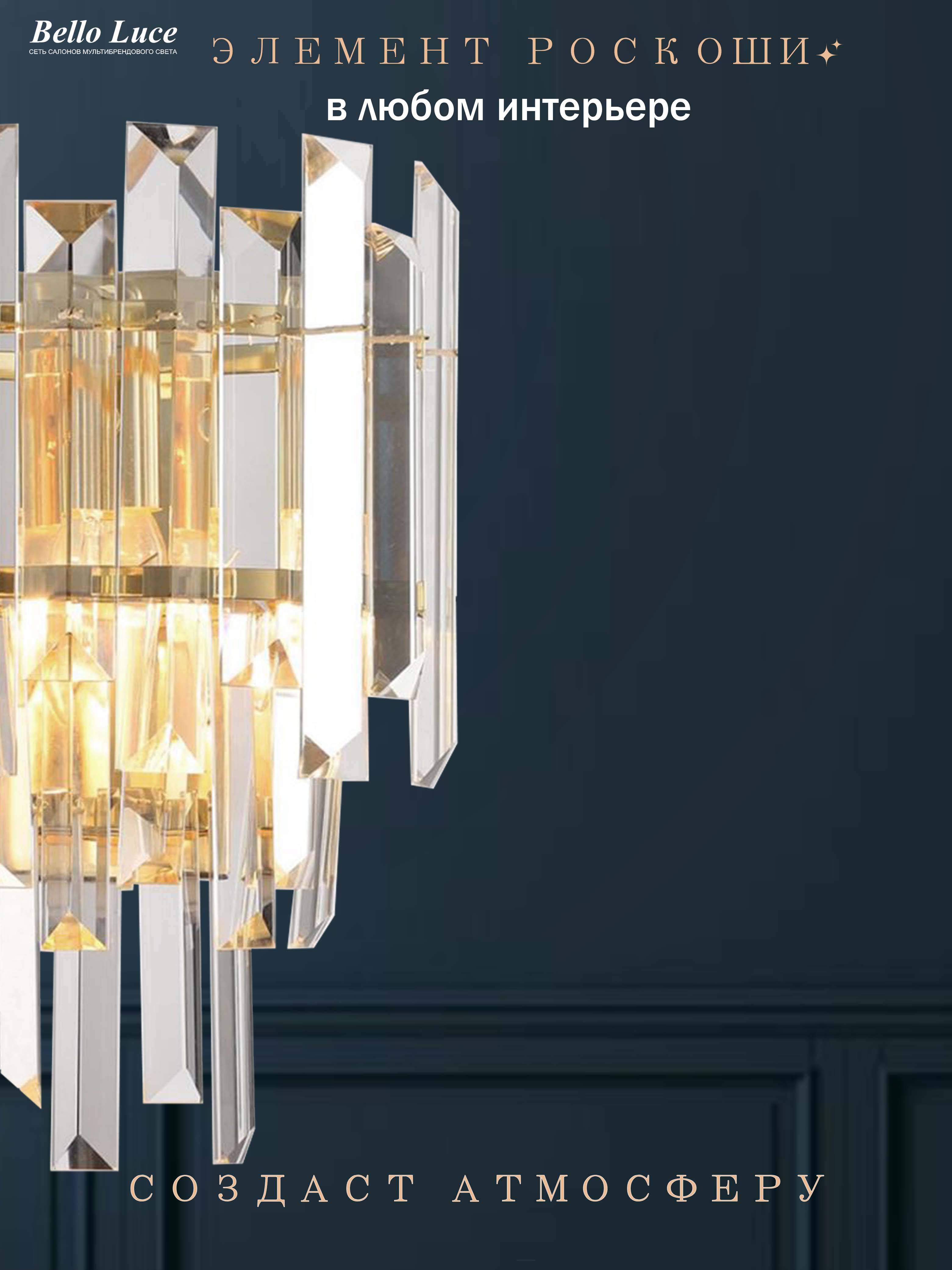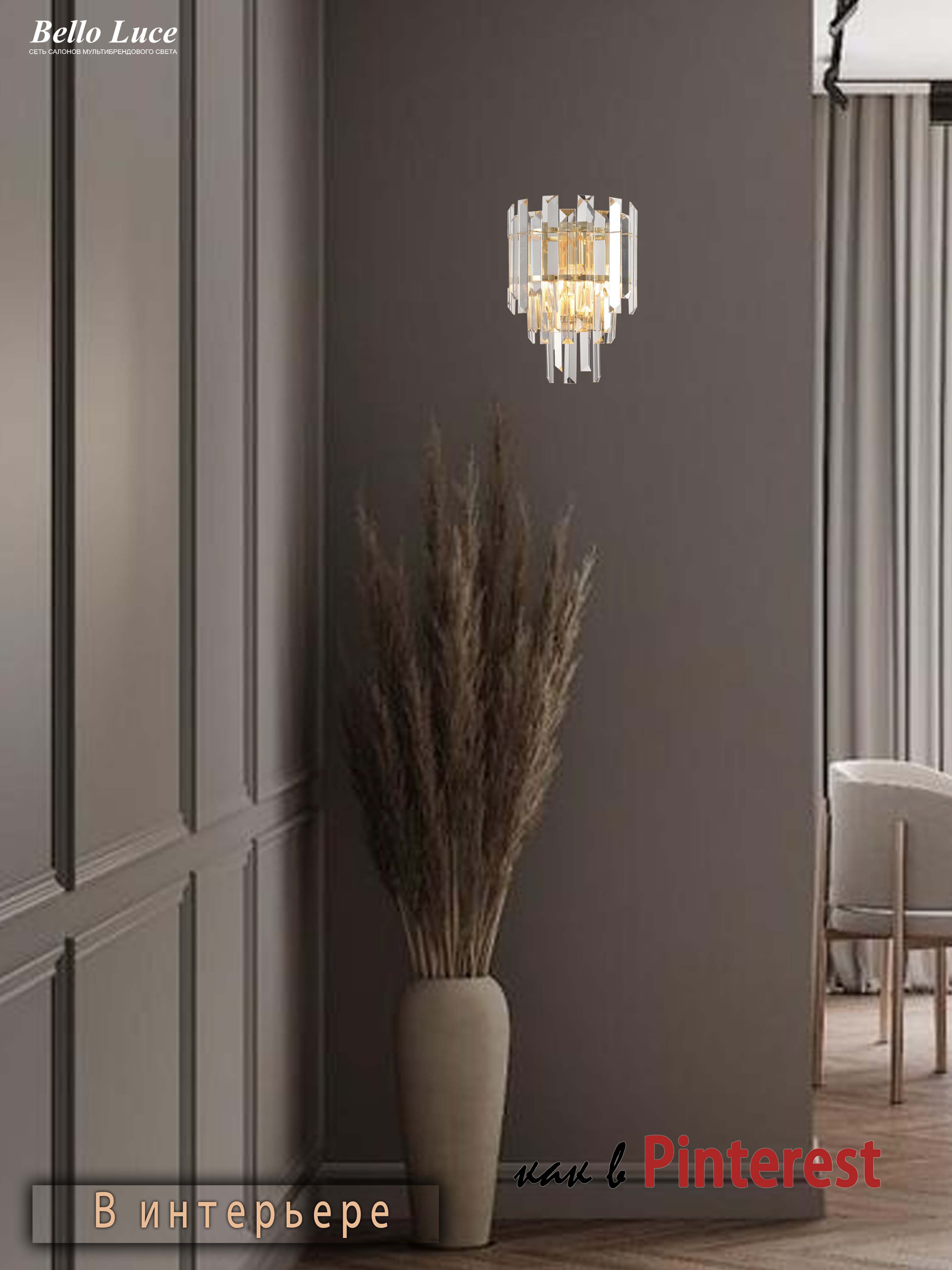 Настенный светильник станет отличным решением для создания уютной атмосферы в вашем интерьере. Изумительный хрусталь и элегантная отделка придают элементам роскоши и изысканности, делая его привлекательным акцентом любого помещения.