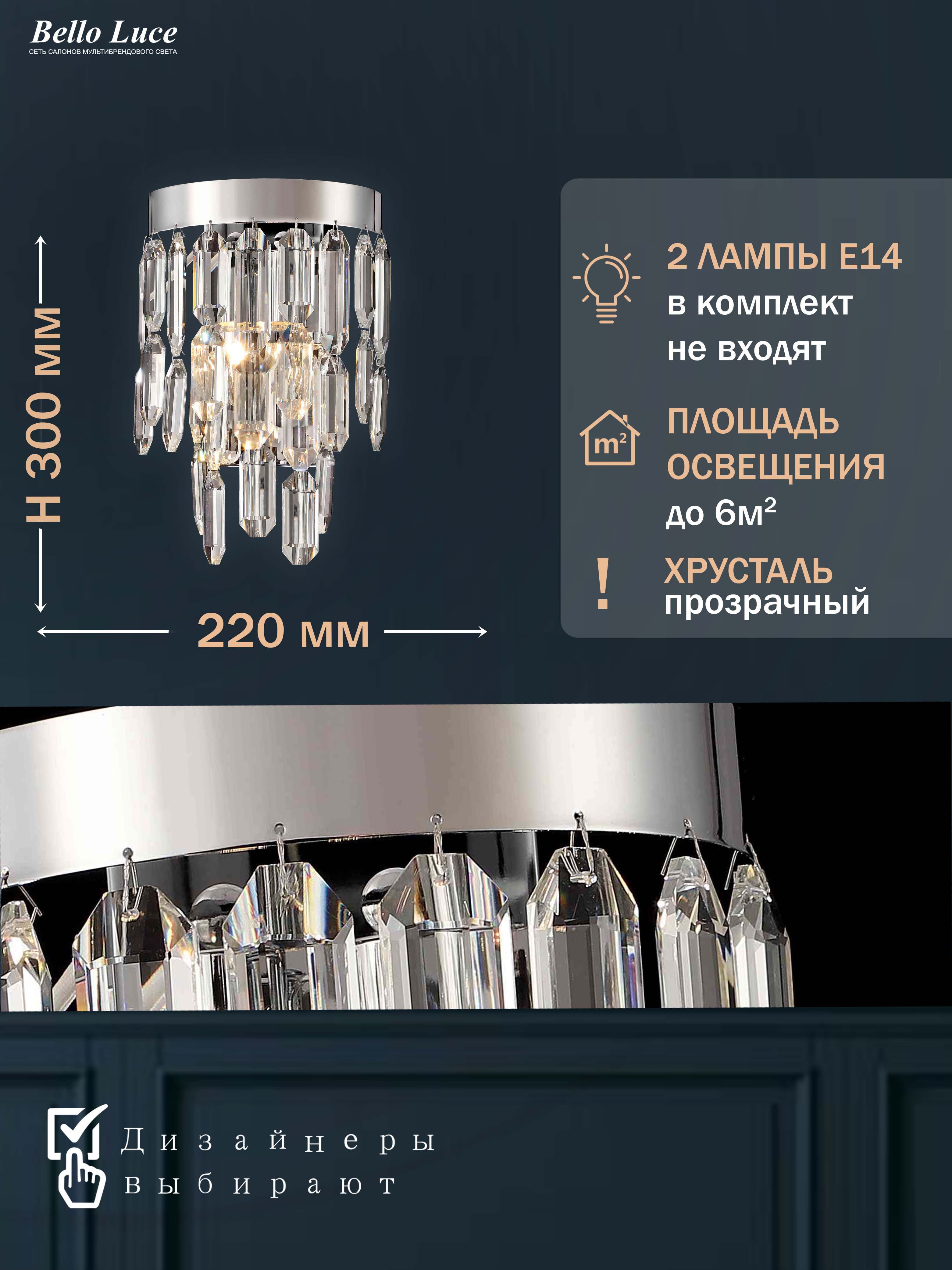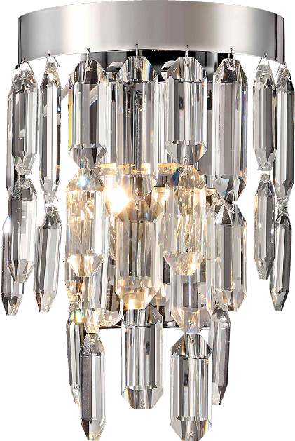 Компания Мегасвет предлагает вам оптом и в розницу Светильник настенный Cristallo хром с прозрачными хрустальными подвесками, бра на 2 лампы E14 по цене 6930 рублей.
