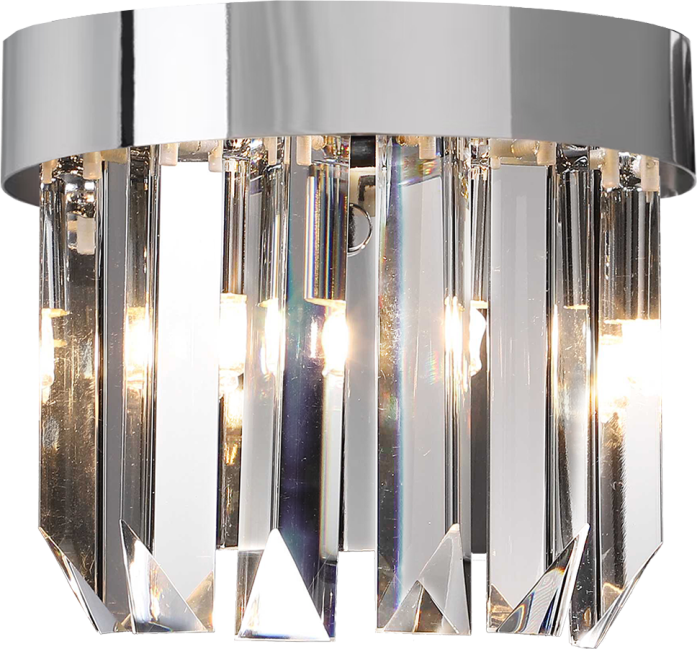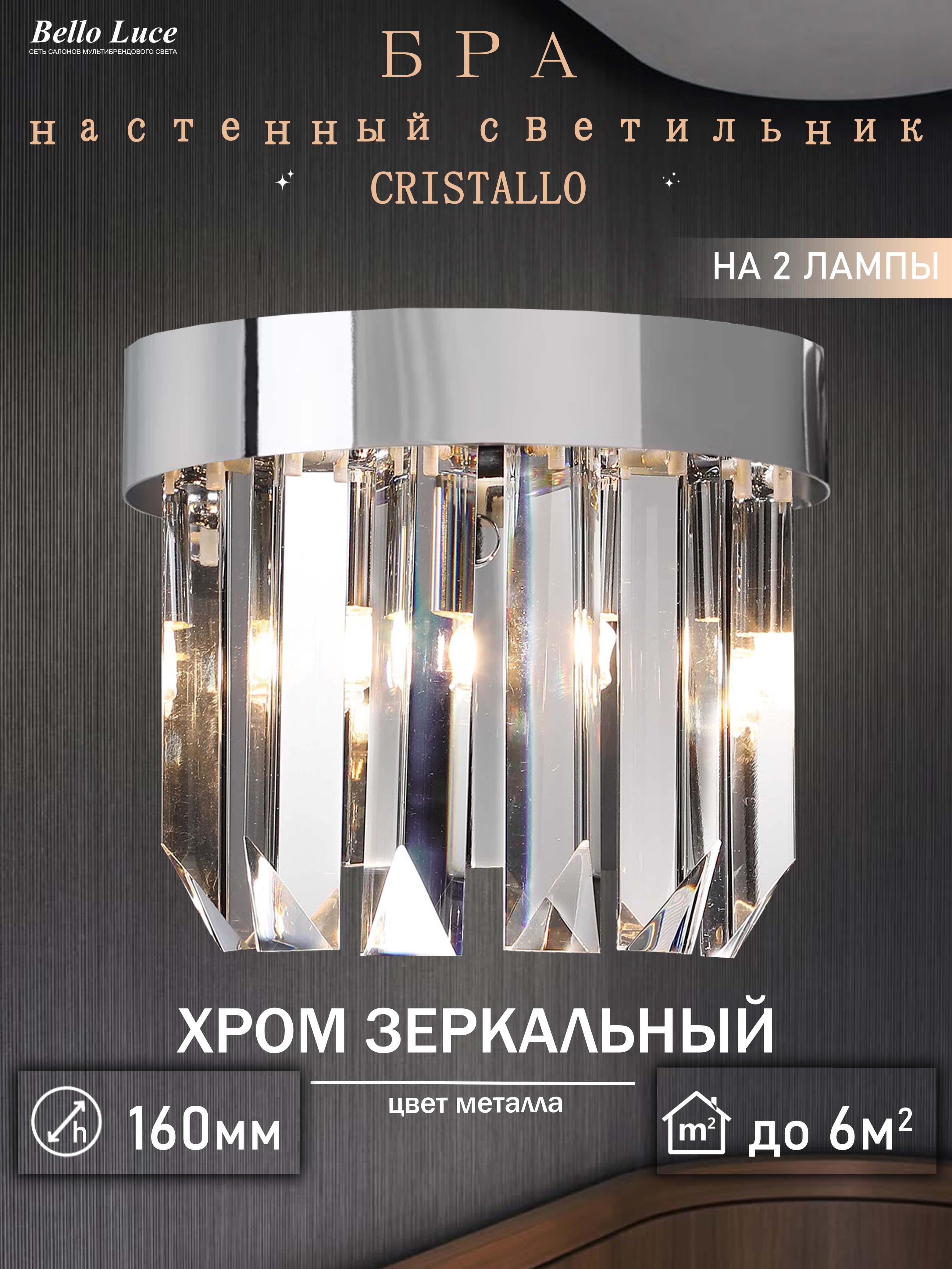 Компания Мегасвет предлагает вам оптом и в розницу Светильник настенный Cristallo хром с прозрачными хрустальными подвесками, бра на 2 лампы E14 по цене 5700 рублей.