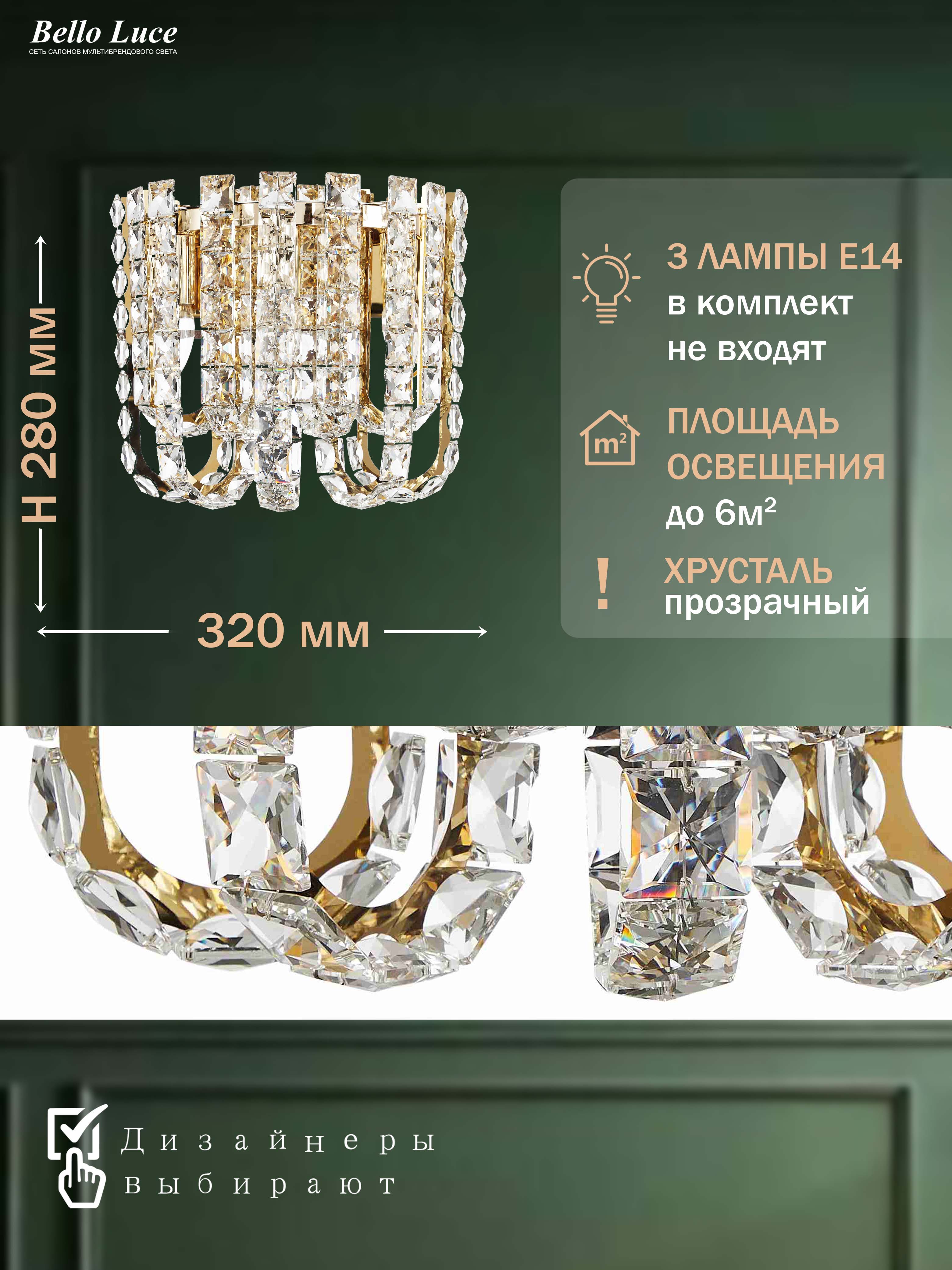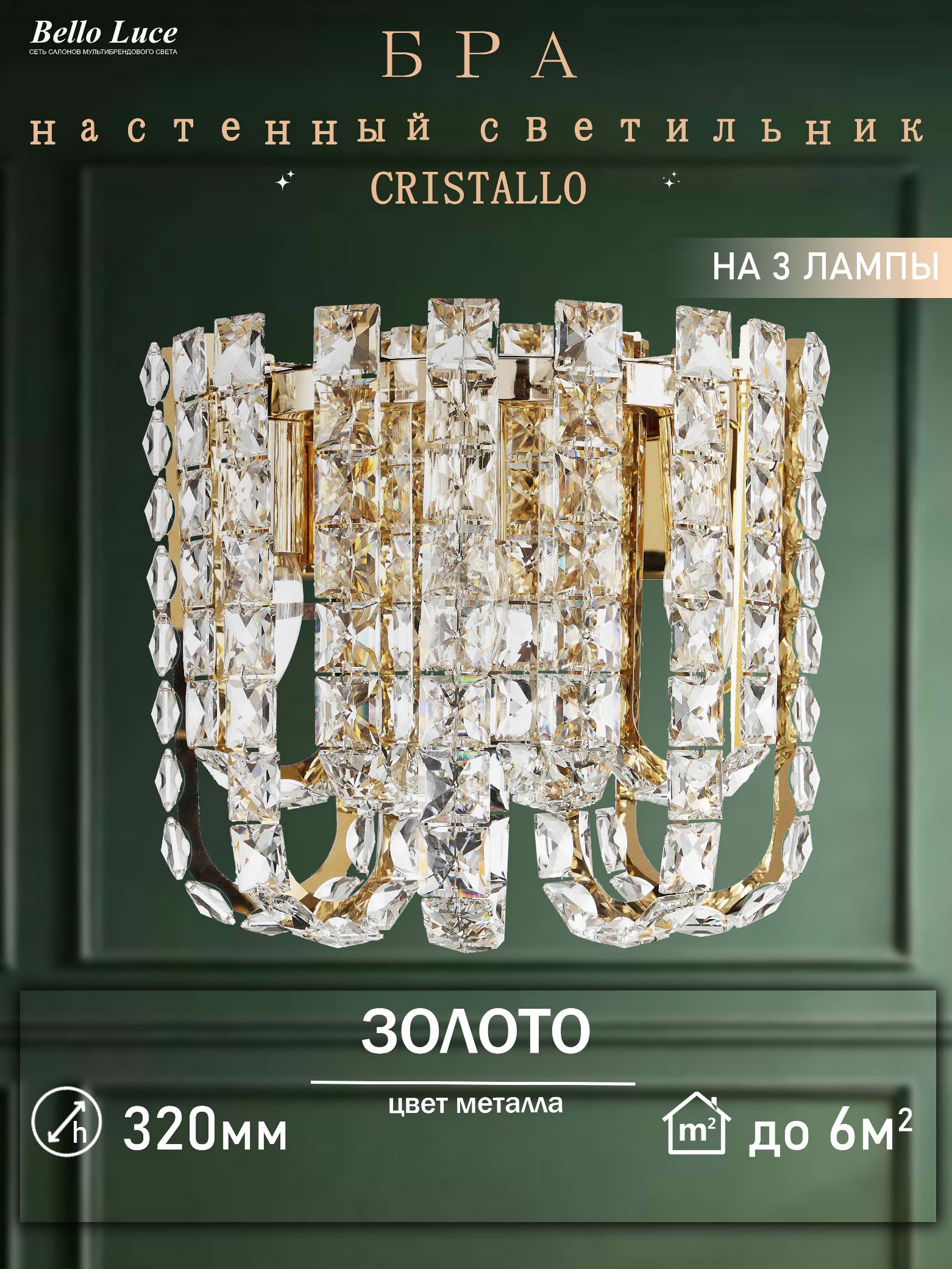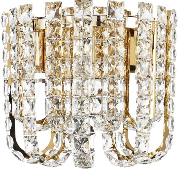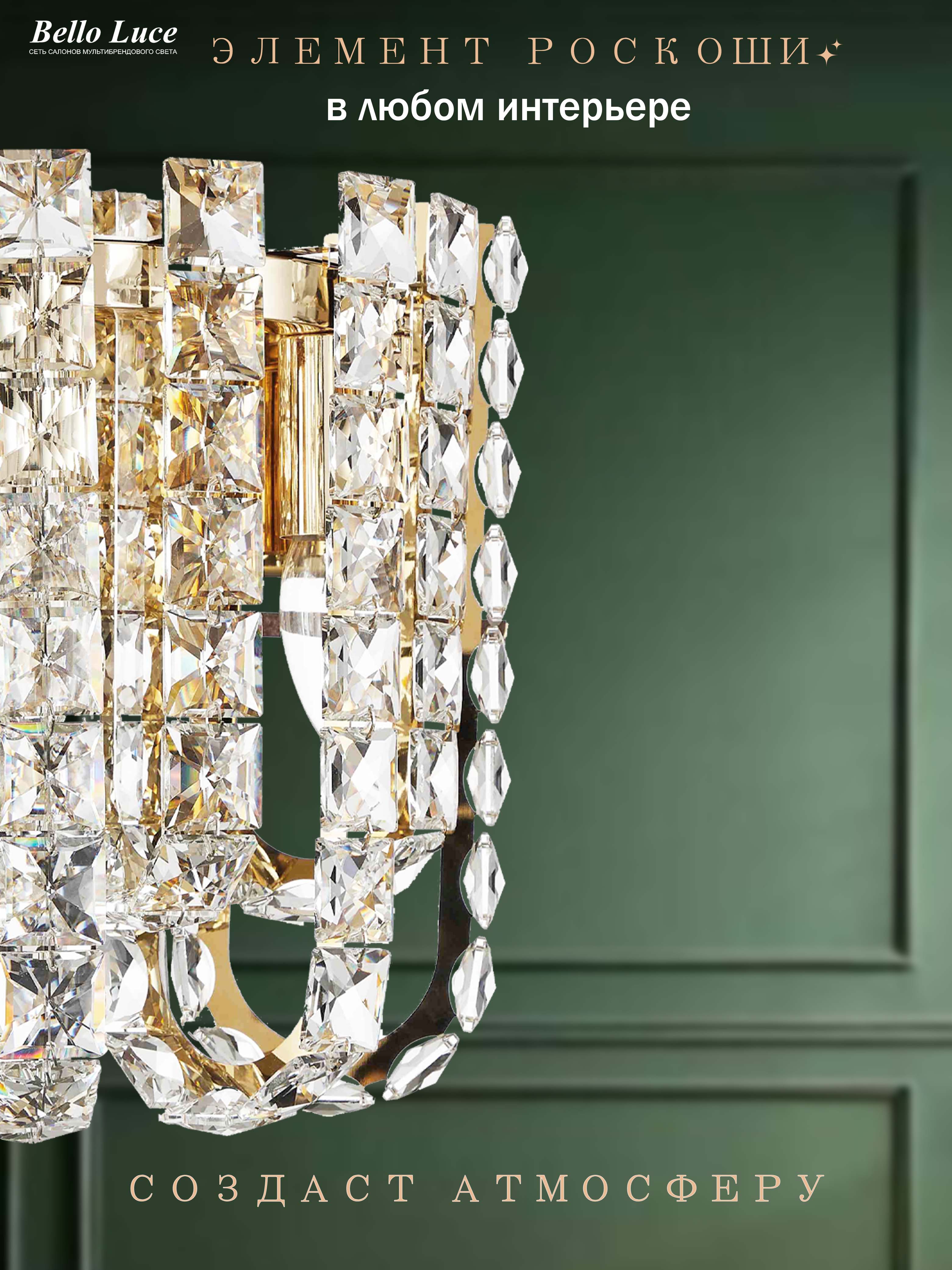 Компания Мегасвет предлагает вам оптом и в розницу Светильник Cristallo хрустальный золото настенный с прозрачным хрустальным декором бра на 2 лампы E14 по цене 10530 рублей.