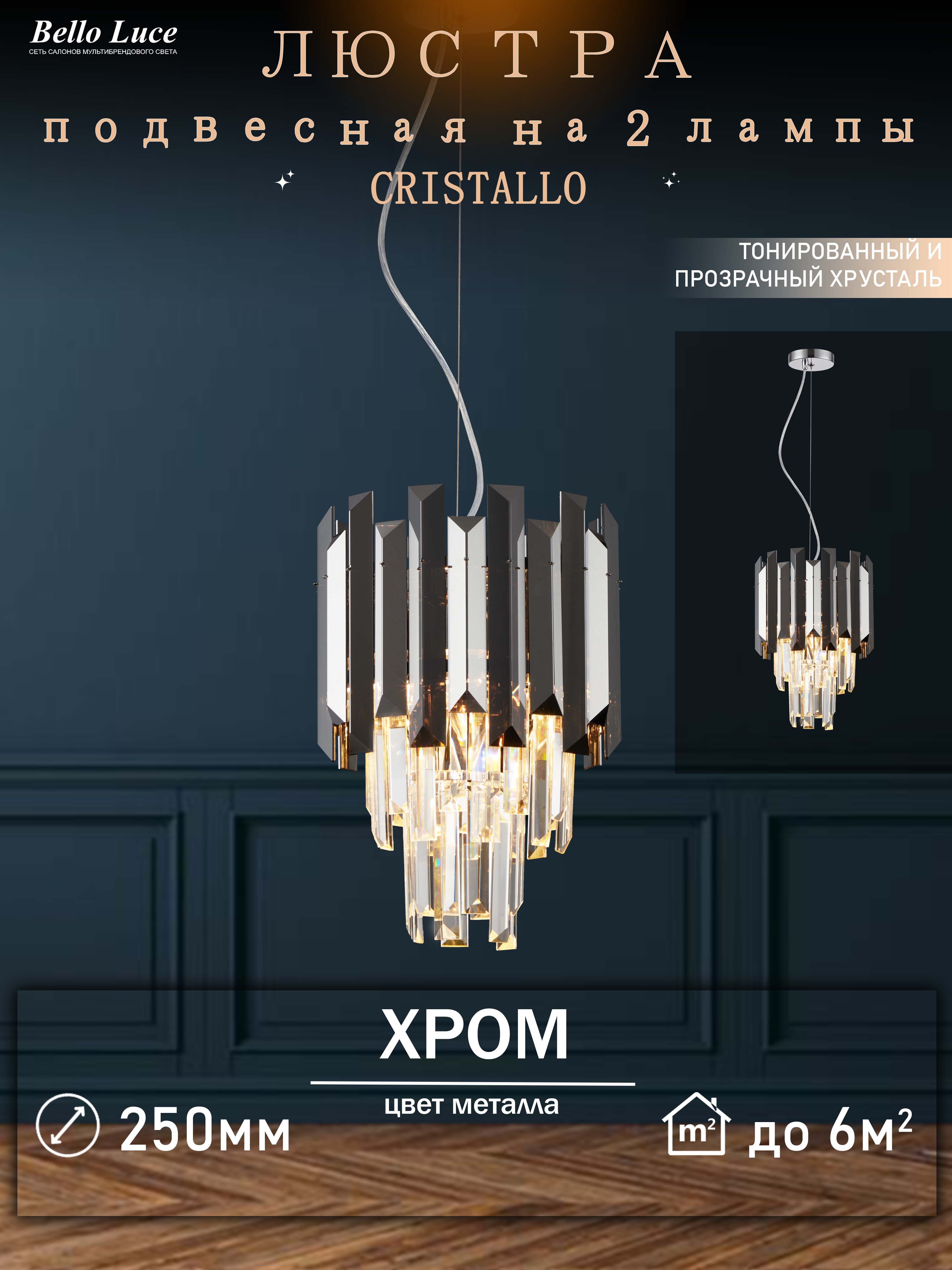 Компания Мегасвет предлагает вам оптом и в розницу Люстра Cristallo хрустальная хром подвесная с тонированными хрустальными подвесками на 2 лампы E14, регулировка по высоте по цене 7400 рублей.