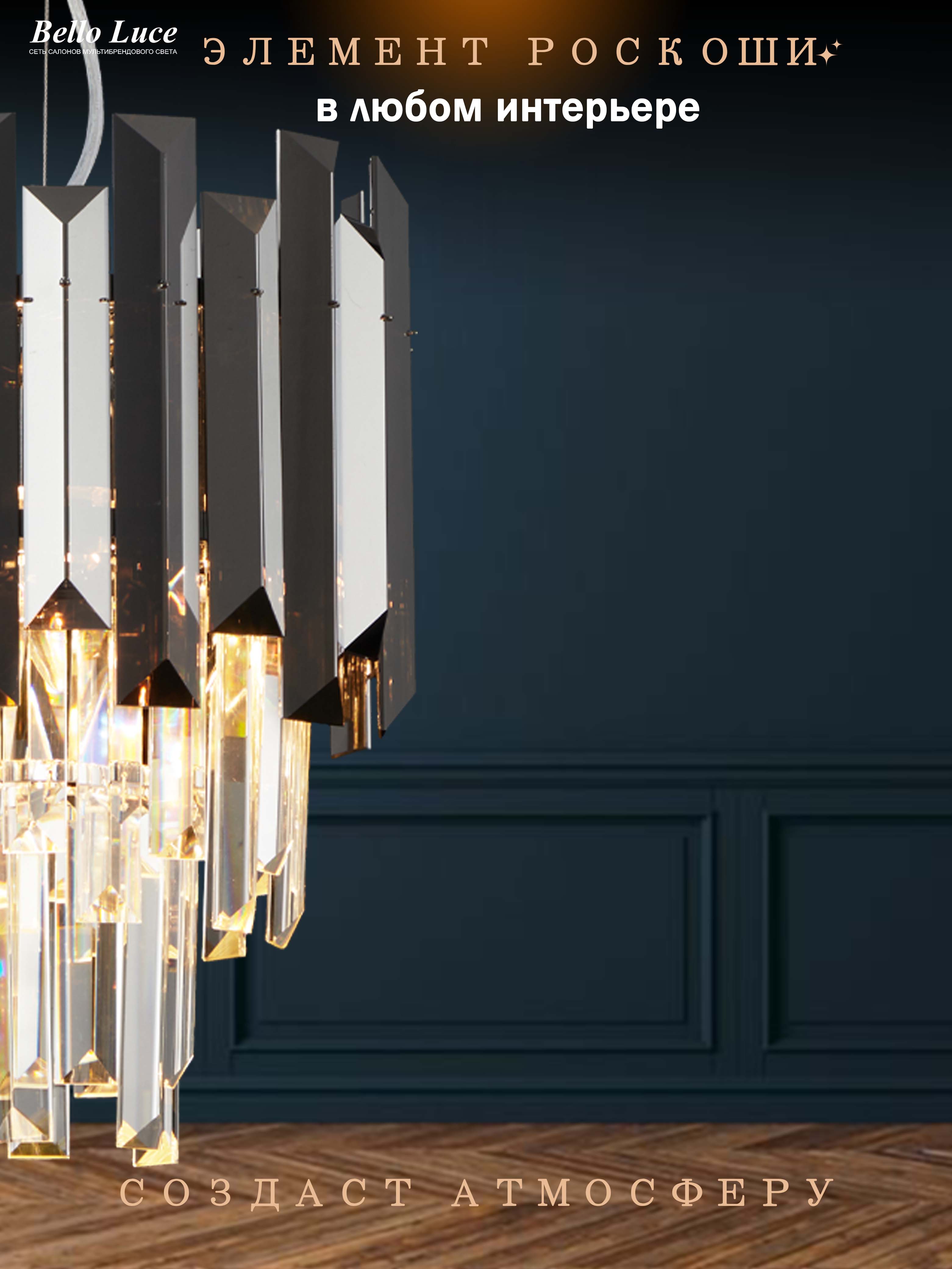 Представляем вашему вниманию роскошную хрустальную подвесную люстру, которая станет ярким акцентом в любом интерьере. Эта стильная модель выполнена в современном дизайне с элементами престижа, что делает её идеальным выбором для тех, кто ценит изысканность и оригинальность.