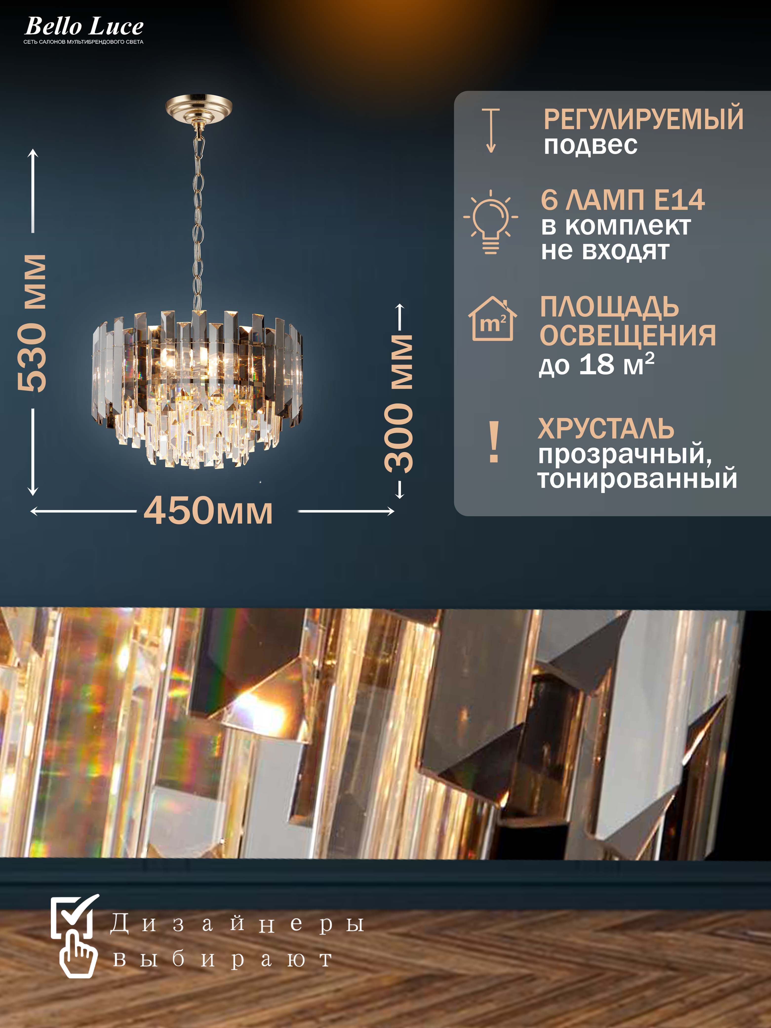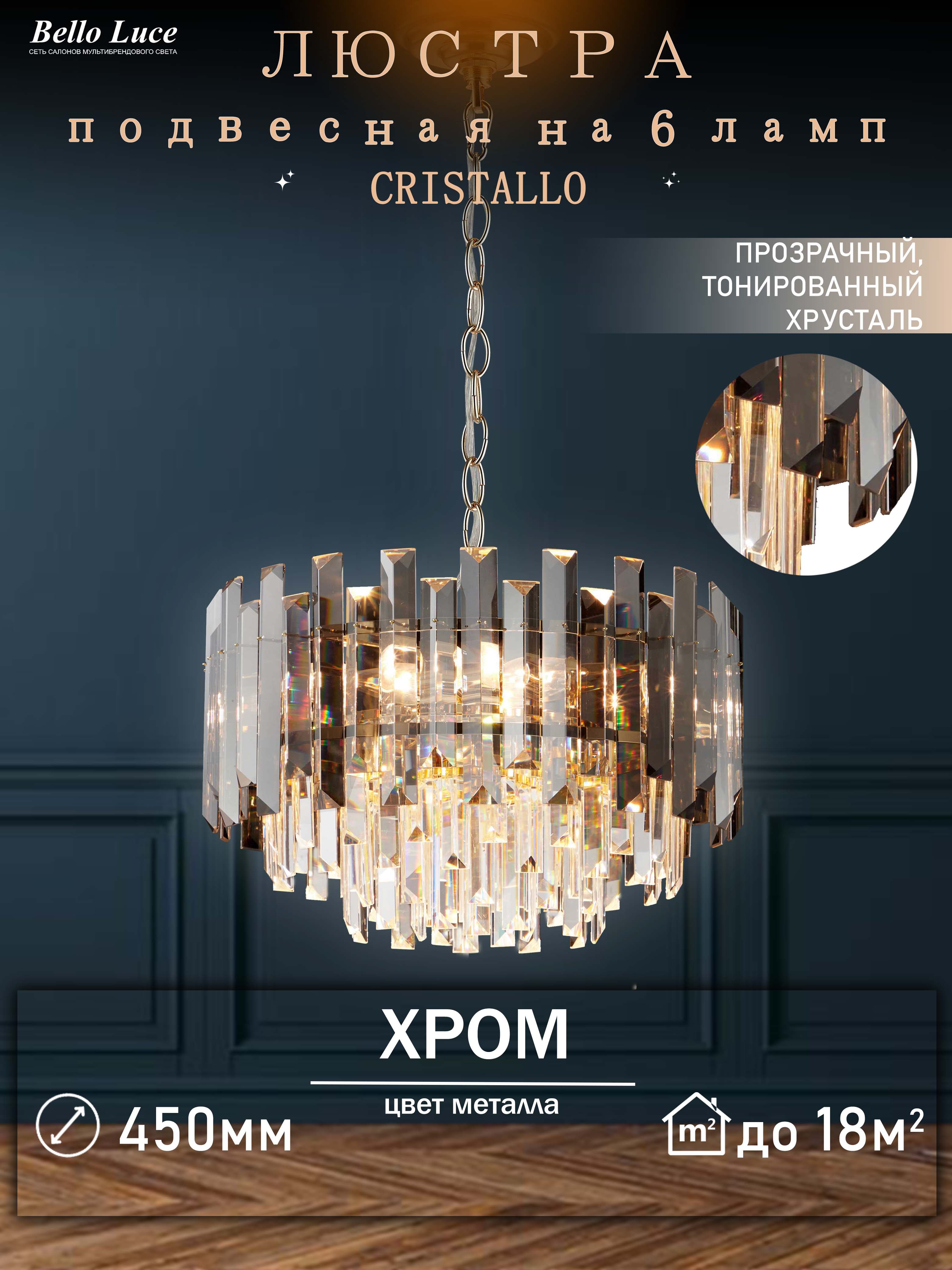 Компания Мегасвет предлагает вам оптом и в розницу Люстра Cristallo хрустальная хром подвесная с тонированными хрустальными подвесками на 6 ламп E14, регулировка по высоте по цене 18850 рублей.