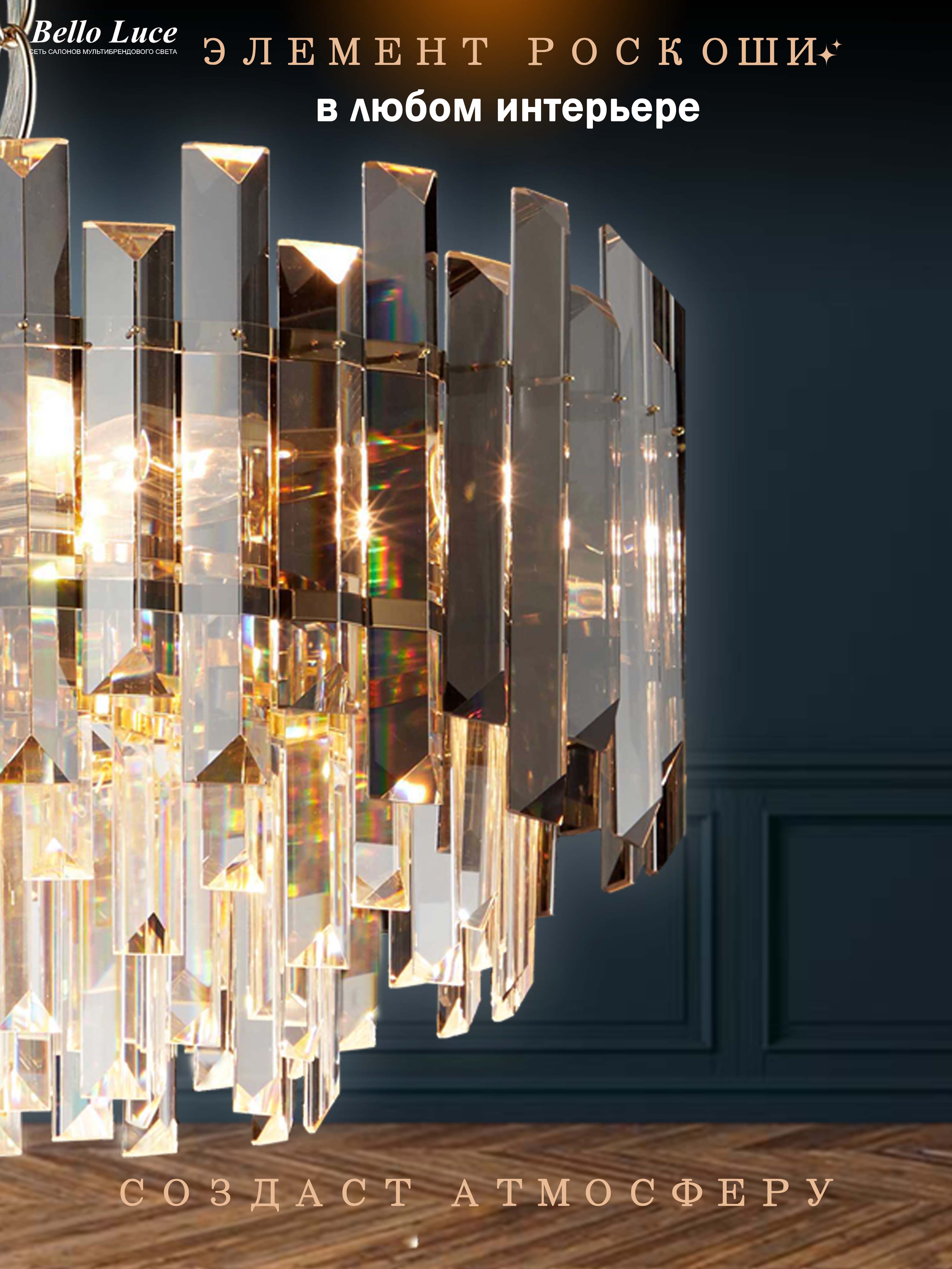 Представляем вашему вниманию роскошную хрустальную подвесную люстру, которая станет ярким акцентом в любом интерьере. Эта стильная модель выполнена в современном дизайне с элементами престижа, что делает её идеальным выбором для тех, кто ценит изысканность и оригинальность.