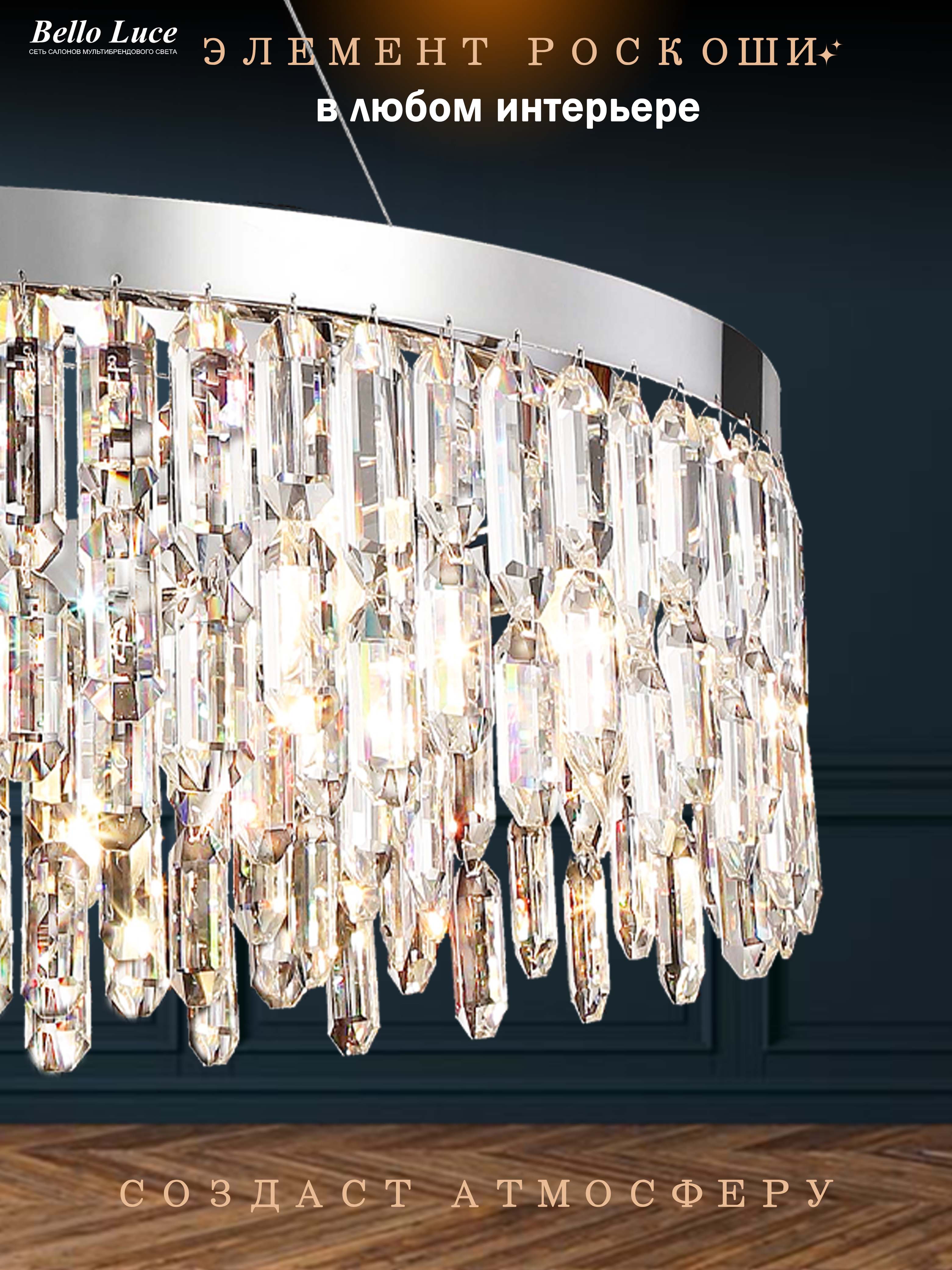 Представляем вашему вниманию роскошную хрустальную подвесную люстру, которая станет ярким акцентом в любом интерьере. Эта стильная модель выполнена в современном дизайне с элементами престижа, что делает её идеальным выбором для тех, кто ценит изысканность и оригинальность.