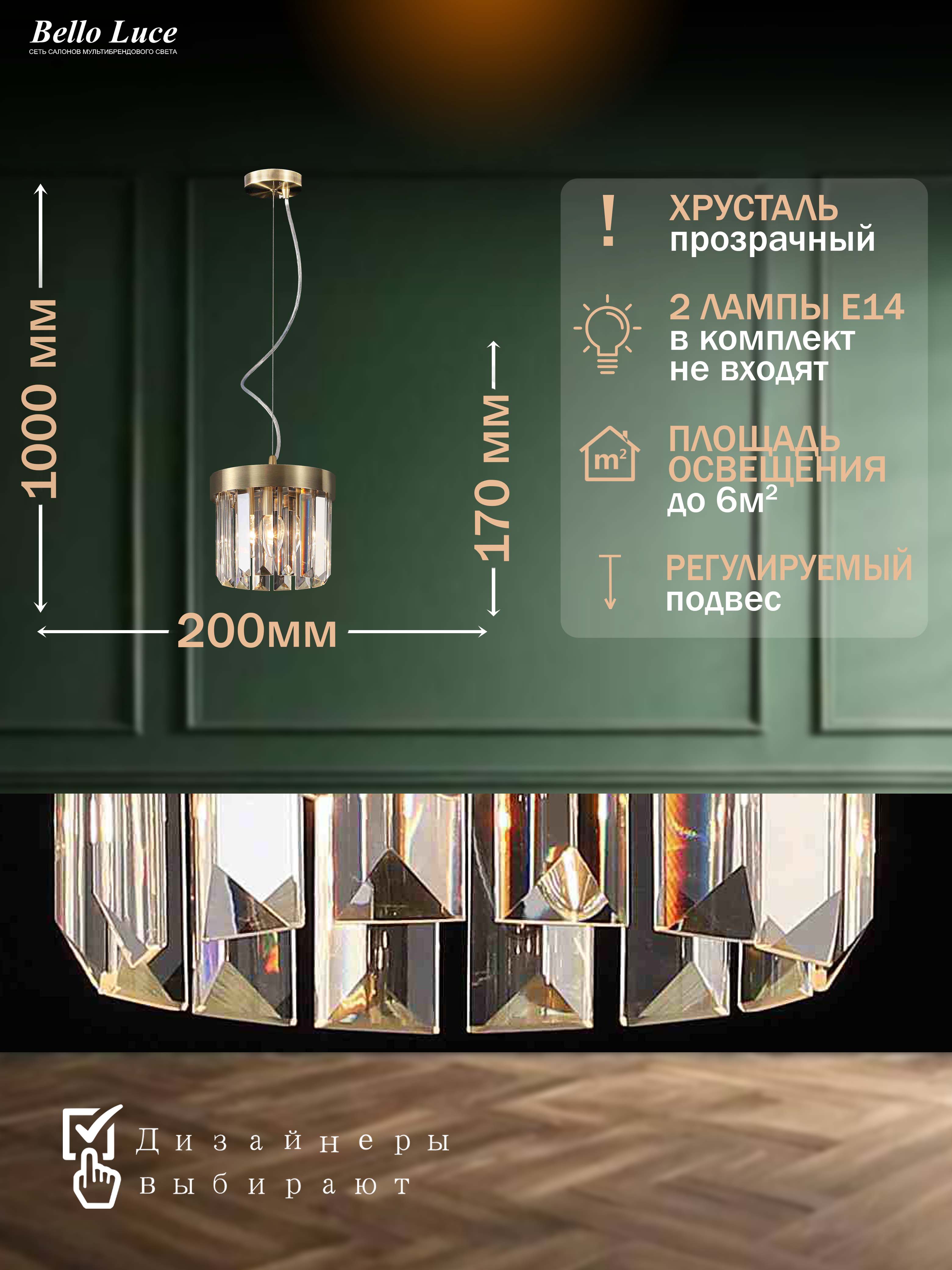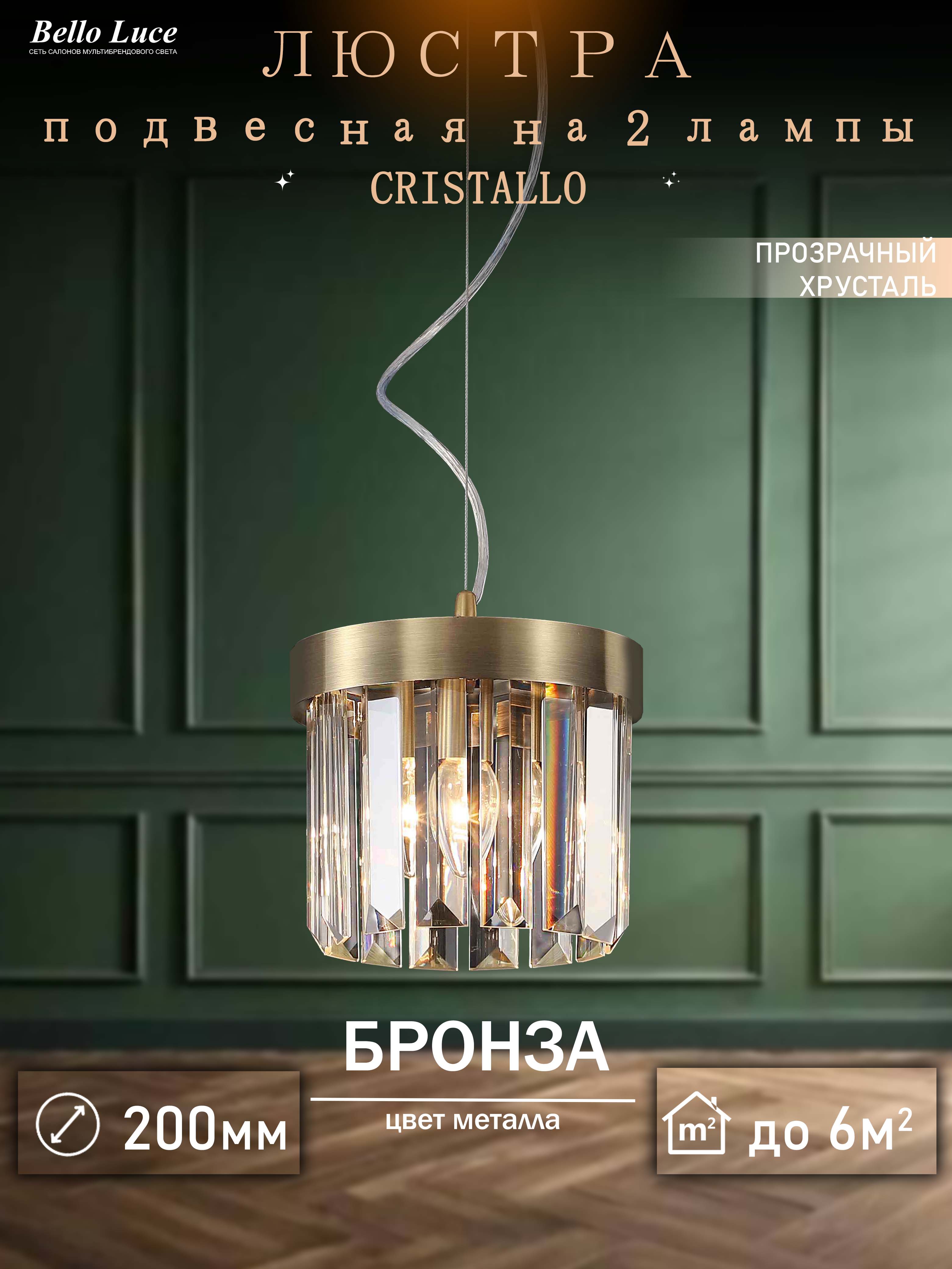 Компания Мегасвет предлагает вам оптом и в розницу Люстра хрустальная подвесная Cristallo бронза с прозрачными хрустальными подвесками на 2 ламп E14, регулировка по высоте по цене 6183 рублей.