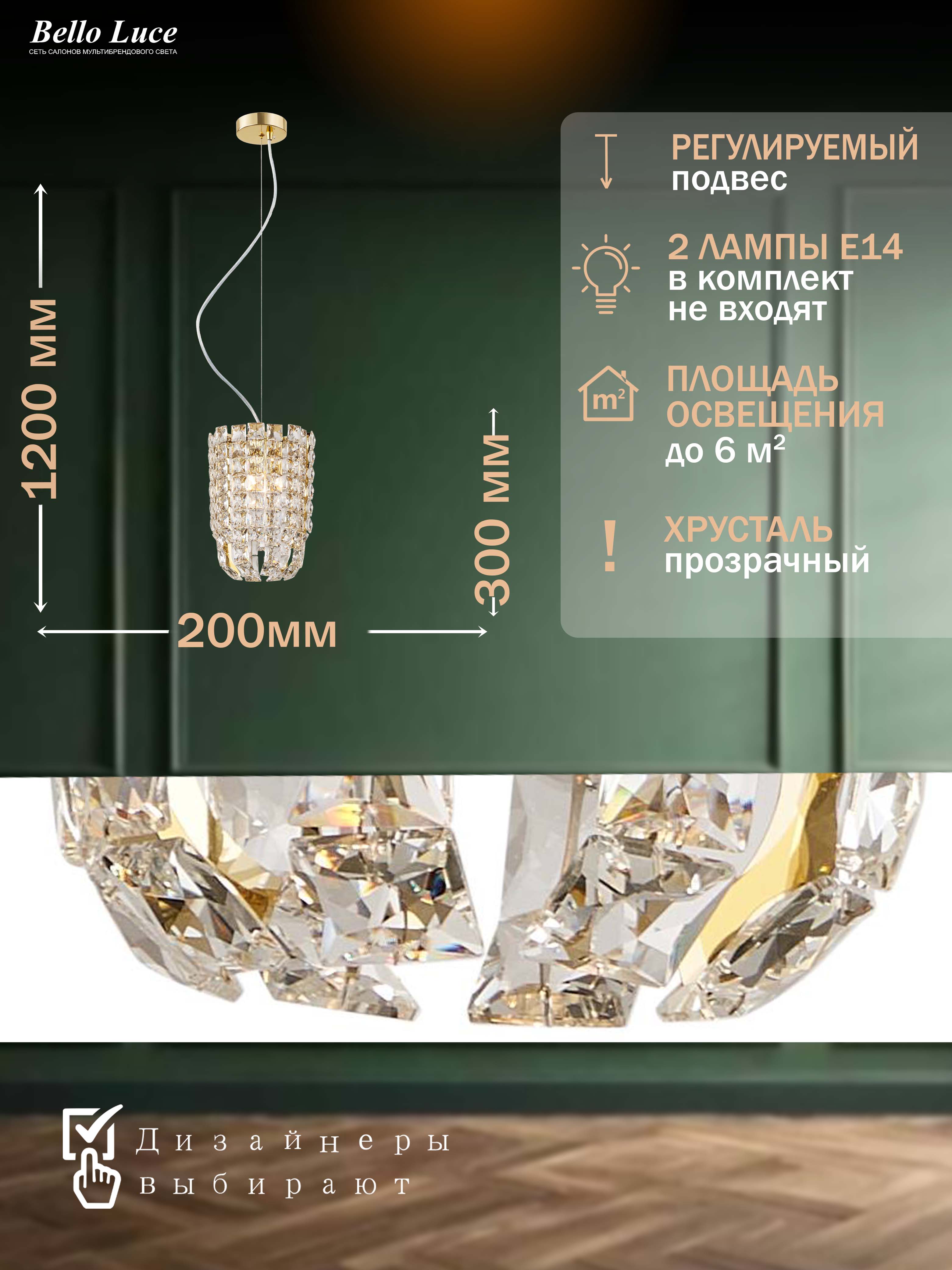 Компания Мегасвет предлагает вам оптом и в розницу Люстра Cristallo хрустальная подвесная круглая золото с прозрачным хрустальным декором на 2 лампы E14, регулировка по высоте по цене 9810 рублей.