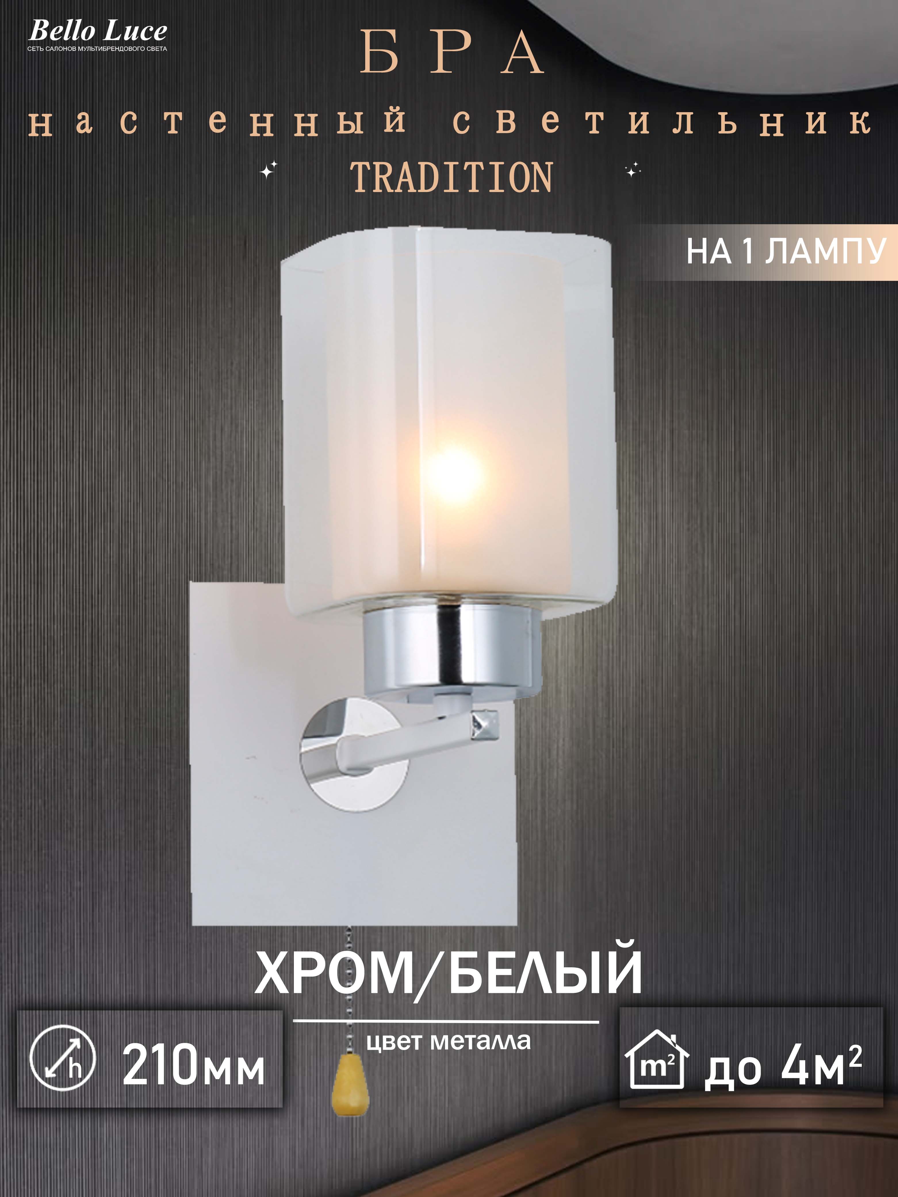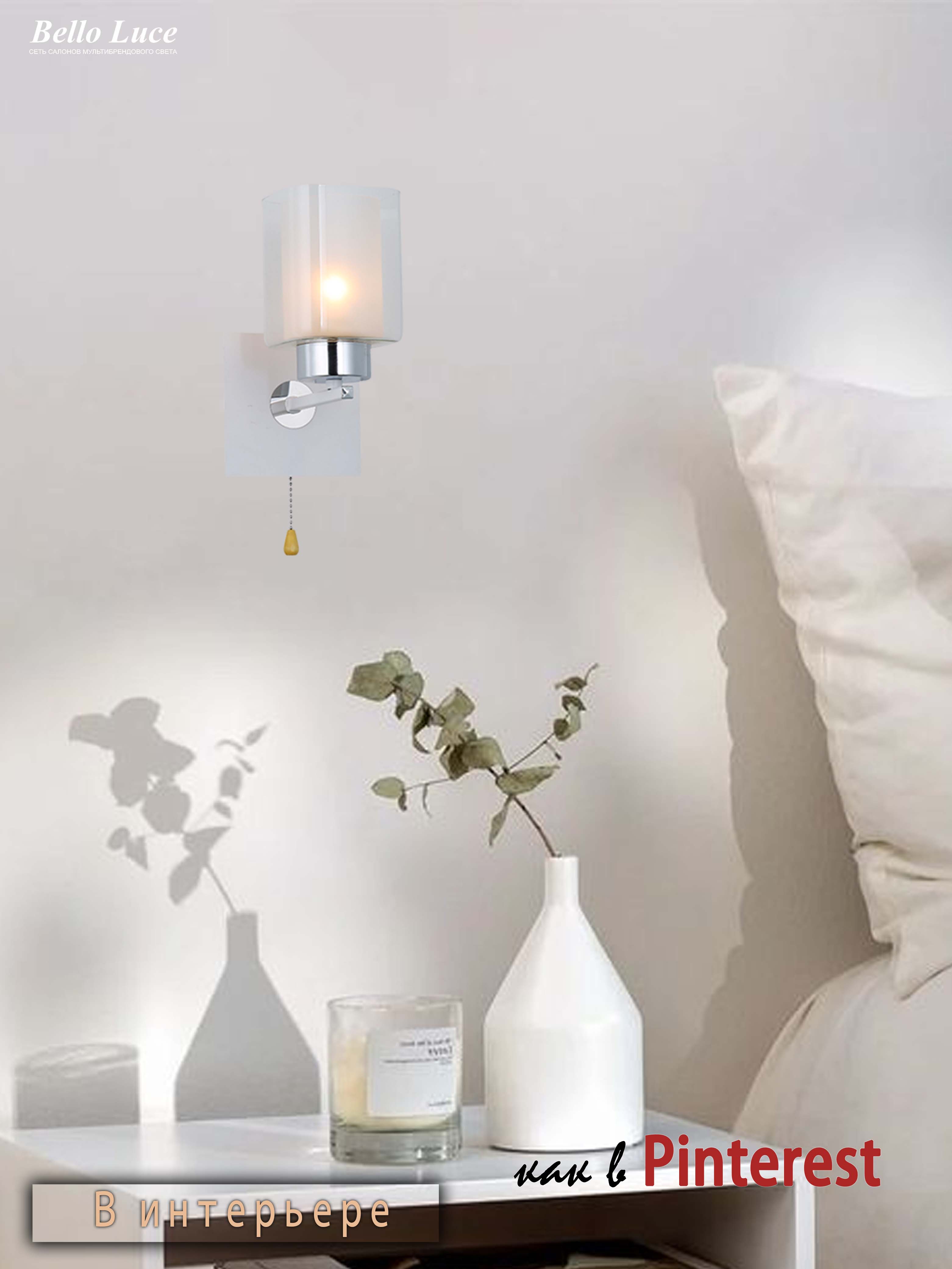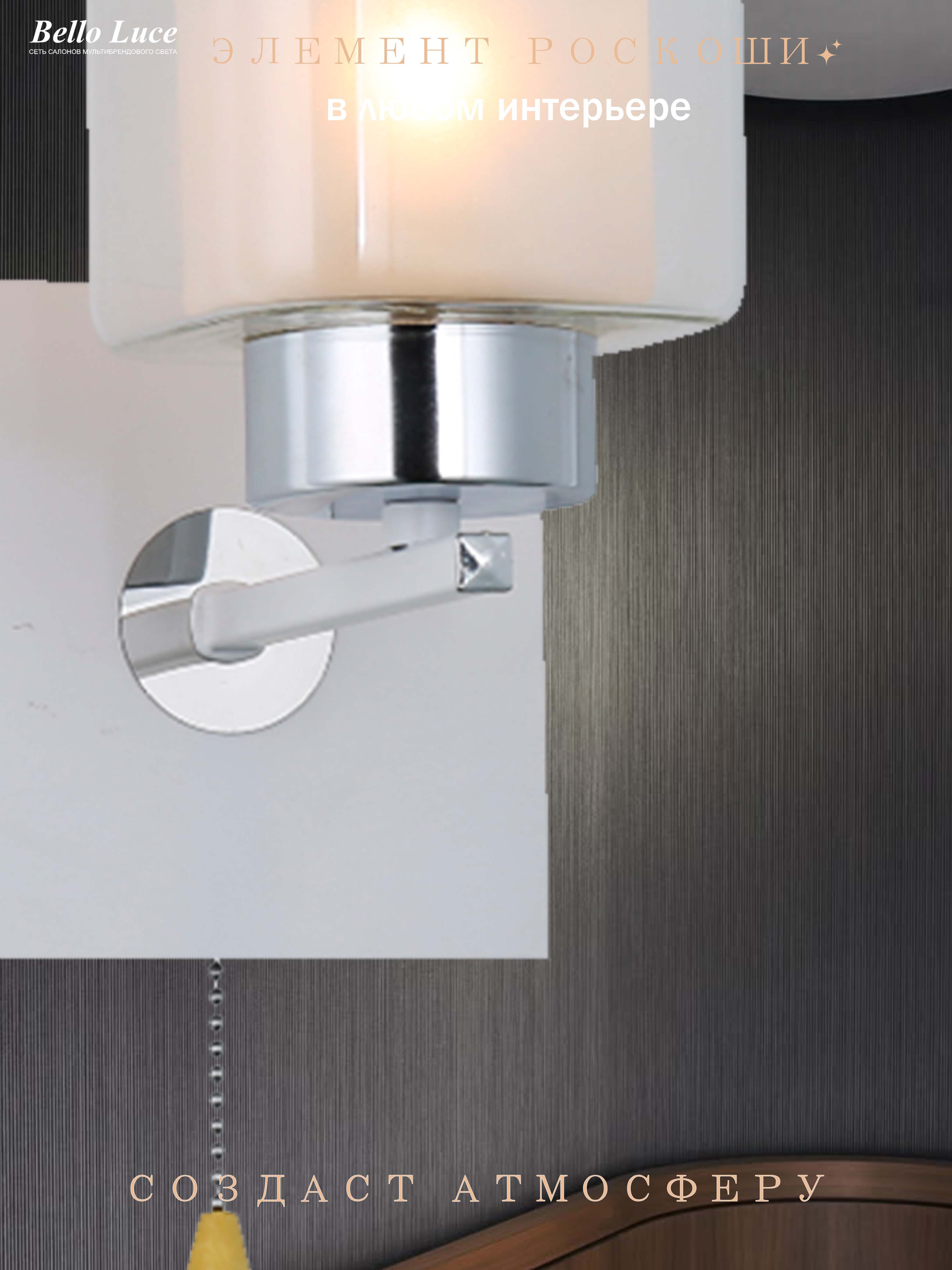 Компания Мегасвет предлагает вам оптом и в розницу Светильник настенный, бра Престиж хром+белый с белыми матовыми плафонам, выключатель на корпусе по цене 1683 рублей.