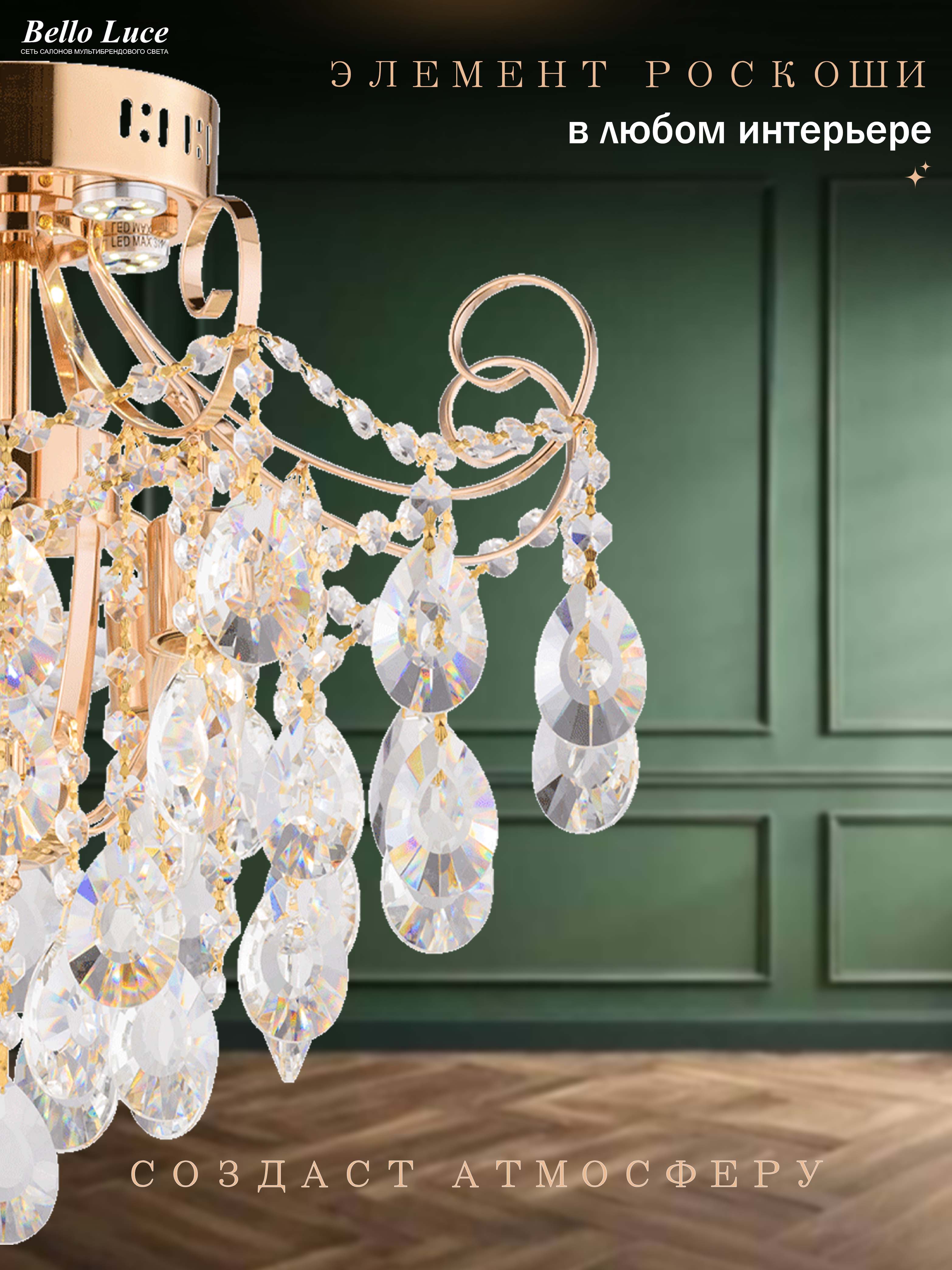 Представляем вашему вниманию стильную потолочную люстру с хрустальными элементами и подсветкой, которая станет изысканным дополнением вашего интерьера. Эта модель сочетает в себе современный дизайн и функциональность, обеспечивая идеальное освещение для любого помещения. Использование хрусталя придаёт люстре престижный вид, а отделка добавляет элегантности и шика.