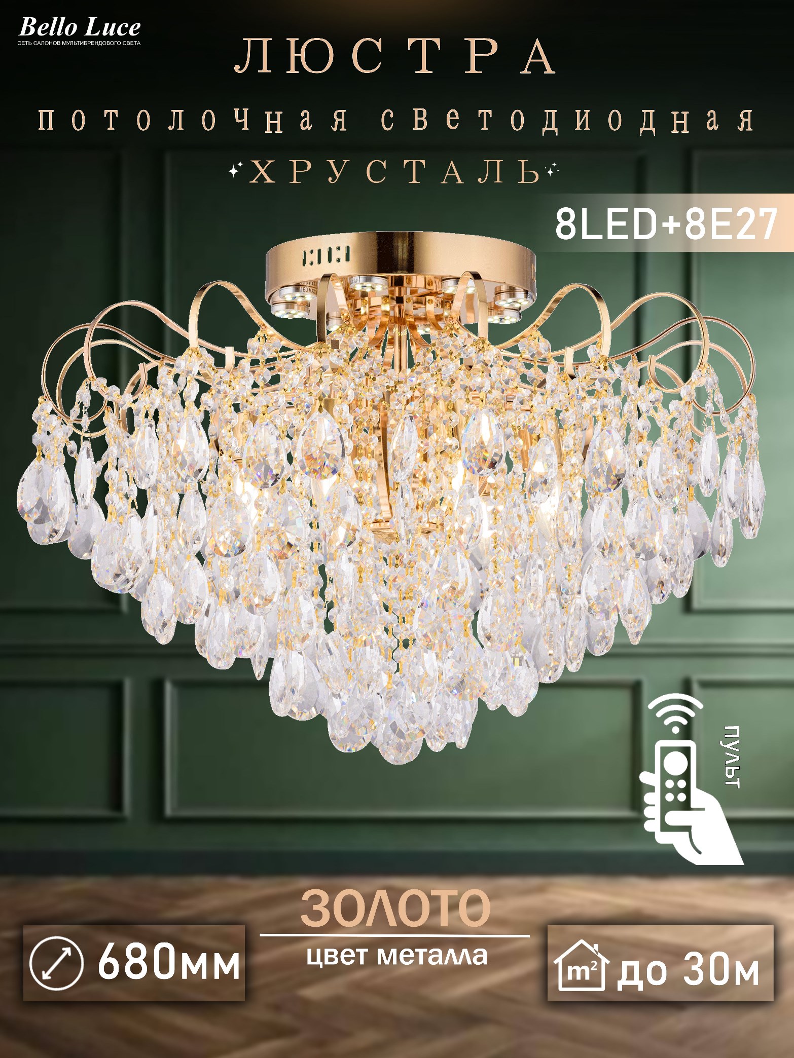 Название группы : Люстра хрустальная потолочная с пультом