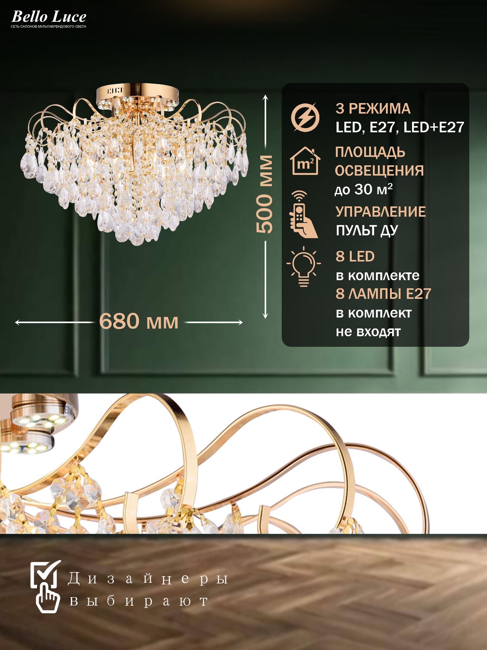 Круглая форма люстры делает её универсальной, она идеально впишется в любой стиль: от классического до современного. Используйте её для освещения гостиных, спален или офисов,