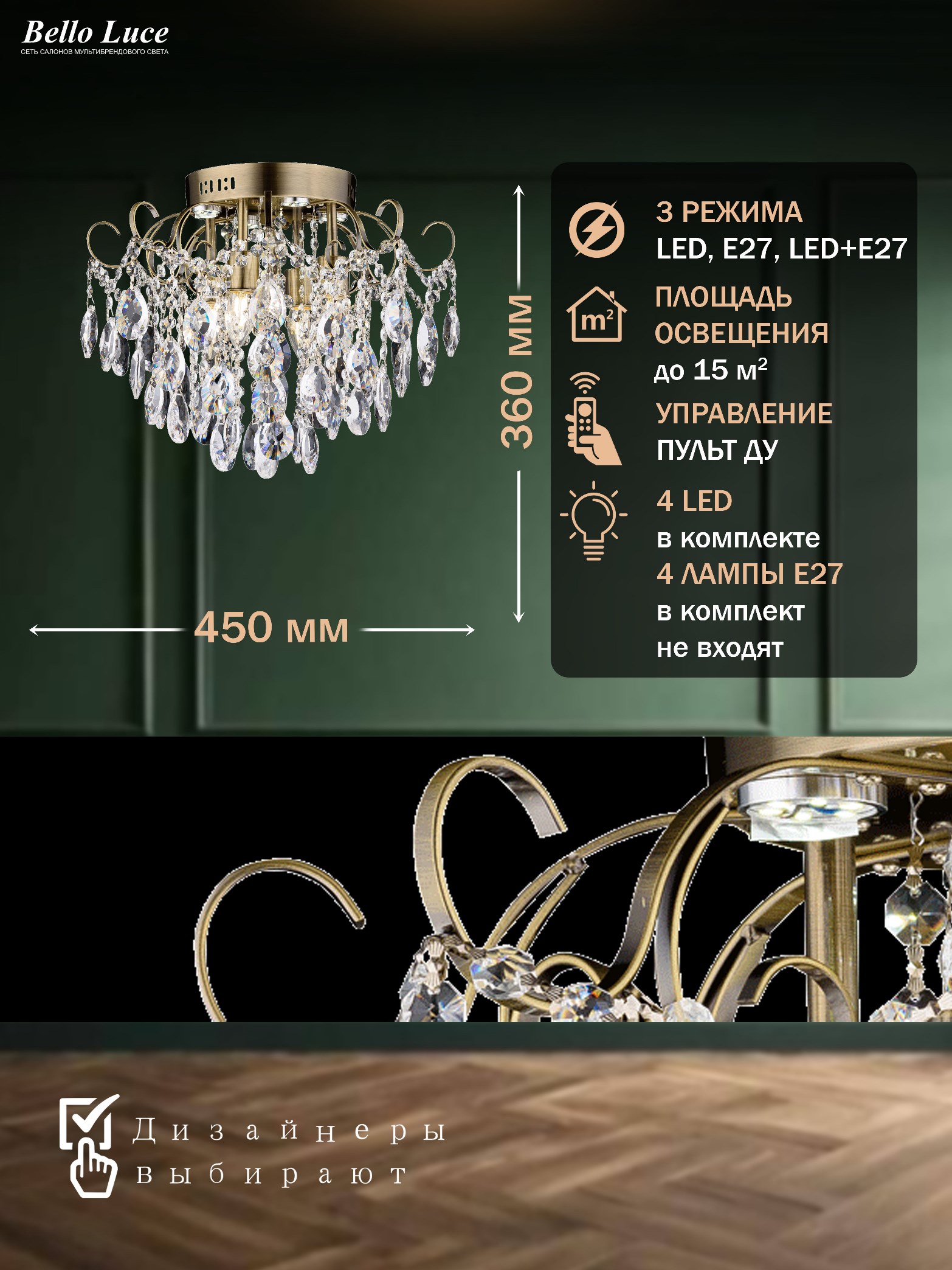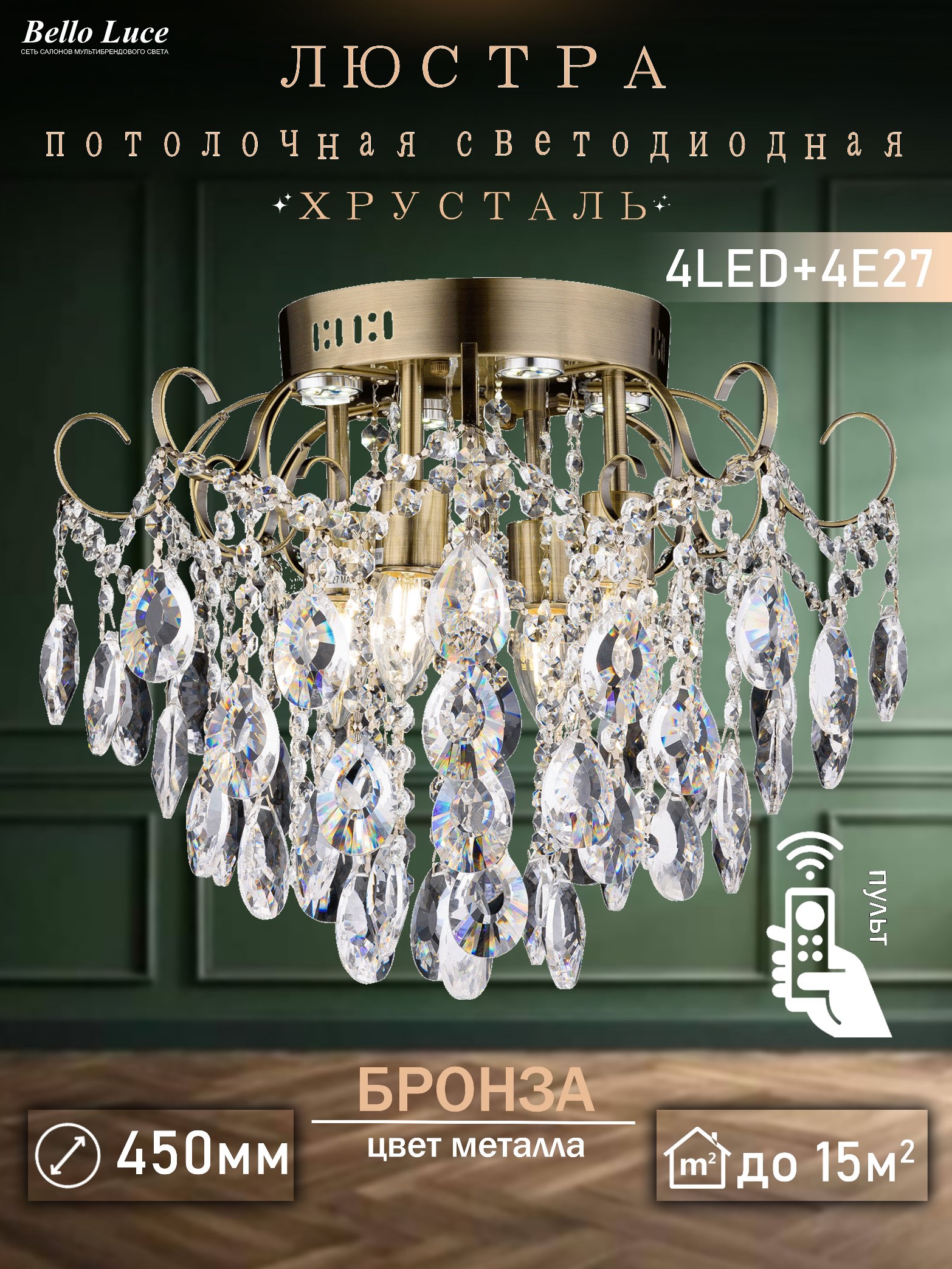 Компания Мегасвет предлагает вам оптом и в розницу Люстра хрустальная потолочная с подсветкой с пультом круглая античная бронза с прозрачными хрустальными подвесками на 4Led модулей + 4 E27 по цене 11178 рублей.