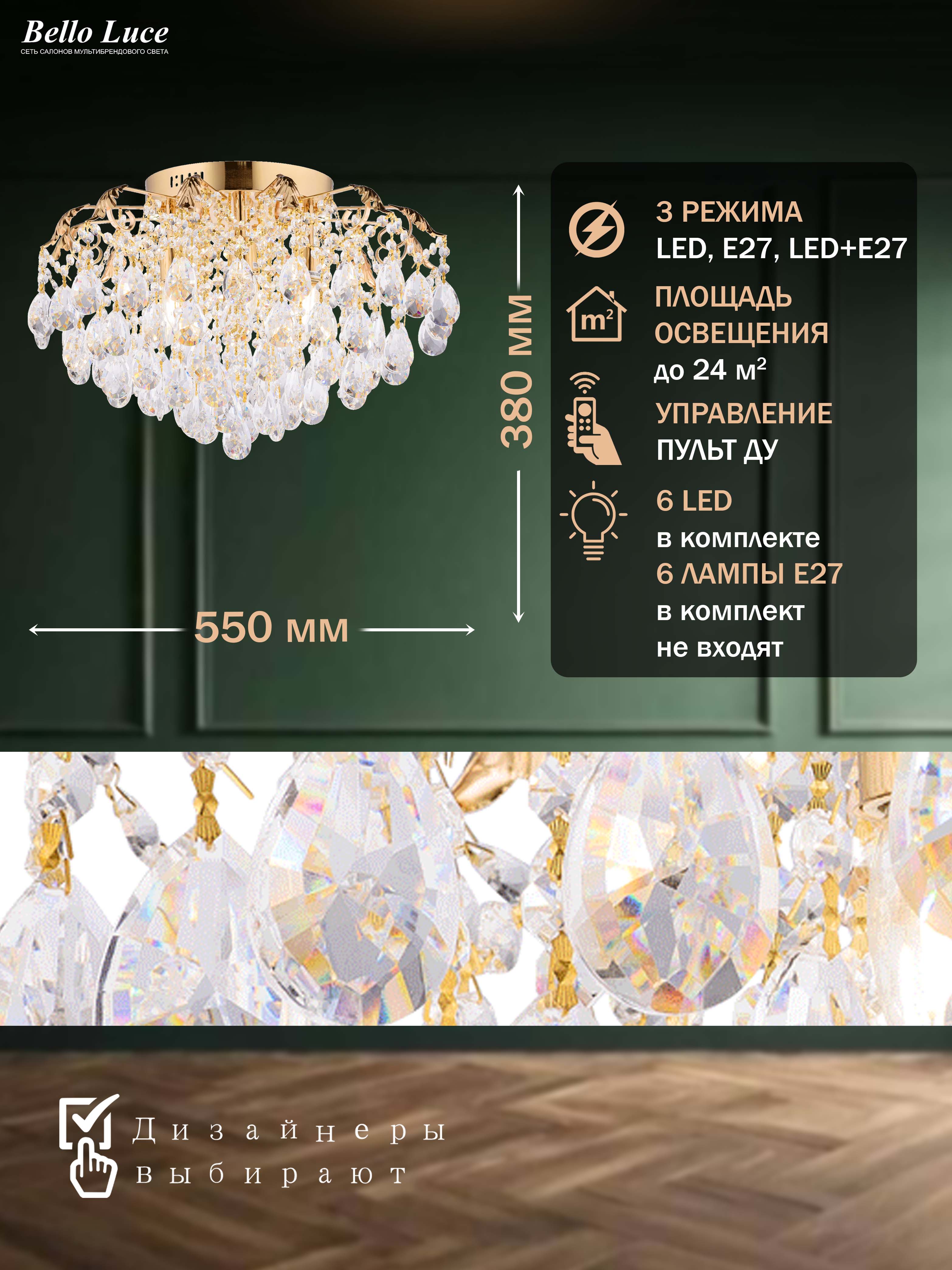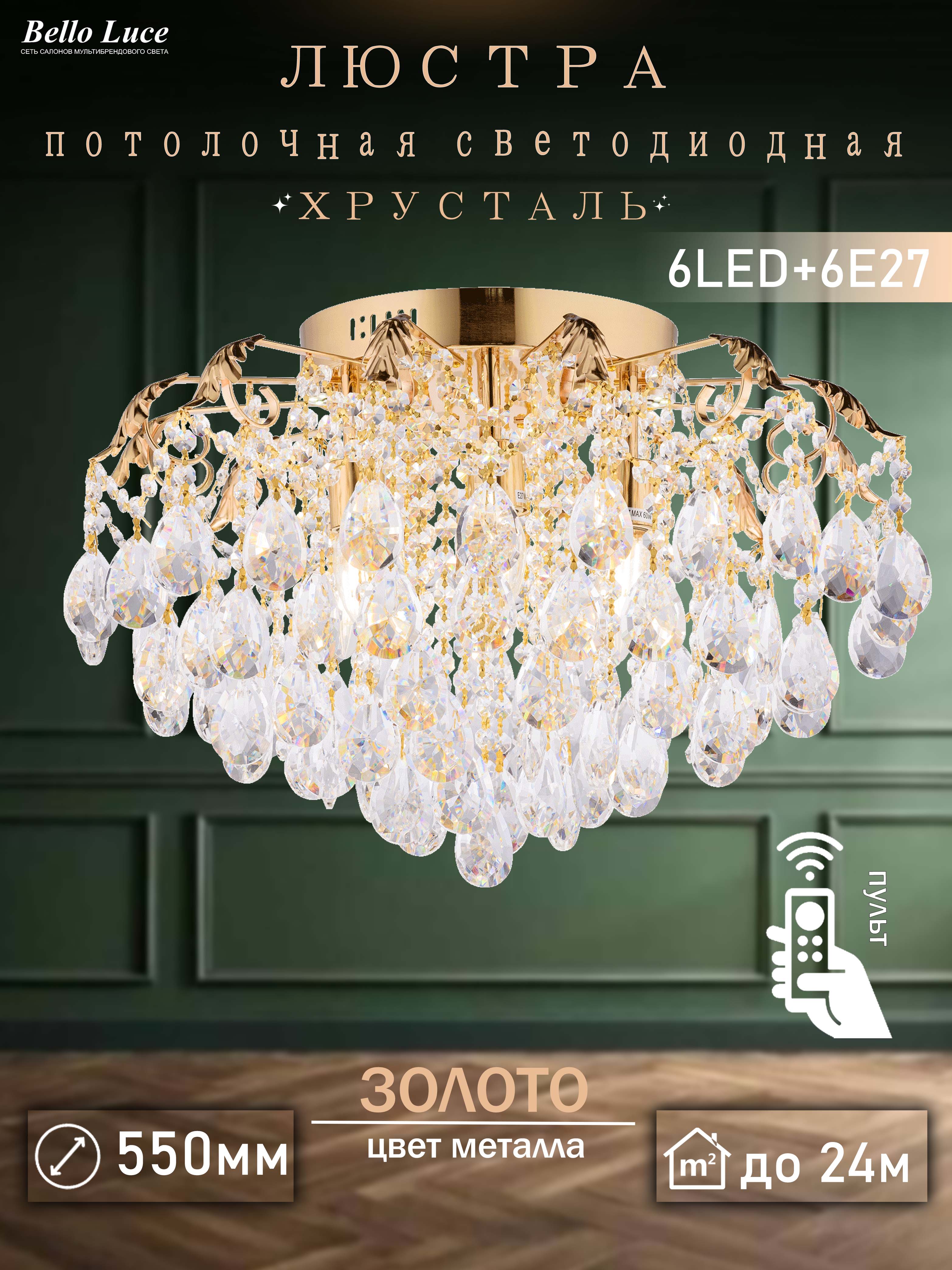 Название группы : Люстра хрустальная потолочная с пультом