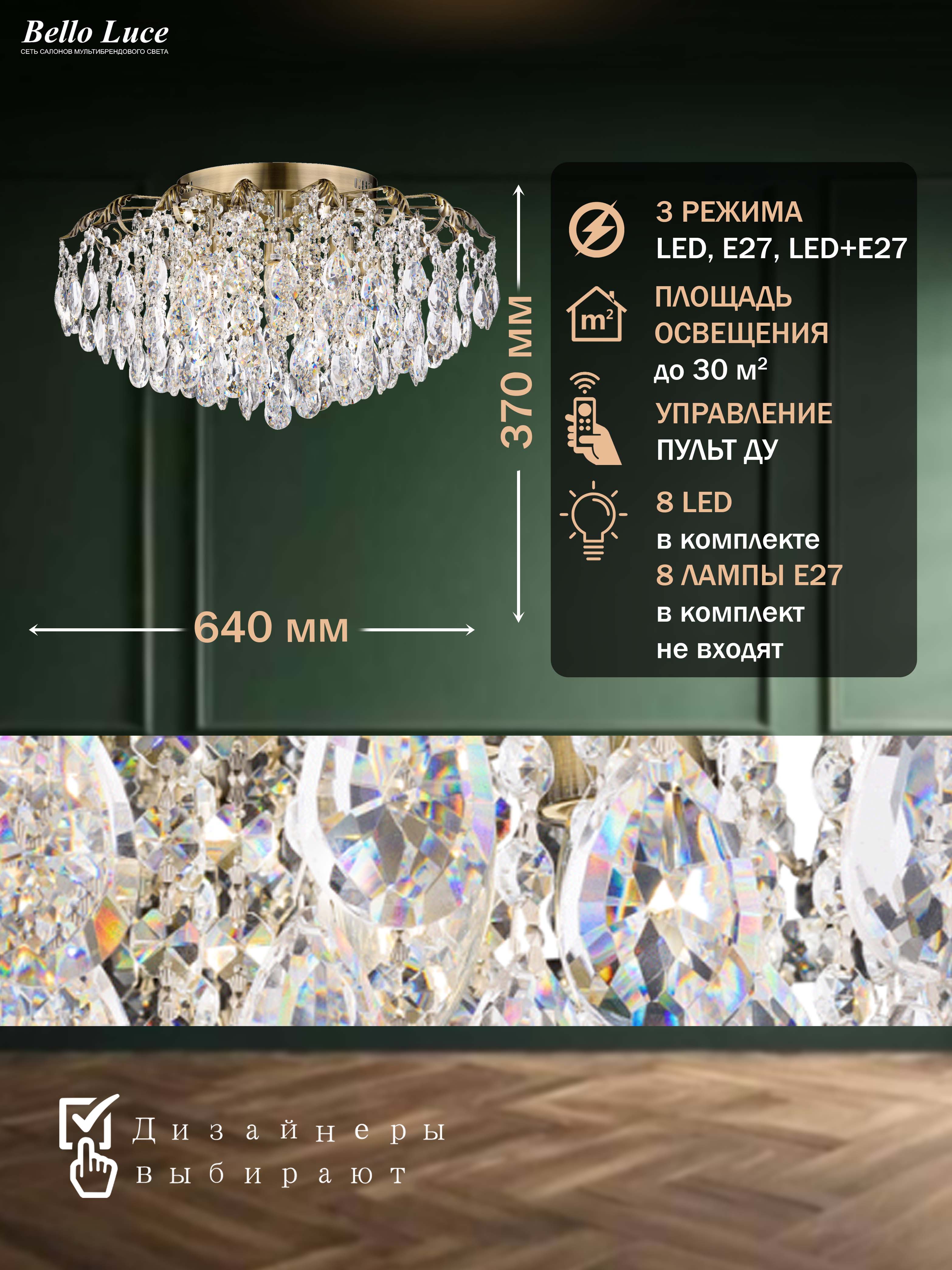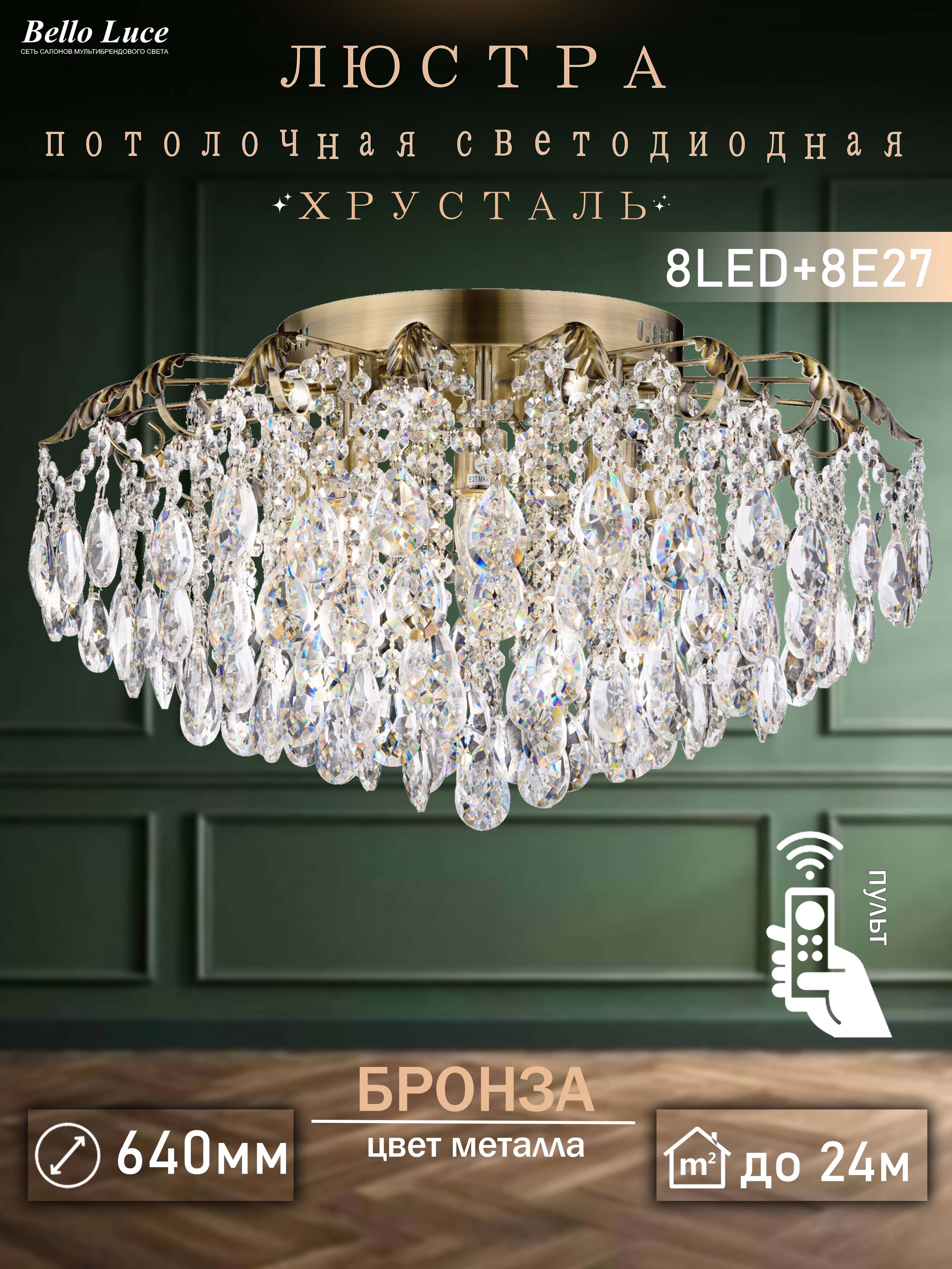 Компания Мегасвет предлагает вам оптом и в розницу Люстра хрустальная потолочная с подсветкой с пультом круглая античная бронза с прозрачными хрустальными подвесками на 8Led модулей + 8 E27 по цене 17010 рублей.