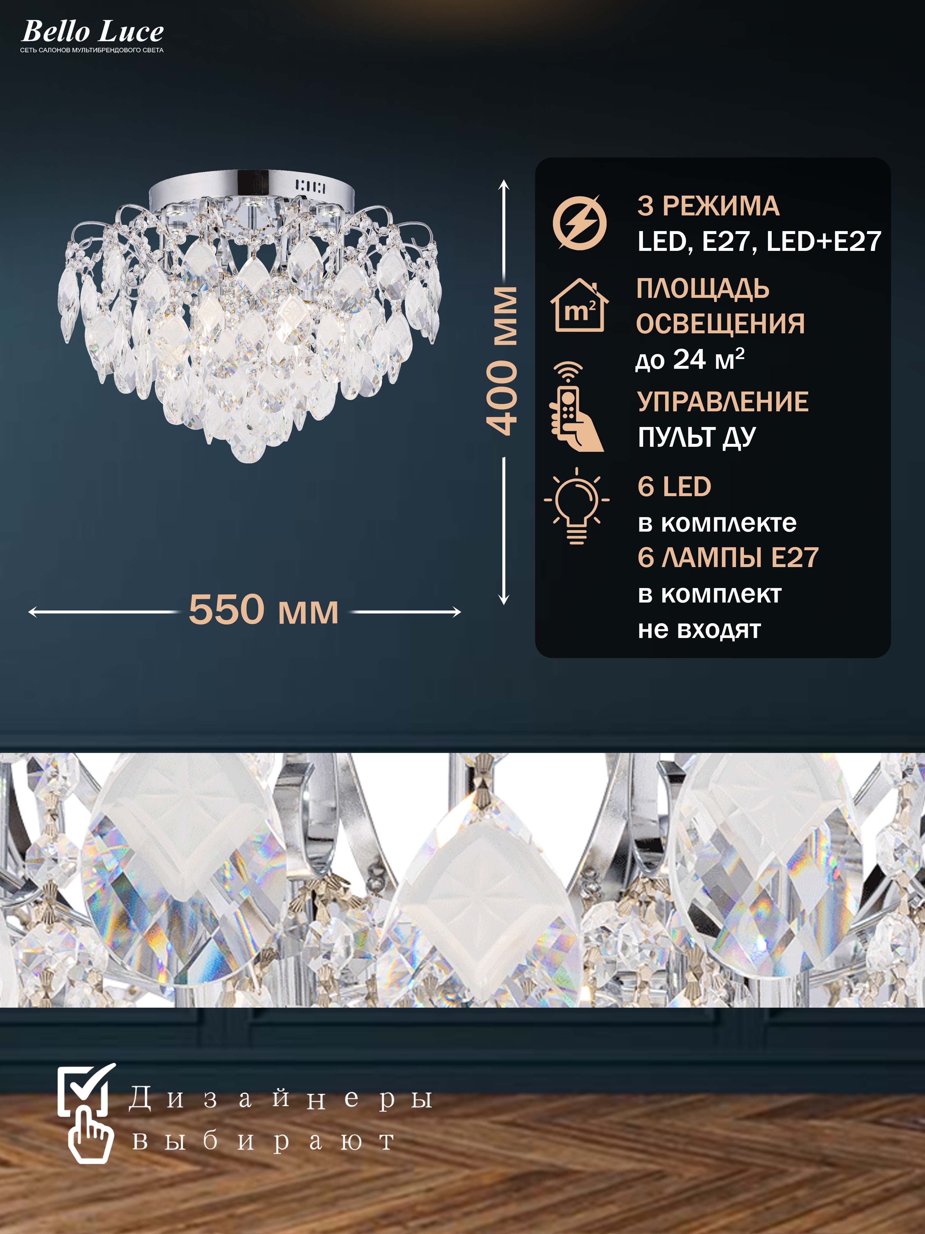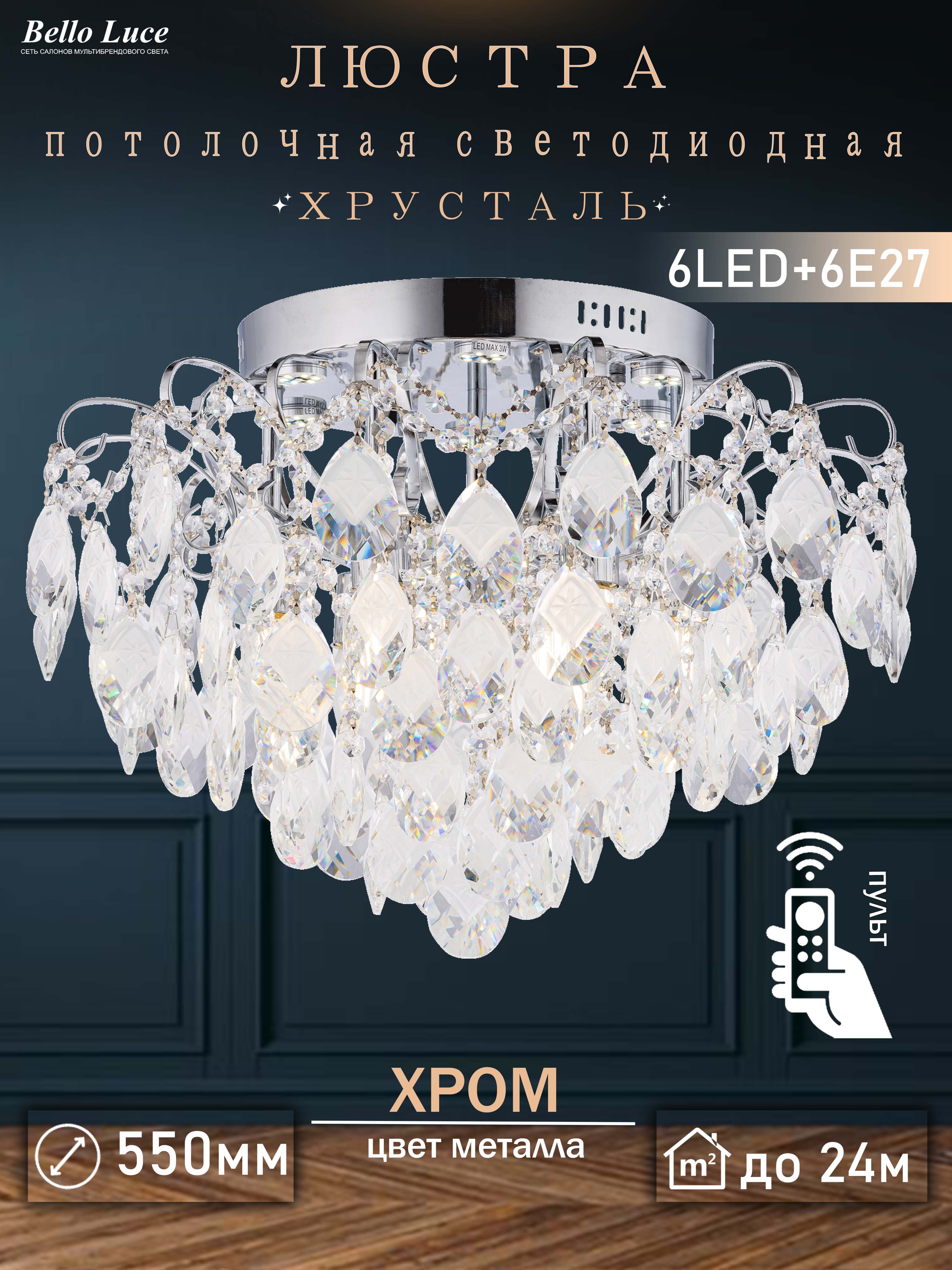 Название группы : Люстра хрустальная потолочная с пультом