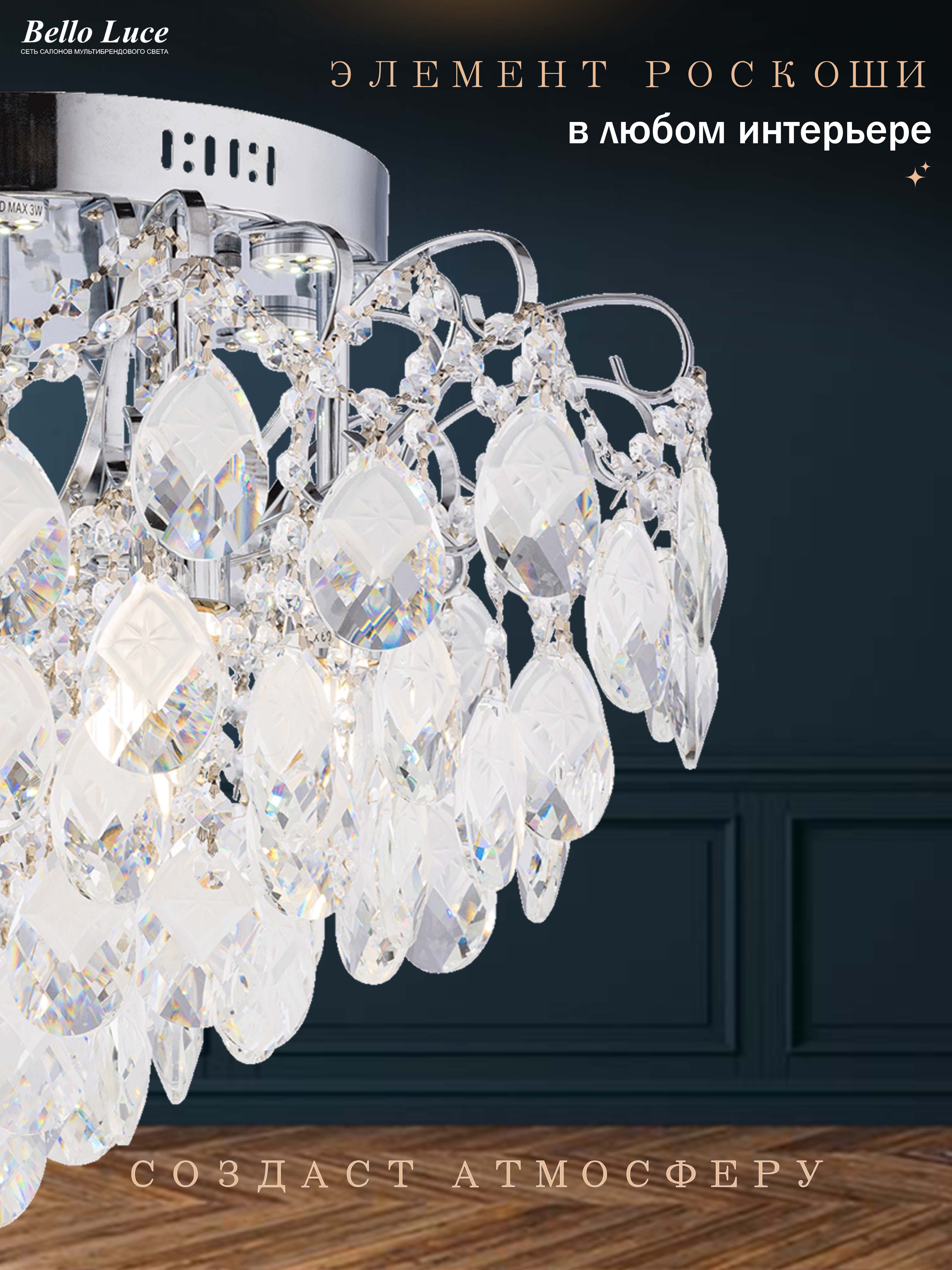 Представляем вашему вниманию стильную потолочную люстру с хрустальными элементами и подсветкой, которая станет изысканным дополнением вашего интерьера. Эта модель сочетает в себе современный дизайн и функциональность, обеспечивая идеальное освещение для любого помещения. Использование хрусталя придаёт люстре престижный вид, а отделка добавляет элегантности и шика.