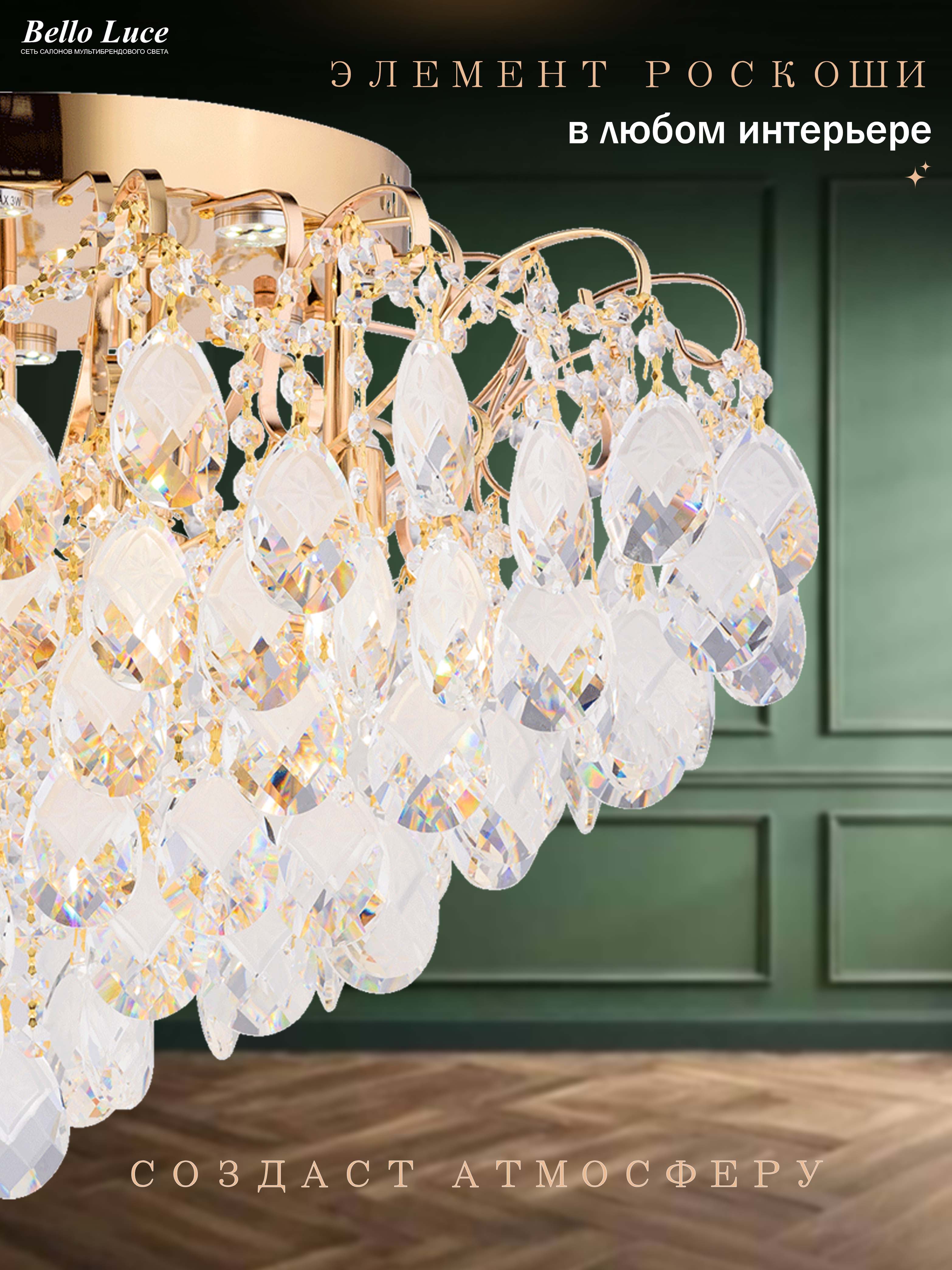 Представляем вашему вниманию стильную потолочную люстру с хрустальными элементами и подсветкой, которая станет изысканным дополнением вашего интерьера. Эта модель сочетает в себе современный дизайн и функциональность, обеспечивая идеальное освещение для любого помещения. Использование хрусталя придаёт люстре престижный вид, а отделка добавляет элегантности и шика.