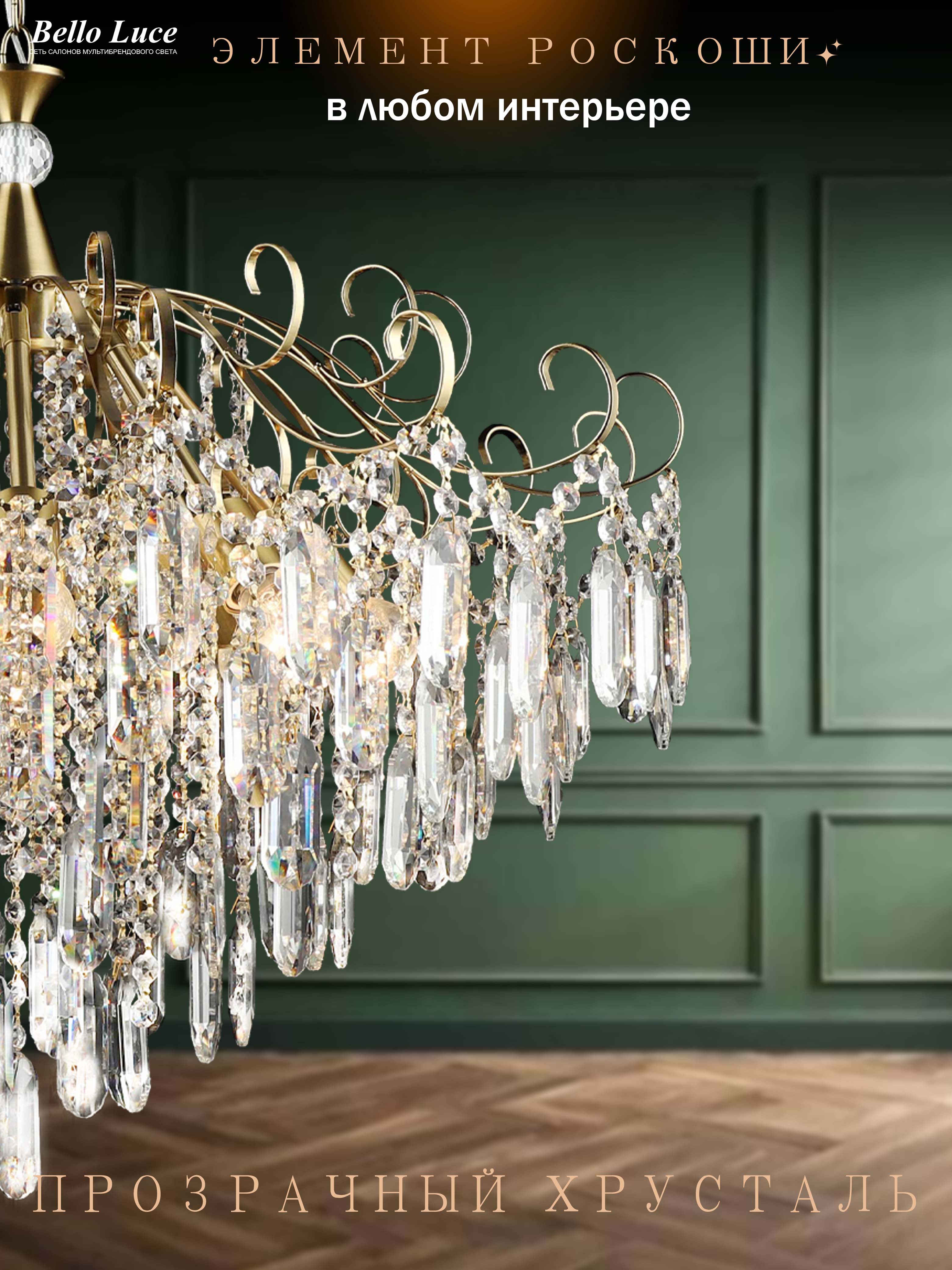 Представляем вашему вниманию роскошную хрустальную подвесную люстру, которая станет ярким акцентом в любом интерьере. Эта стильная модель выполнена в современном дизайне с элементами престижа, что делает её идеальным выбором для тех, кто ценит изысканность и оригинальность.