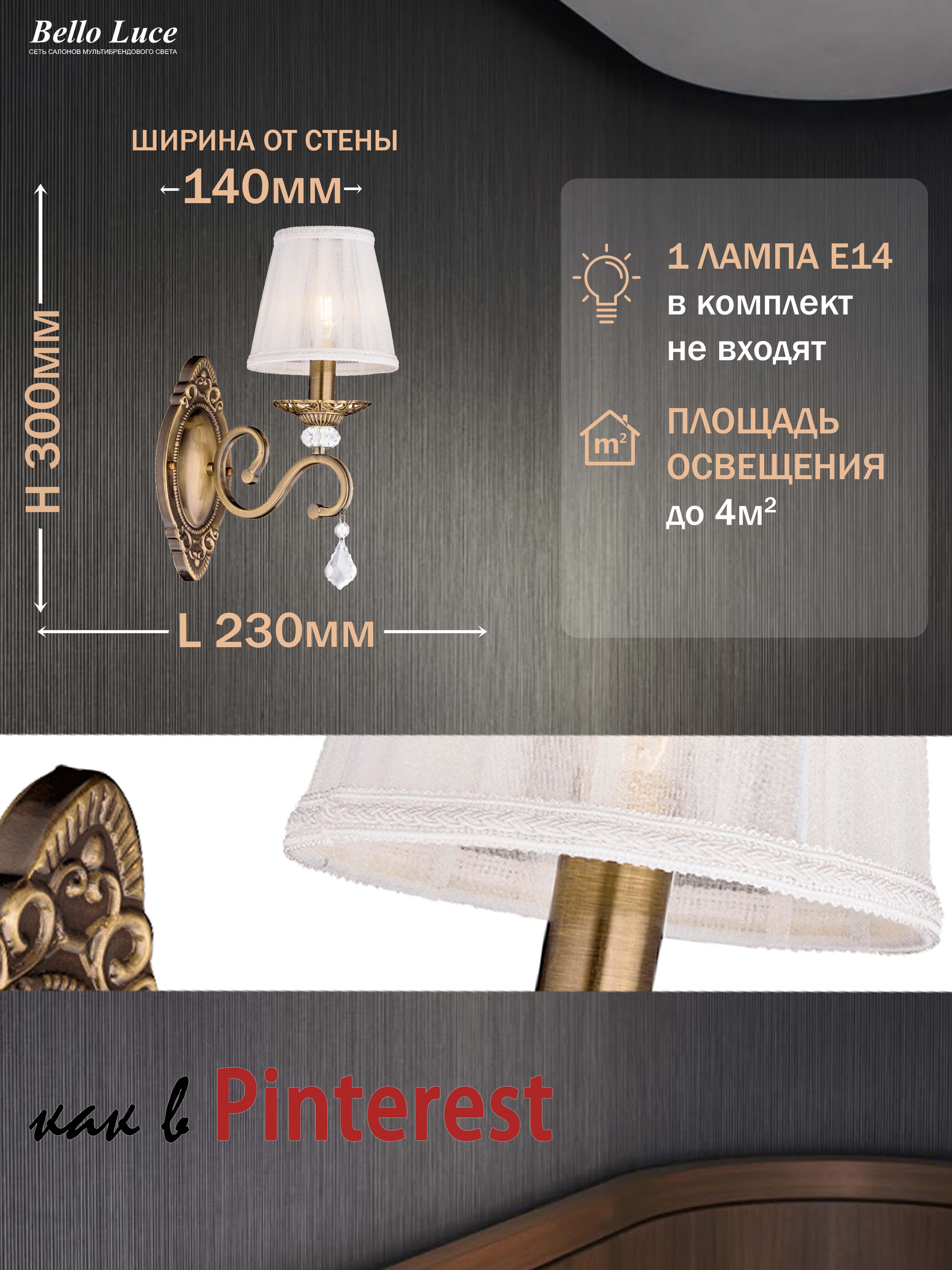 Представляем вашему вниманию настенный светильник в классическом элегантном стиле, это идеальный выбор для тех, кто ценит современный и стильный дизайн в интерьере. Этот светильник станет настоящим украшением вашего пространства, добавляя ему модный и трендовый акцент. Бра отлично подойдет как для классических, так и для современных интерьеров, легко вписываясь в любую обстановку.