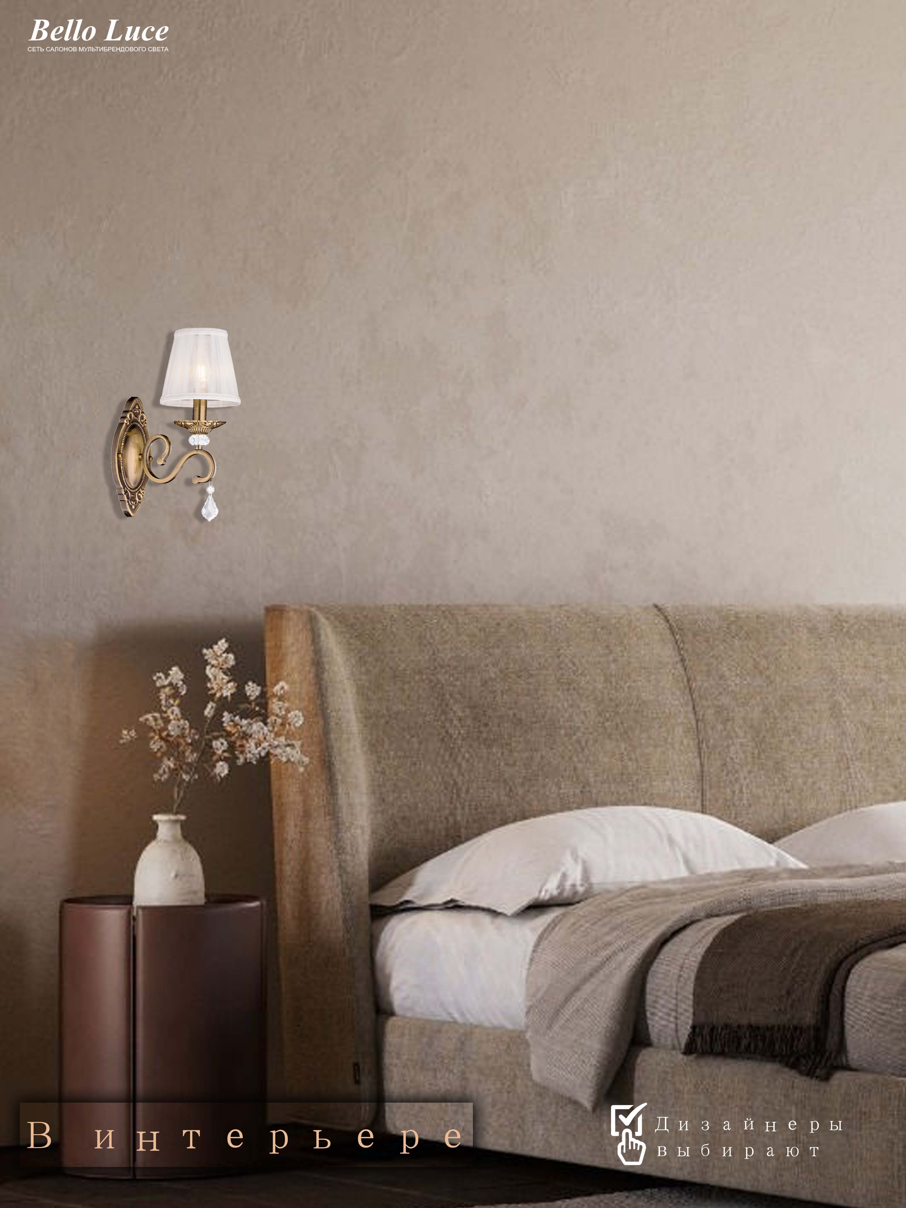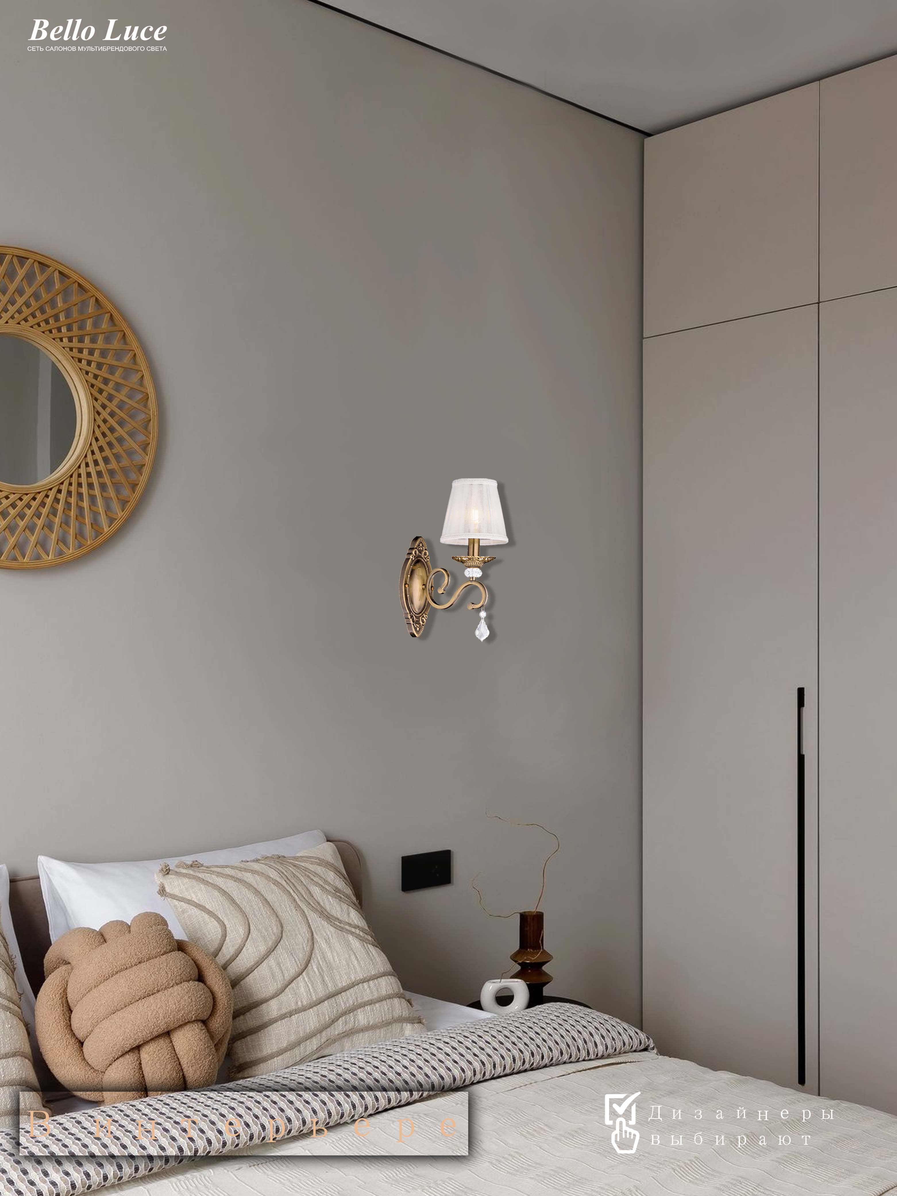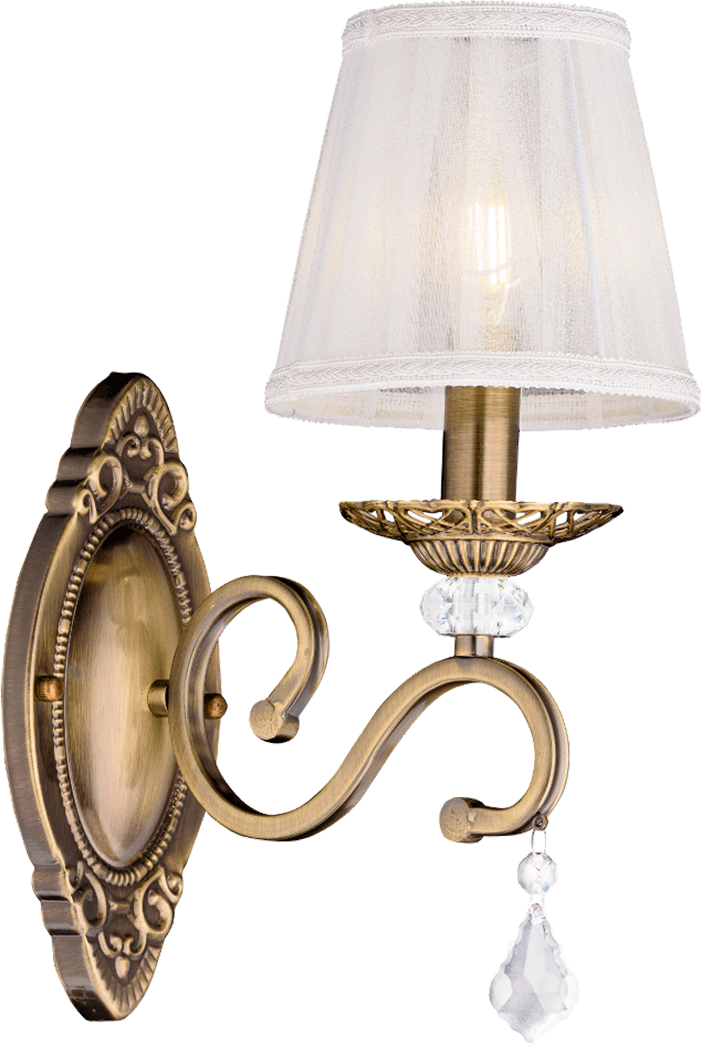 Компания Мегасвет предлагает вам оптом и в розницу Светильник настенный, бра Классика античная бронза с прозрачной хрустальной подвеской, текстильный абажур на 1 лампу E14 по цене 1593 рублей.