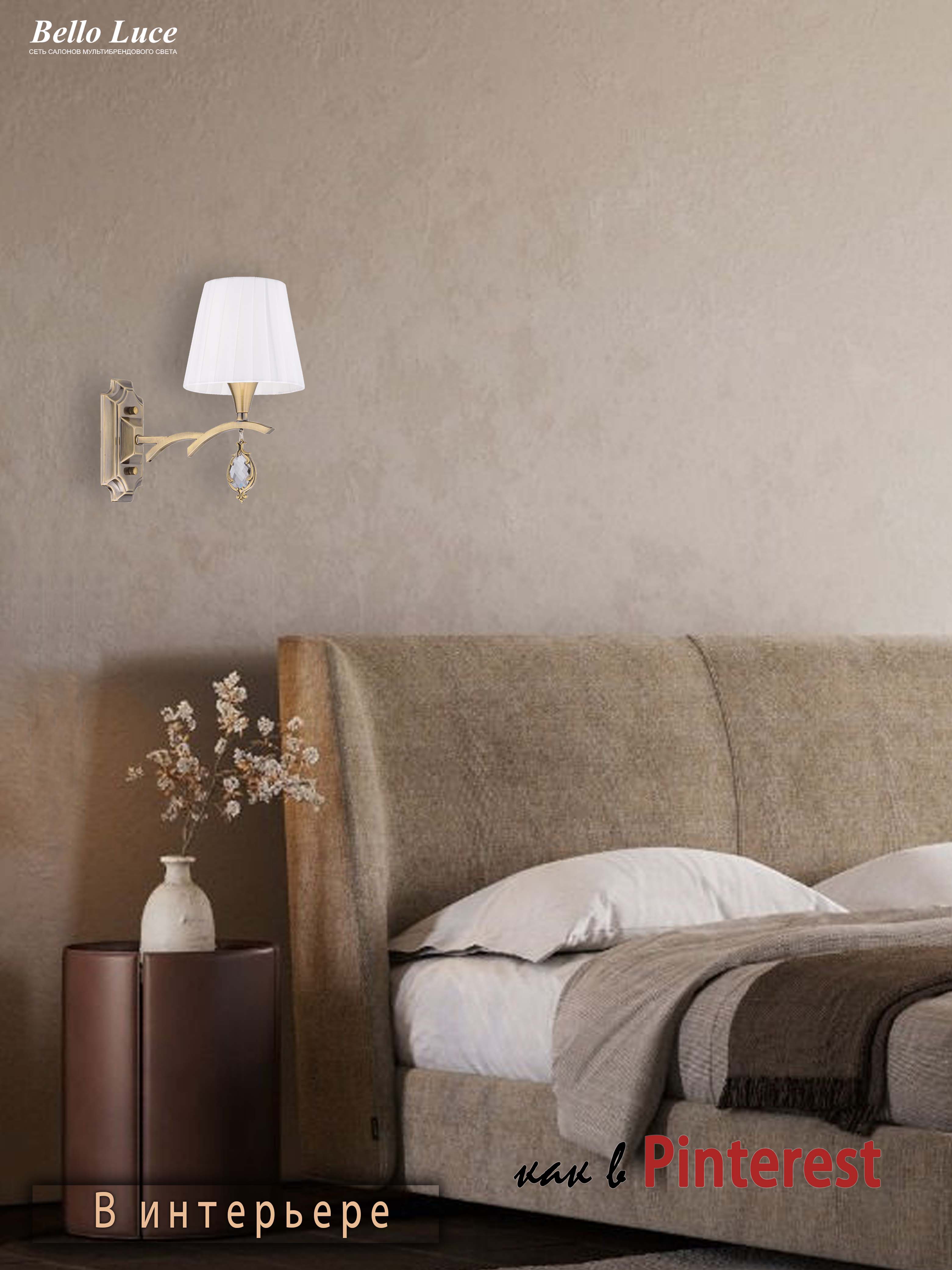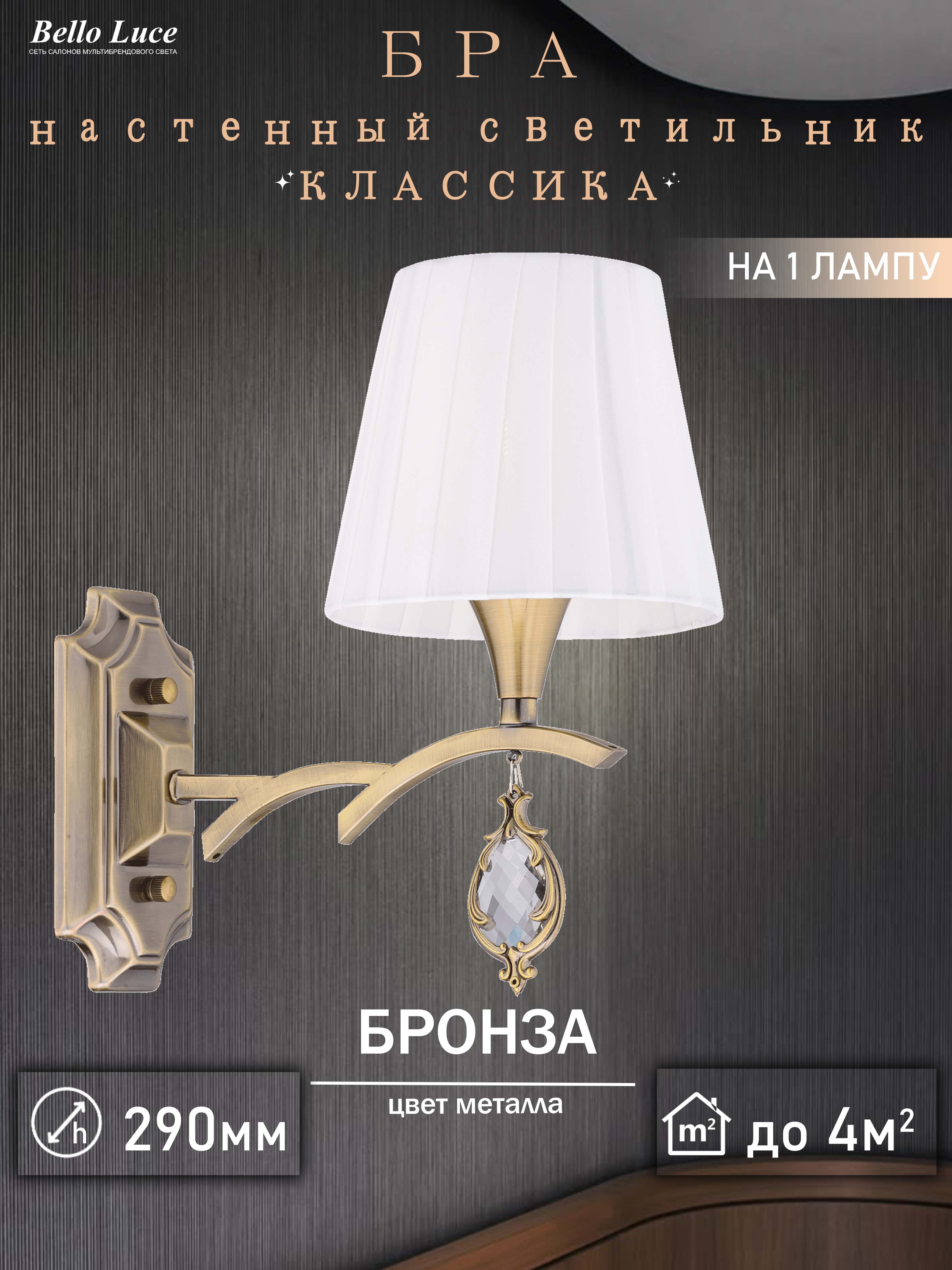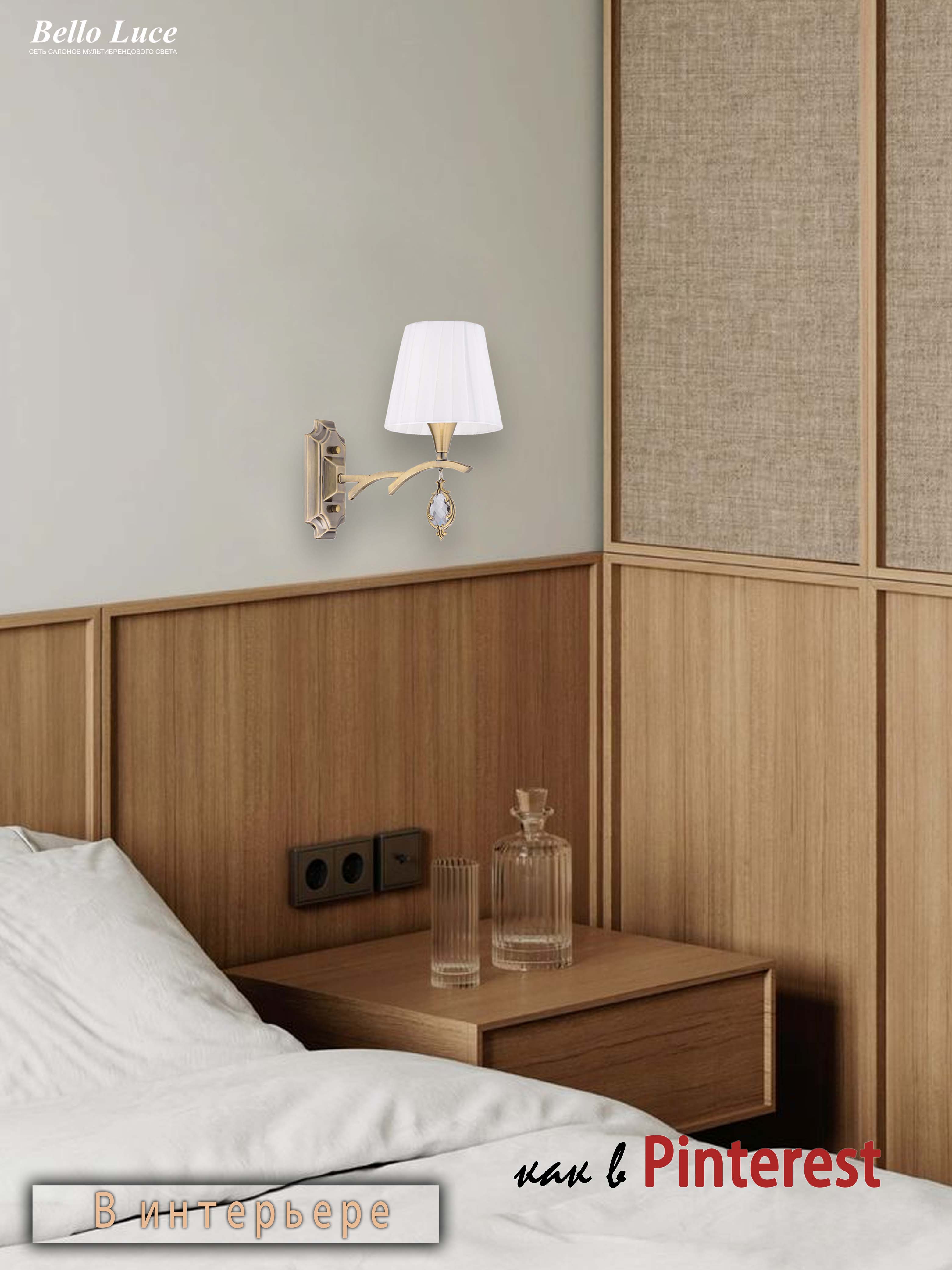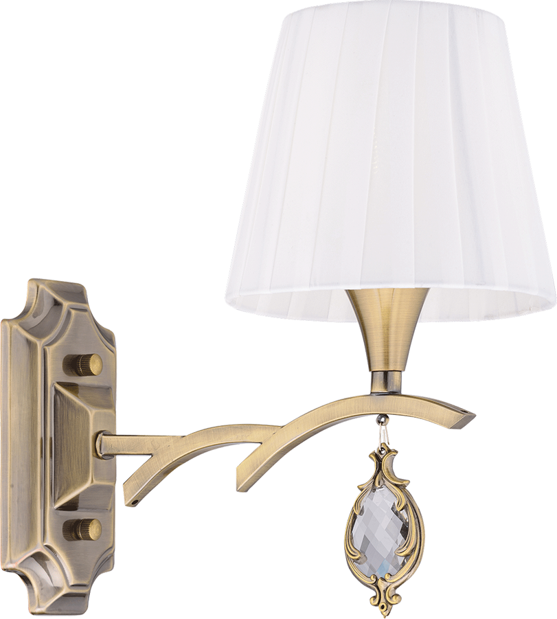 Компания Мегасвет предлагает вам оптом и в розницу Светильник настенный, бра Классика бронза с прозрачной хрустальной подвеской, белый текстильный абажур на 1 лампу E14 по цене 3726 рублей.