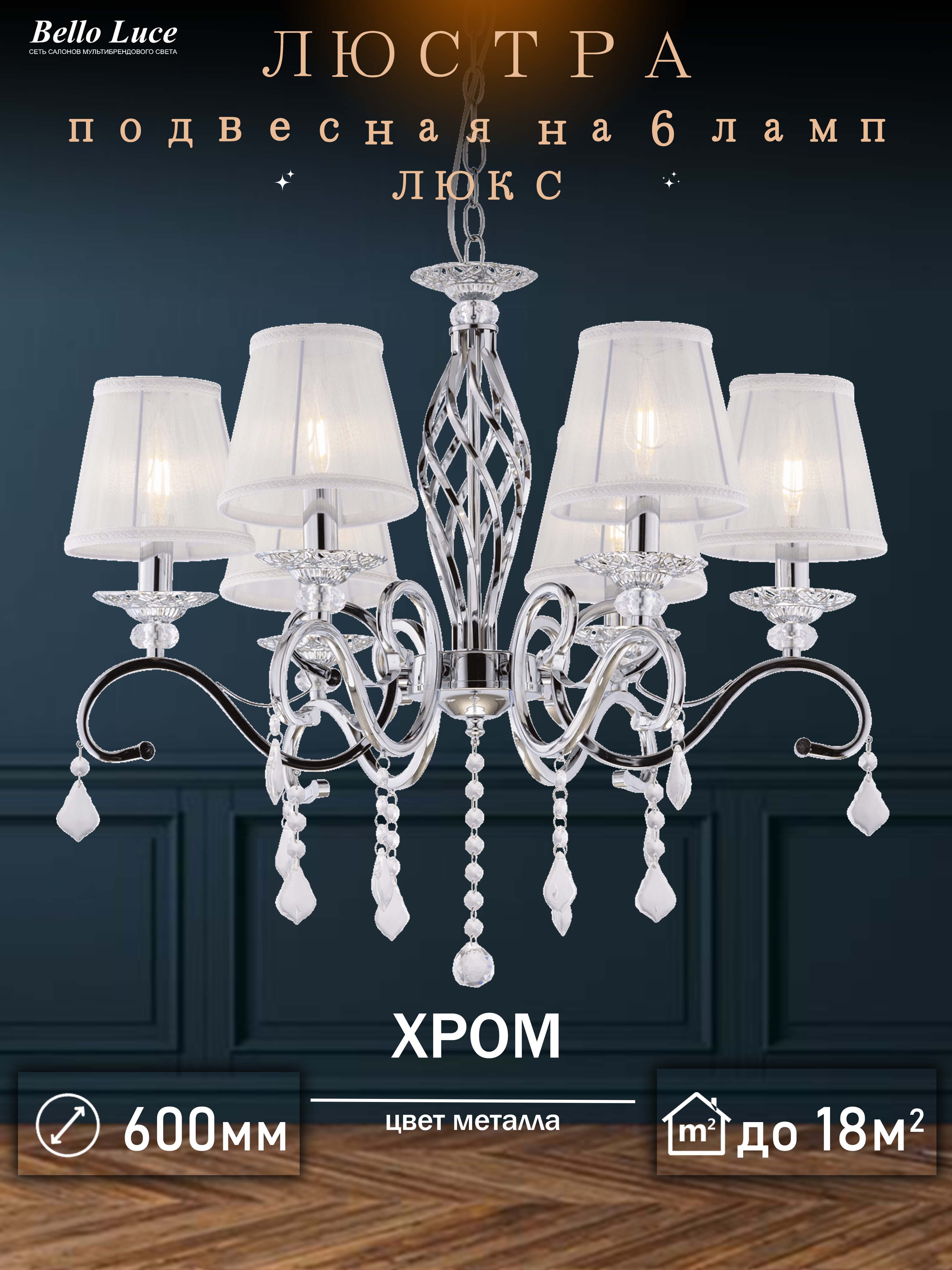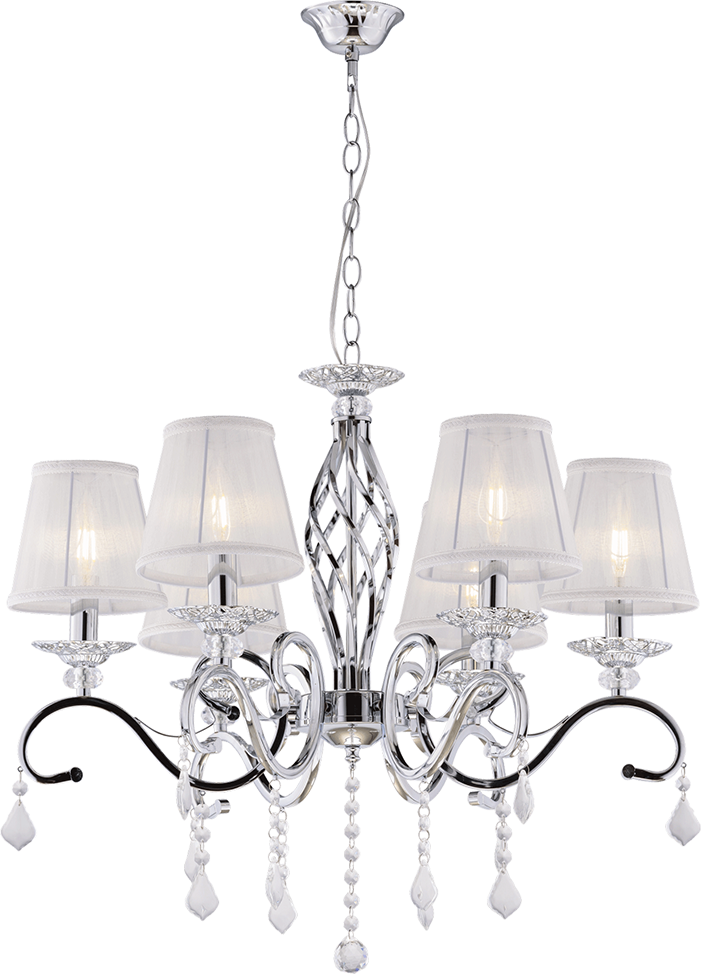 Компания Мегасвет предлагает вам оптом и в розницу Люстра Классика подвесная хром с прозрачными хрустальными подвесками на 6 ламп E14, белый текстильный абажур, регулировка по высоте по цене 8019 рублей.