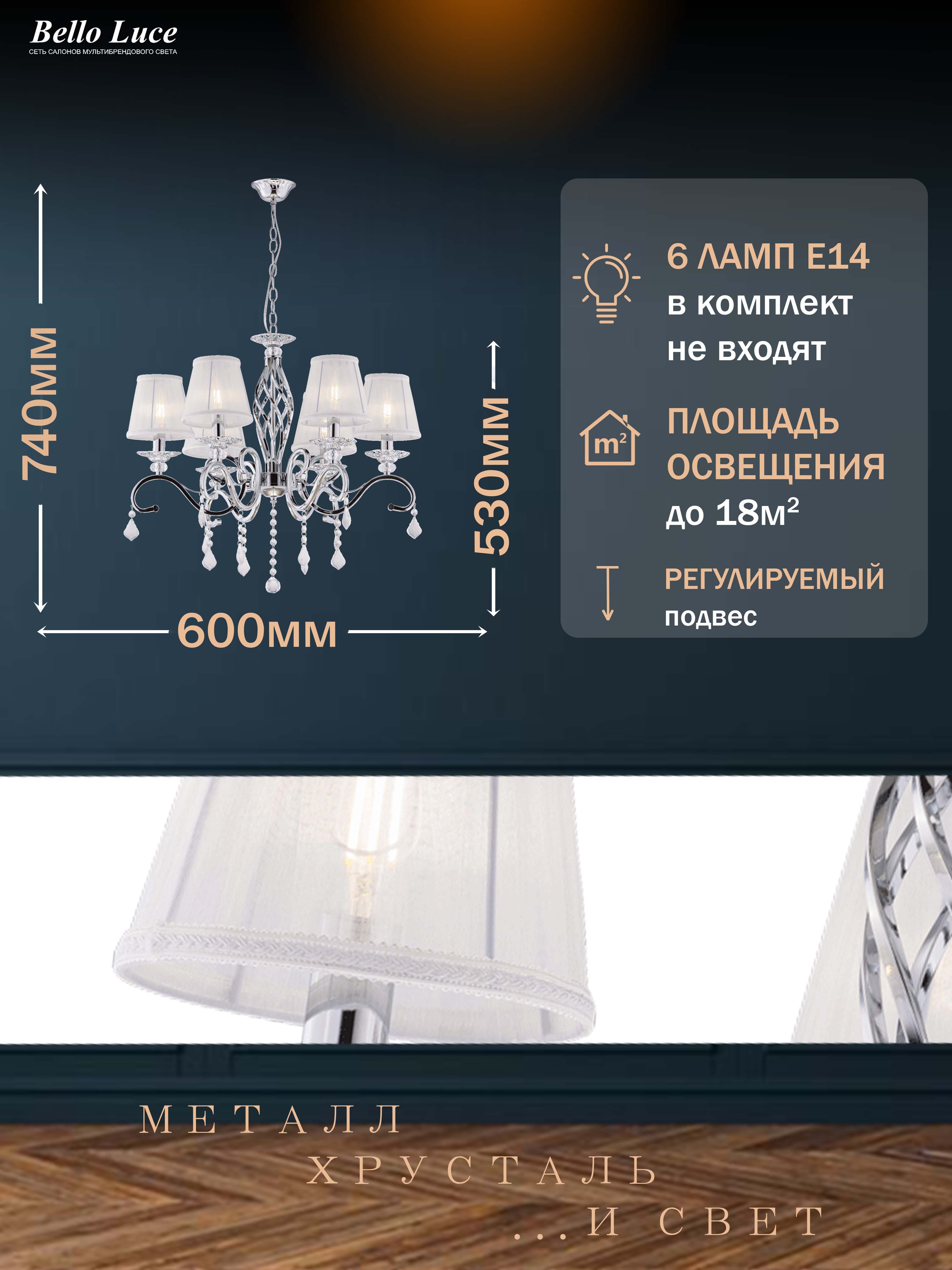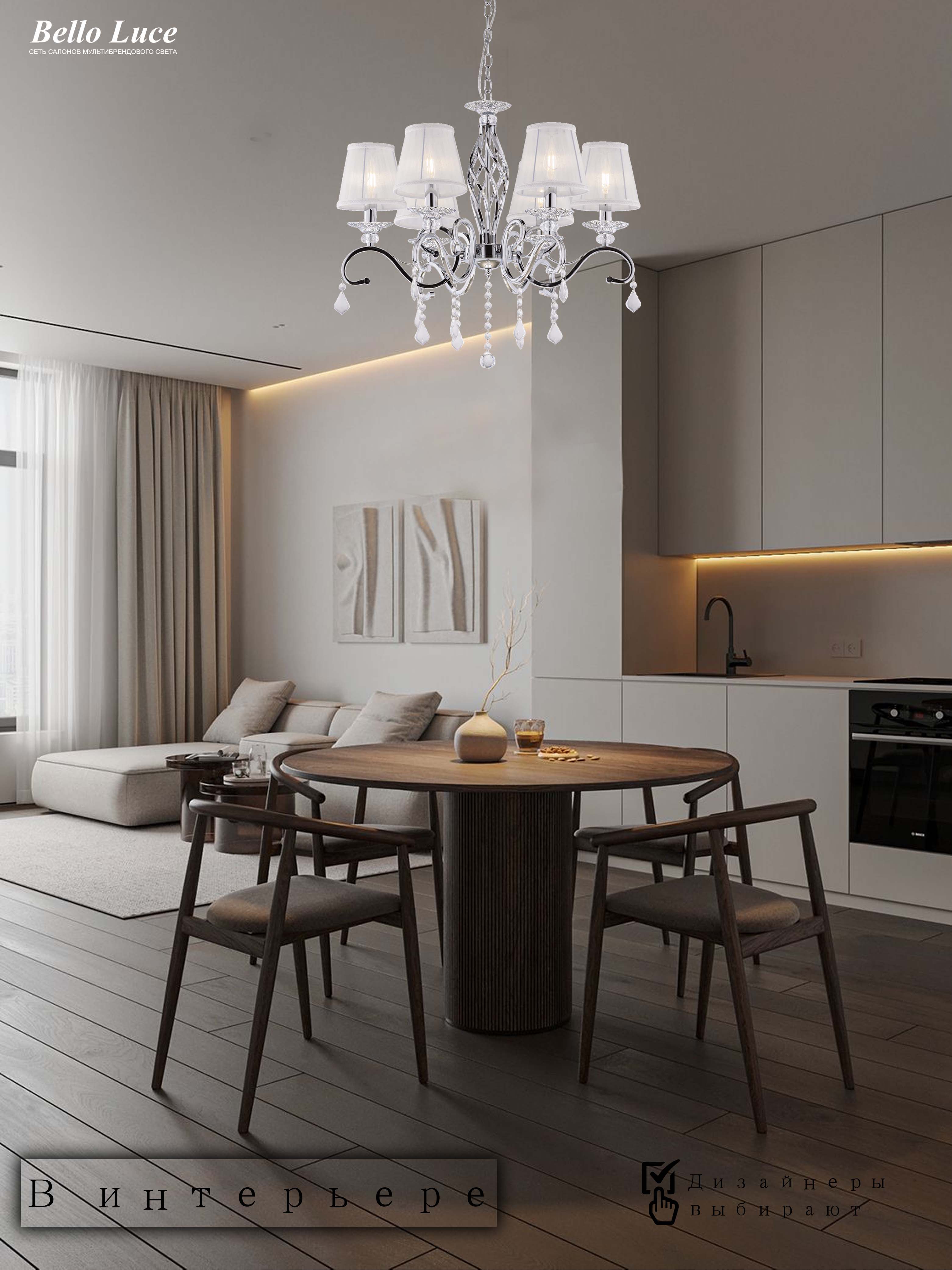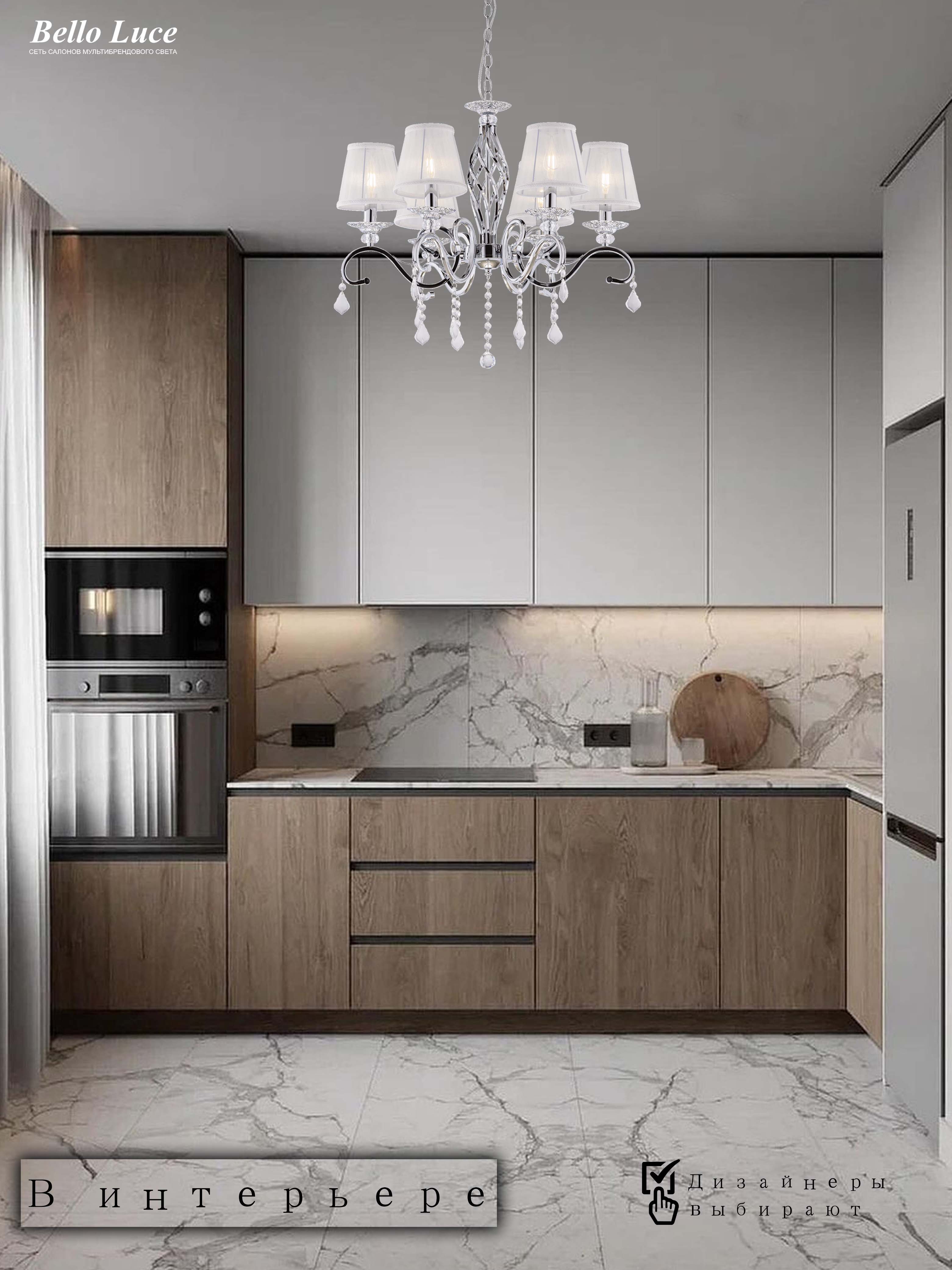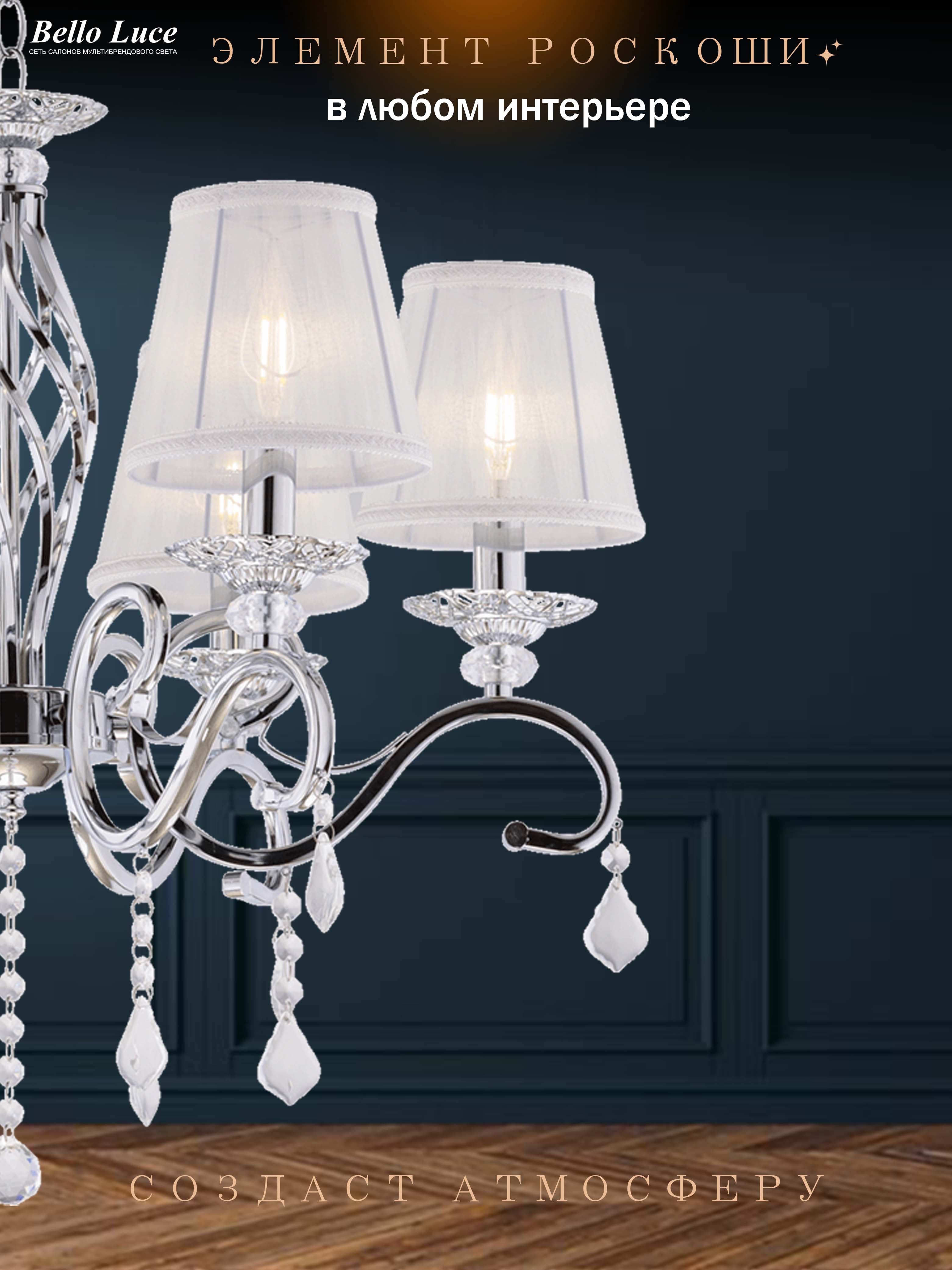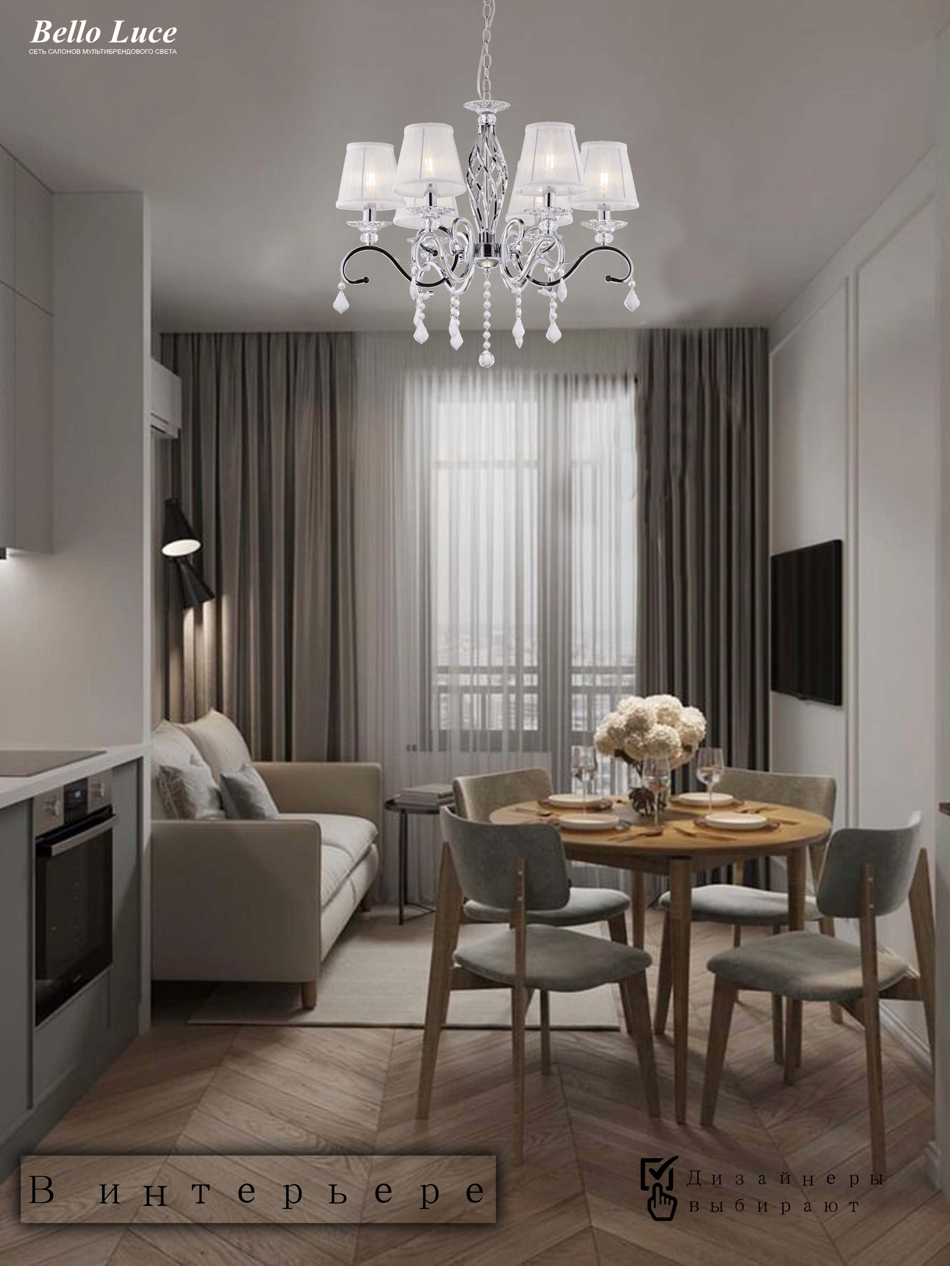 Она идеально впишется в разные интерьеры, будь то гостиная, спальня или обеденная зона. Хрустальные элементы добавляют изысканности и утонченности, а классический дизайн делает эту люстру универсальным выбором для разнообразных стилей — от традиционного до современного.