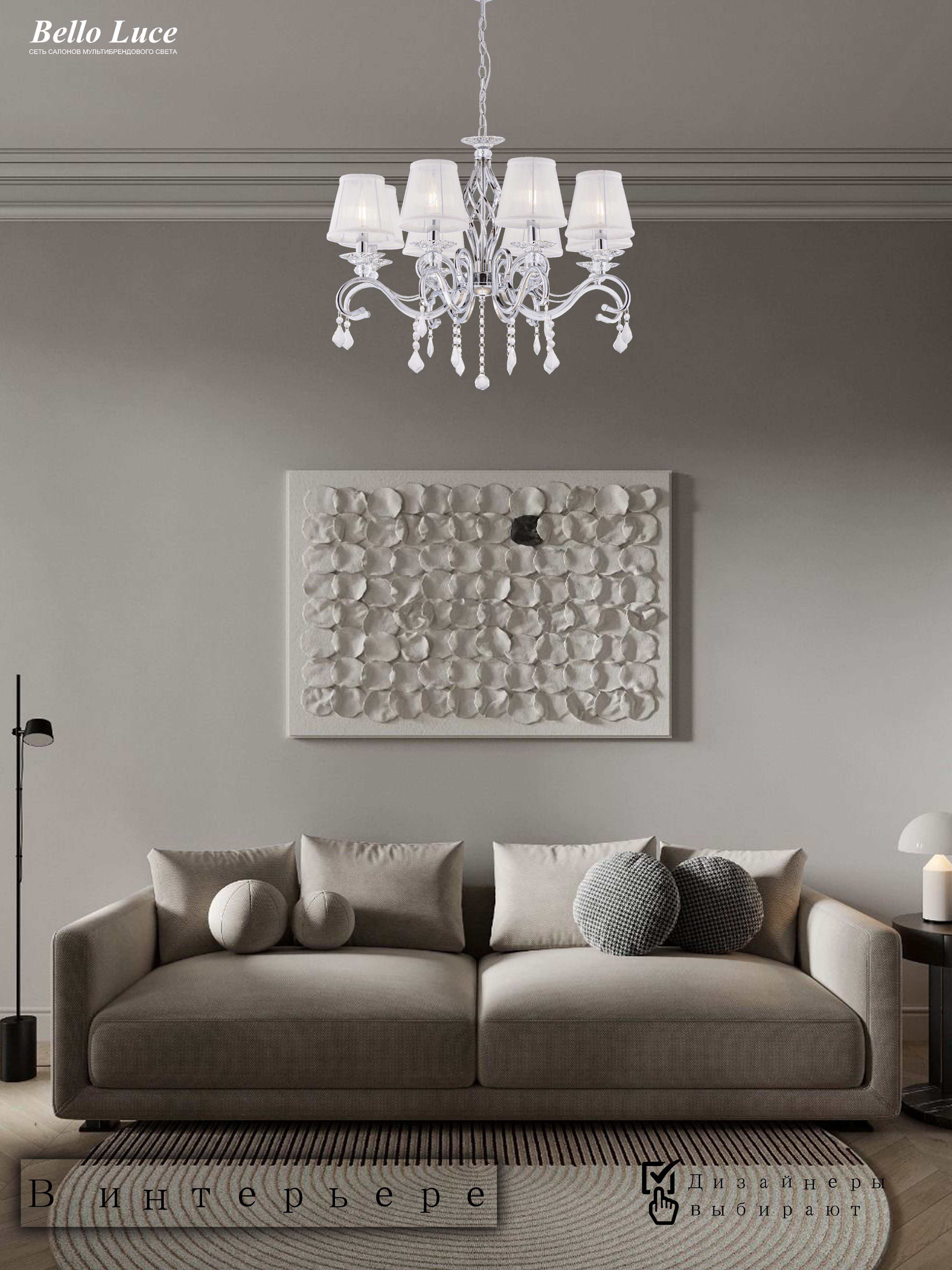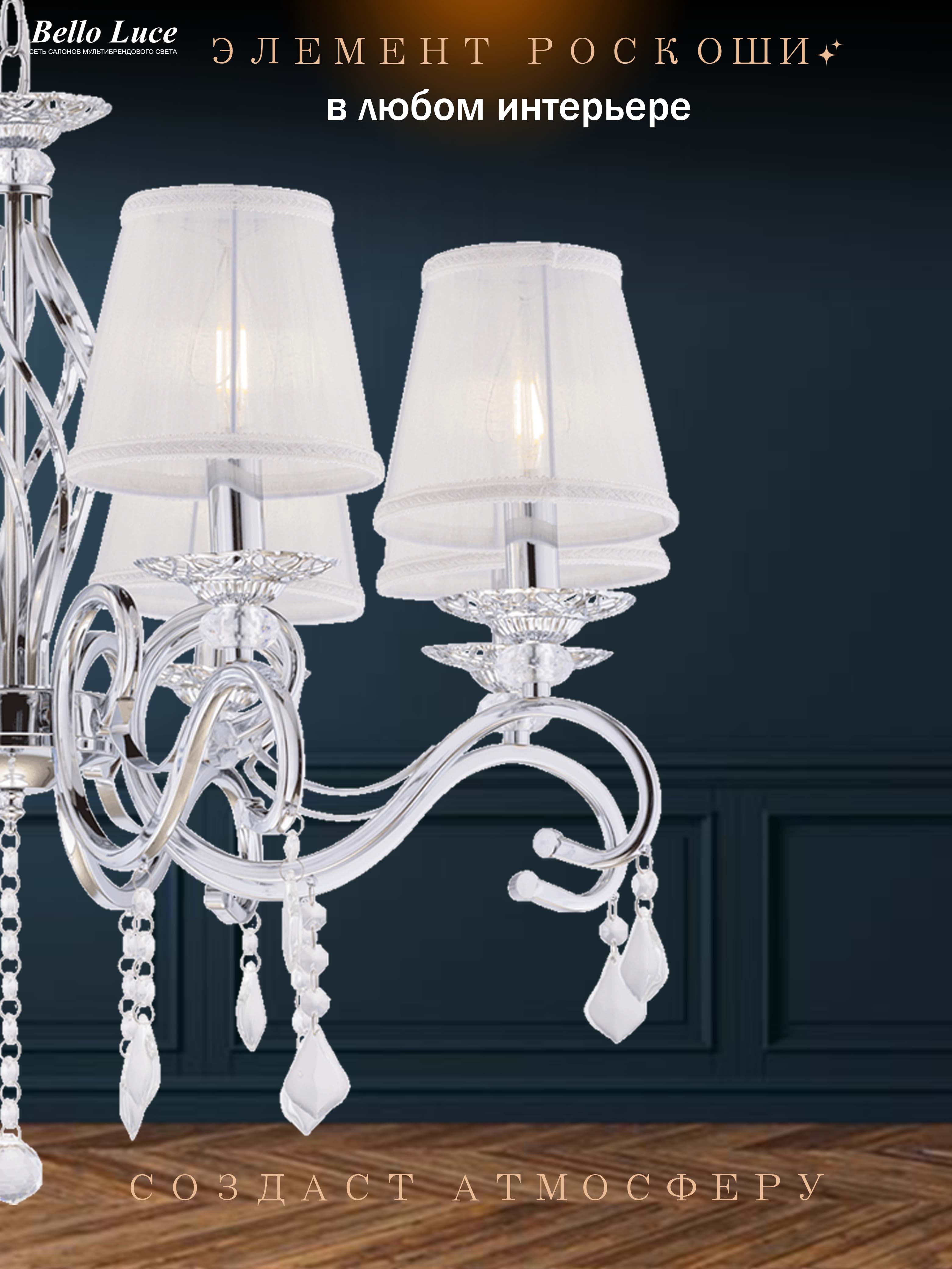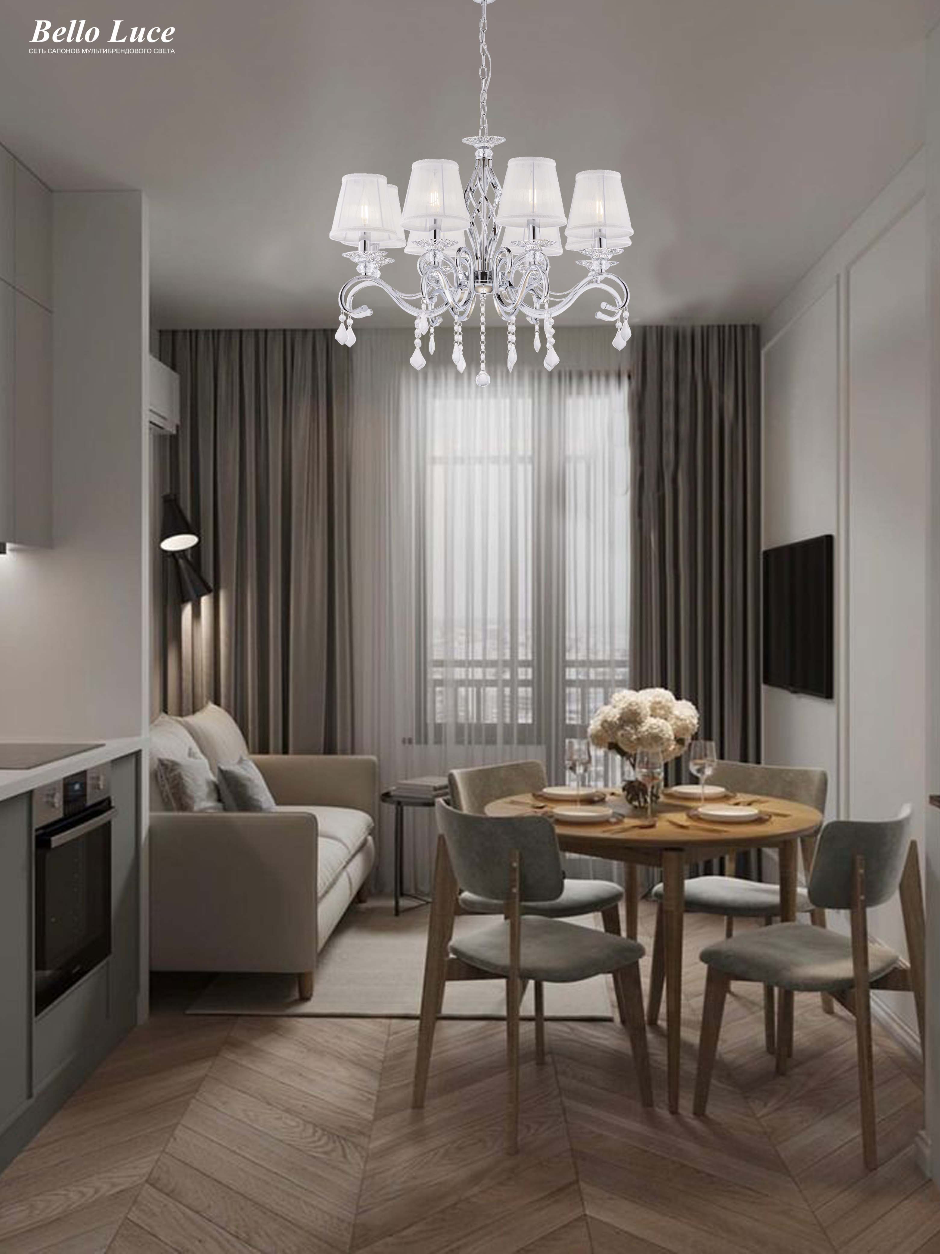 Она идеально впишется в разные интерьеры, будь то гостиная, спальня или обеденная зона. Хрустальные элементы добавляют изысканности и утонченности, а классический дизайн делает эту люстру универсальным выбором для разнообразных стилей — от традиционного до современного.