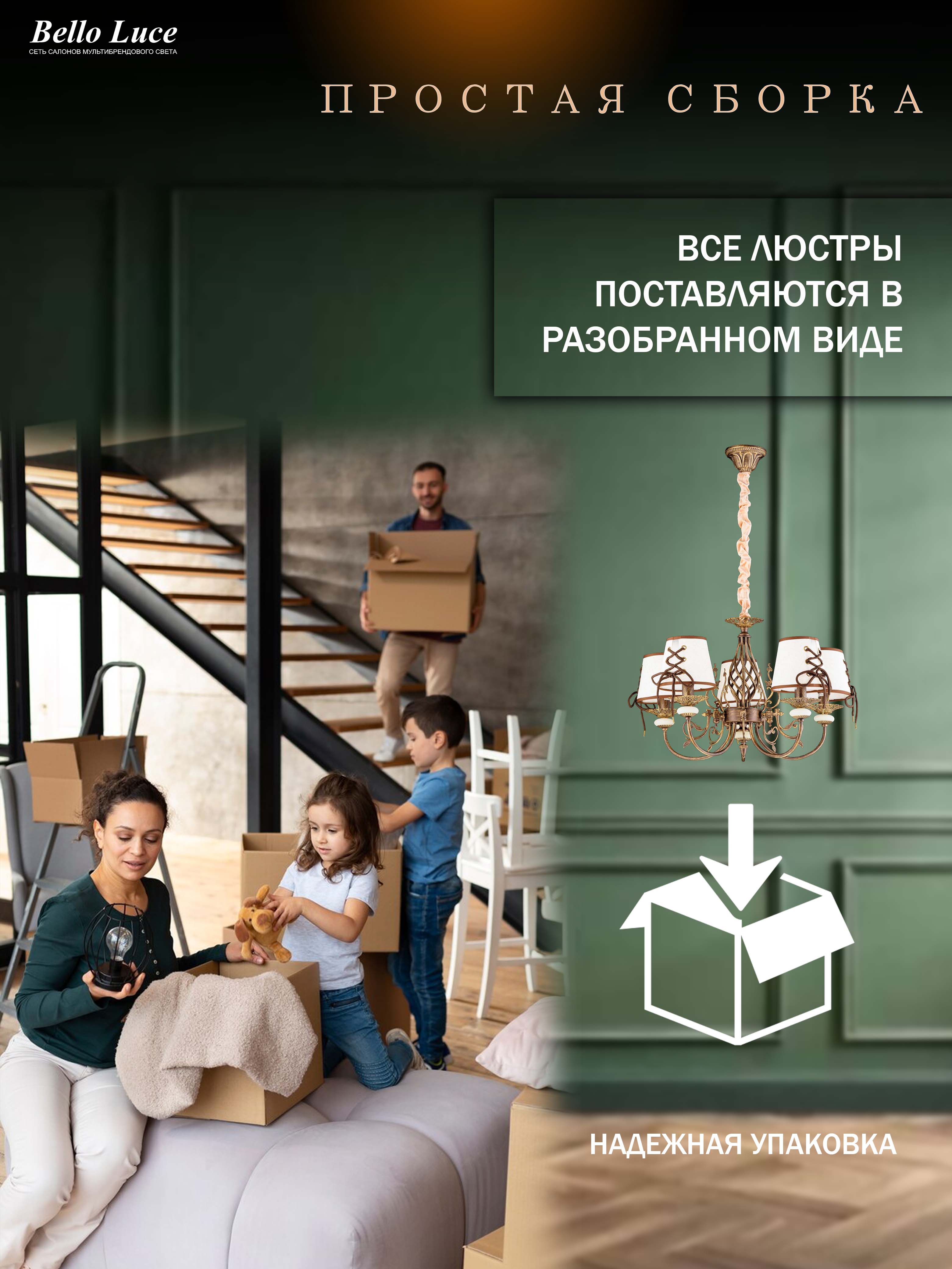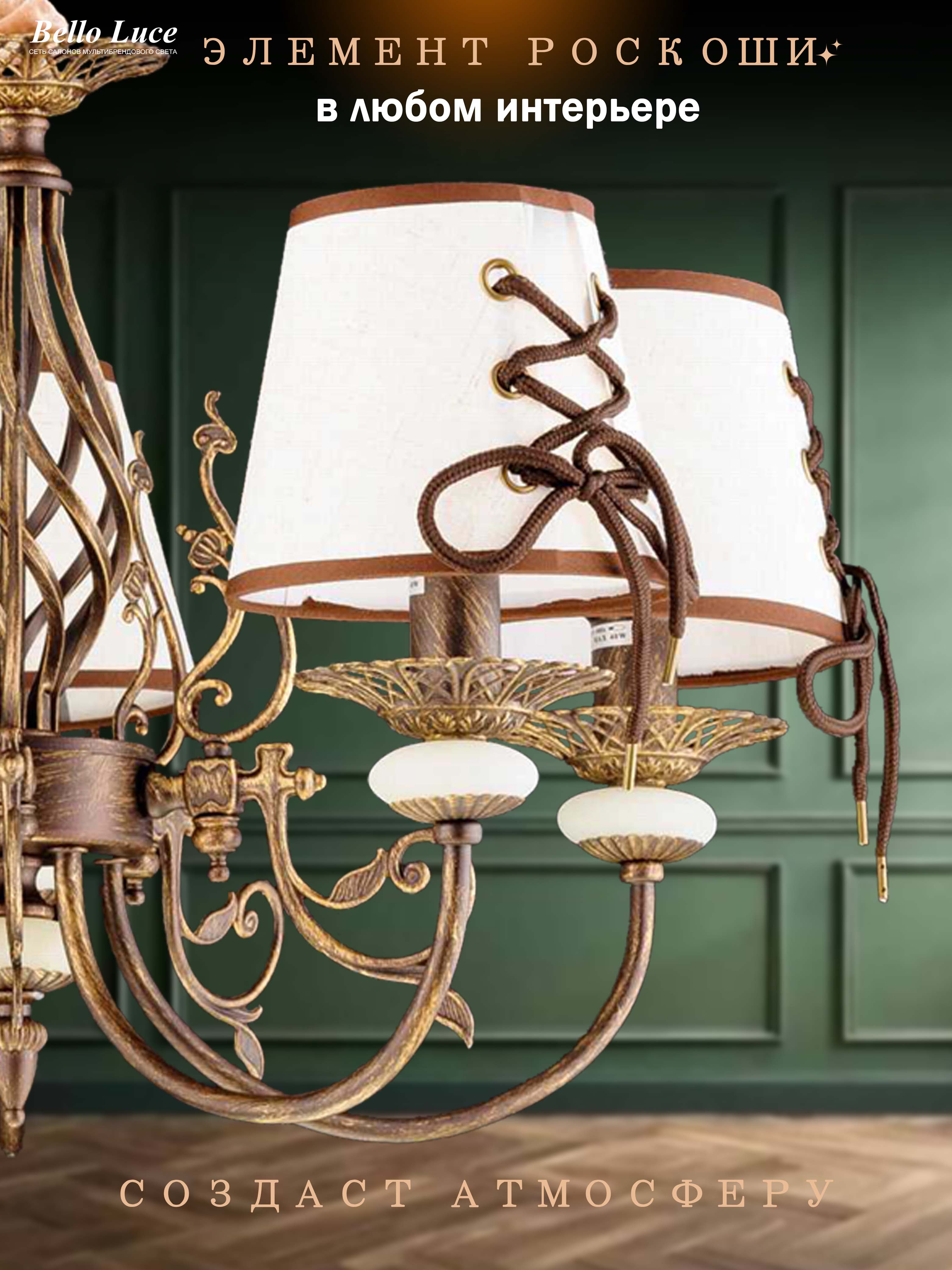 Люстра обеспечивает достаточно света для просторных помещений, делая их более комфортными и привлекательными. Настройте уровень освещения под свои предпочтения, выбрав подходящие лампы с нужной яркостью.