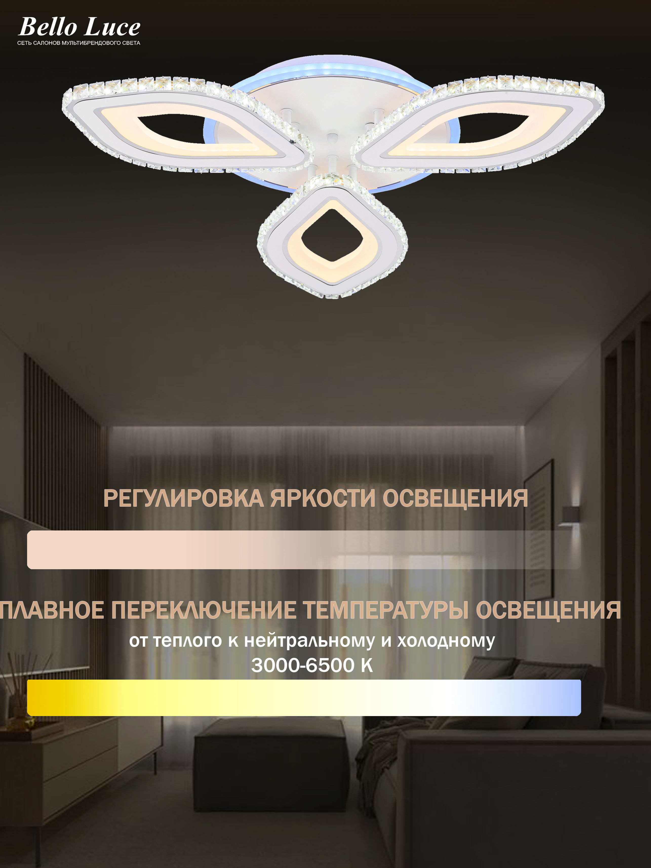 Люстра также оснащена удобным пультом дистанционного управления, который упрощает процесс настройки освещения. С его помощью вы сможете легко изменять яркость, не вставая с места. Ваша комната наполнится светом в одно мгновение, а возможность выбора температуры света позволит создать нужное настроение – от уютного и расслабляющего до яркого и энергичного.