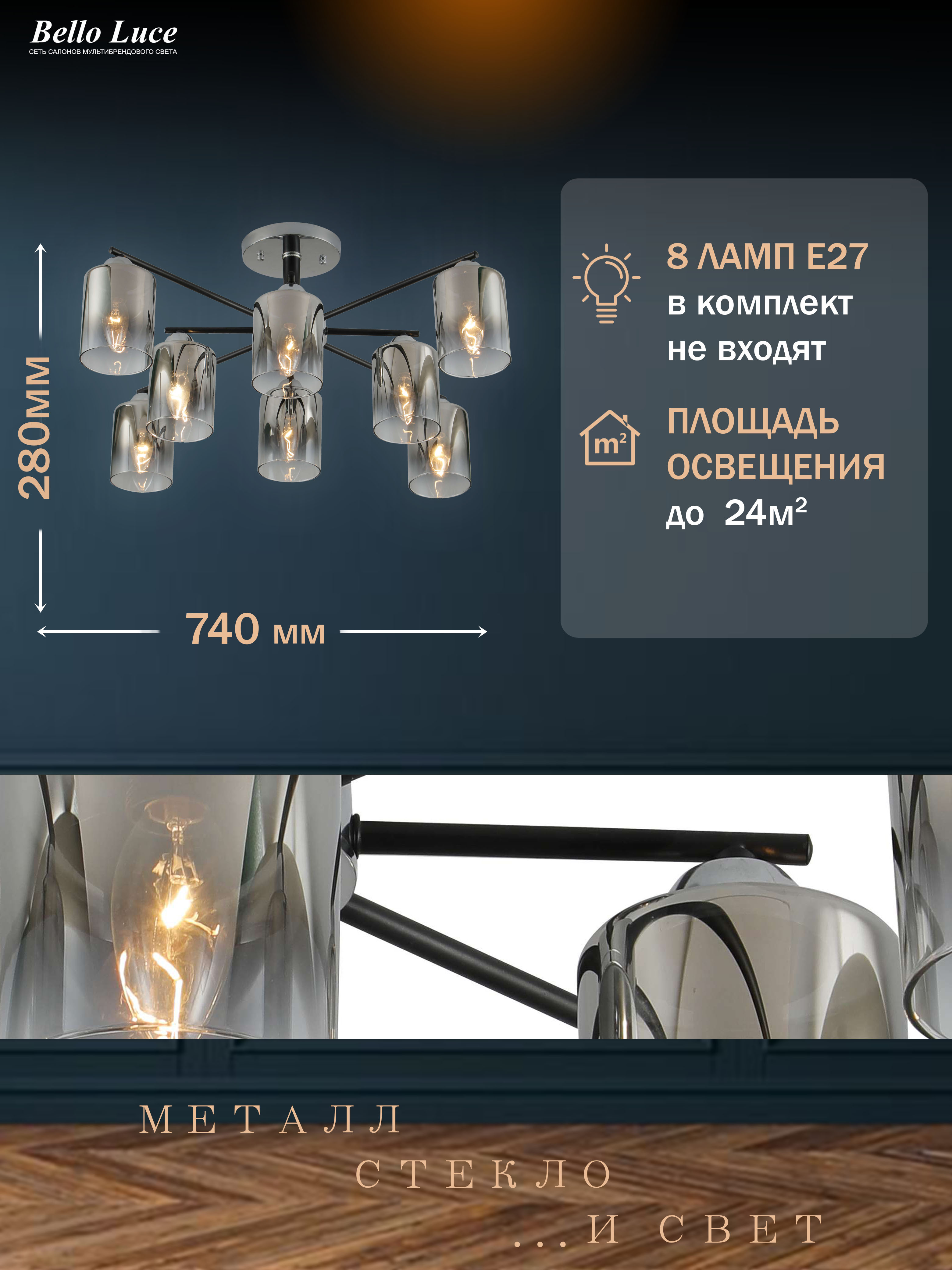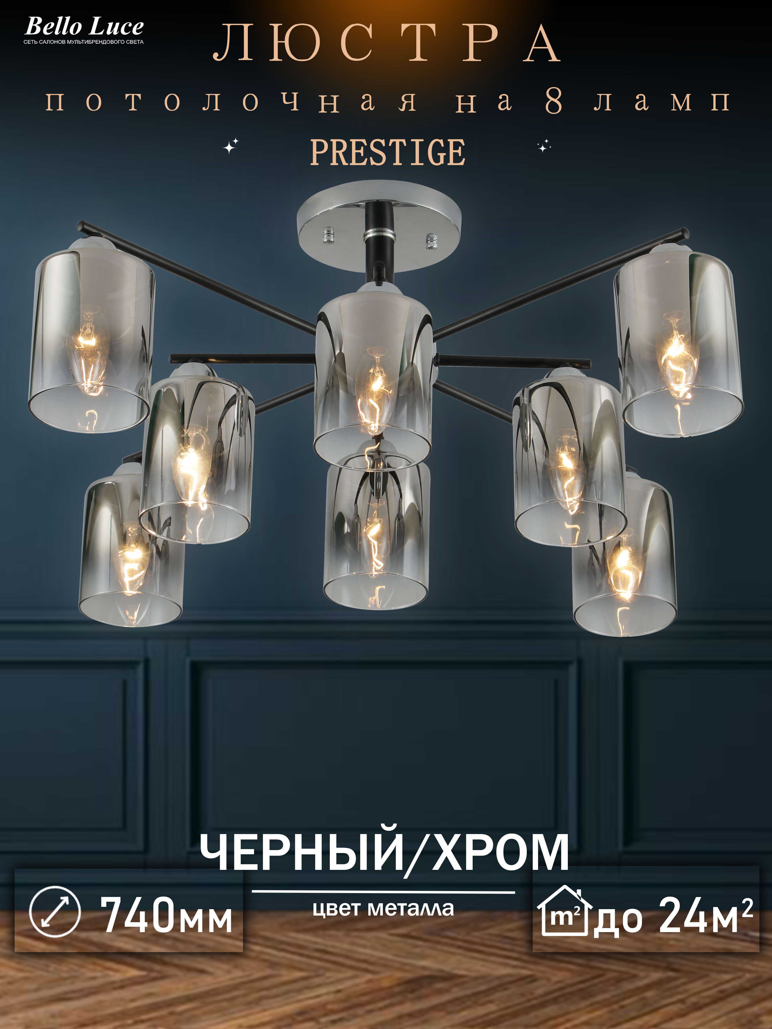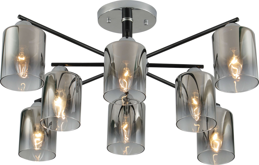 Компания Мегасвет предлагает вам оптом и в розницу Люстра Престиж потолочная черная+хром с тонированными плафонами на 8 ламп E27 по цене 7029 рублей.