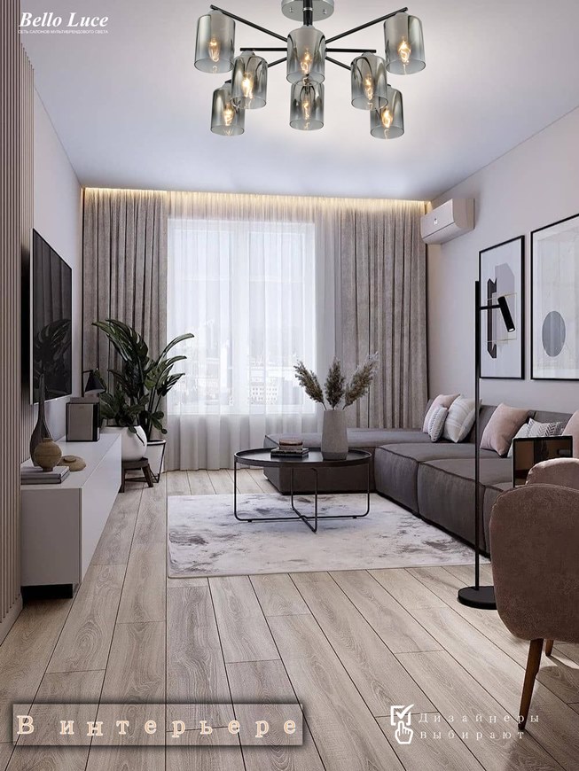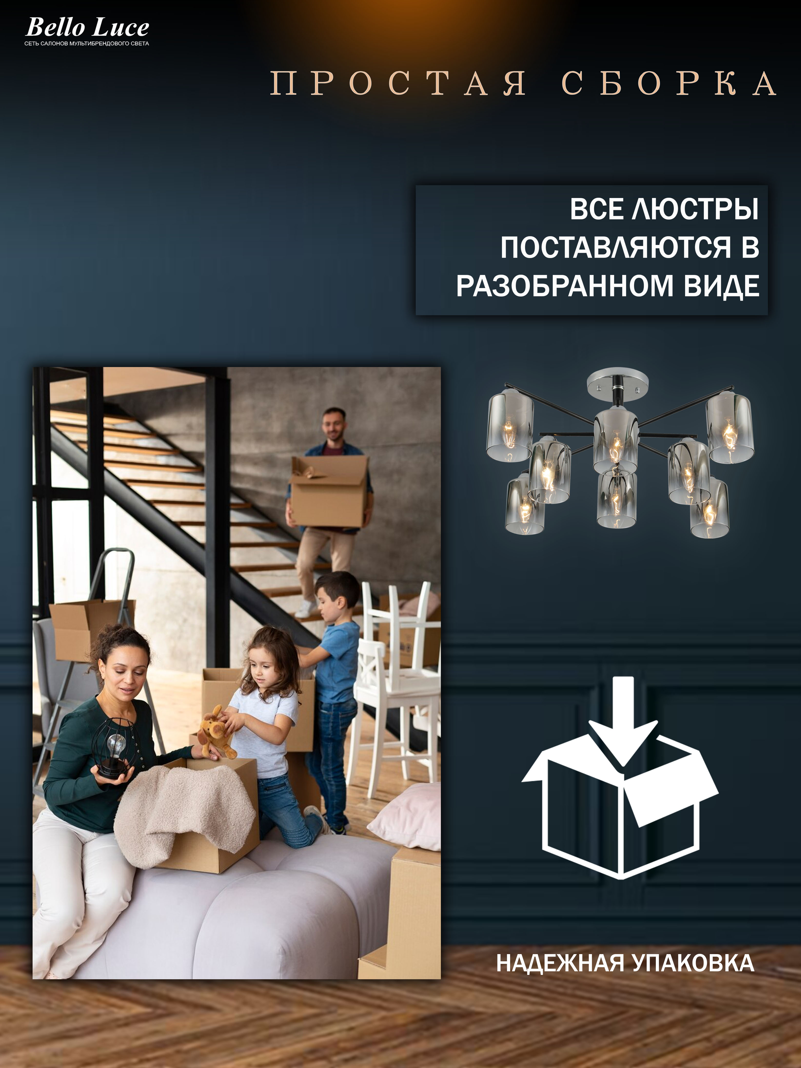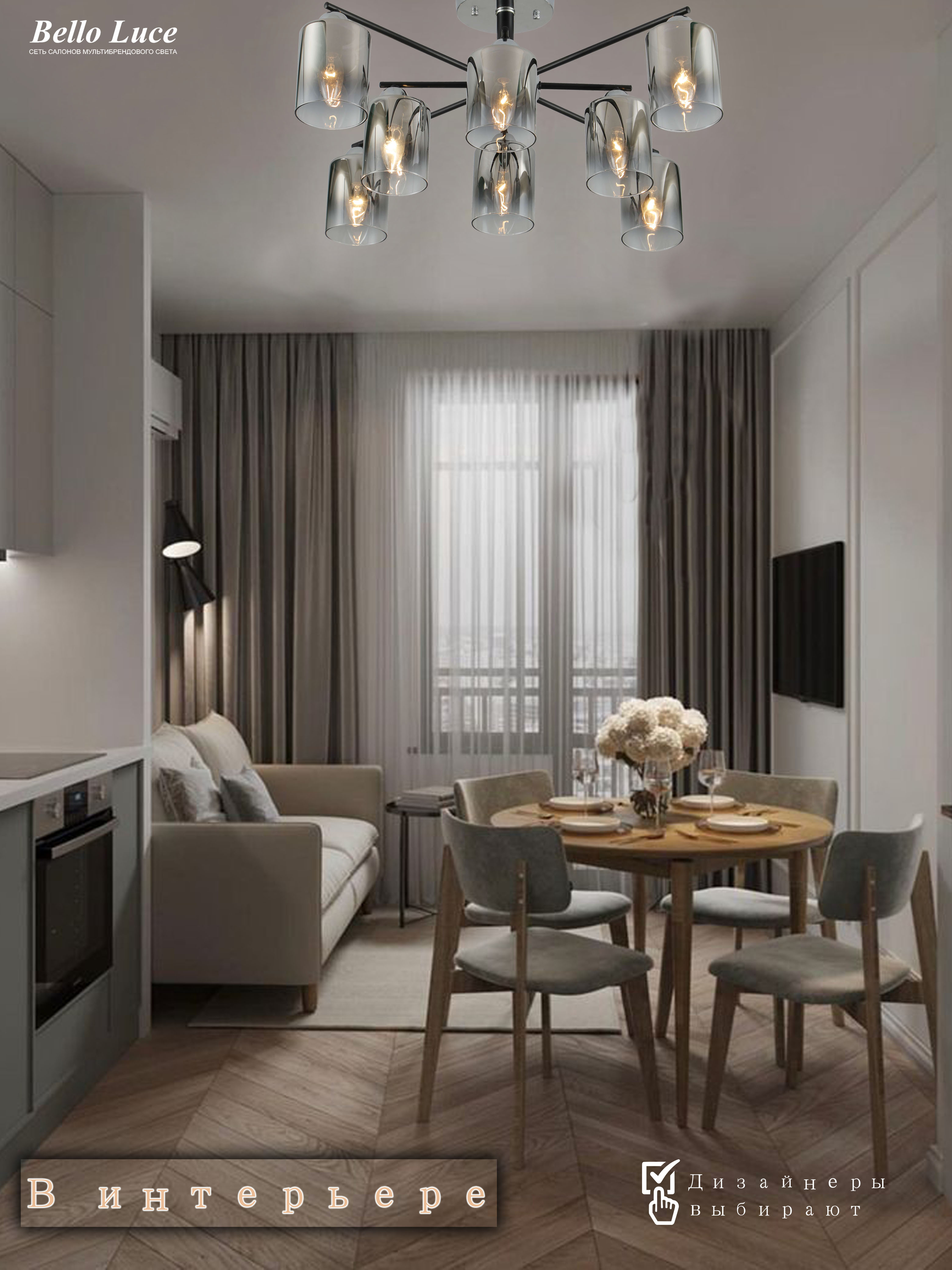 Люстра обеспечивает достаточно света для просторных помещений, делая их более комфортными и привлекательными. Настройте уровень освещения под свои предпочтения, выбрав подходящие лампы с нужной яркостью.