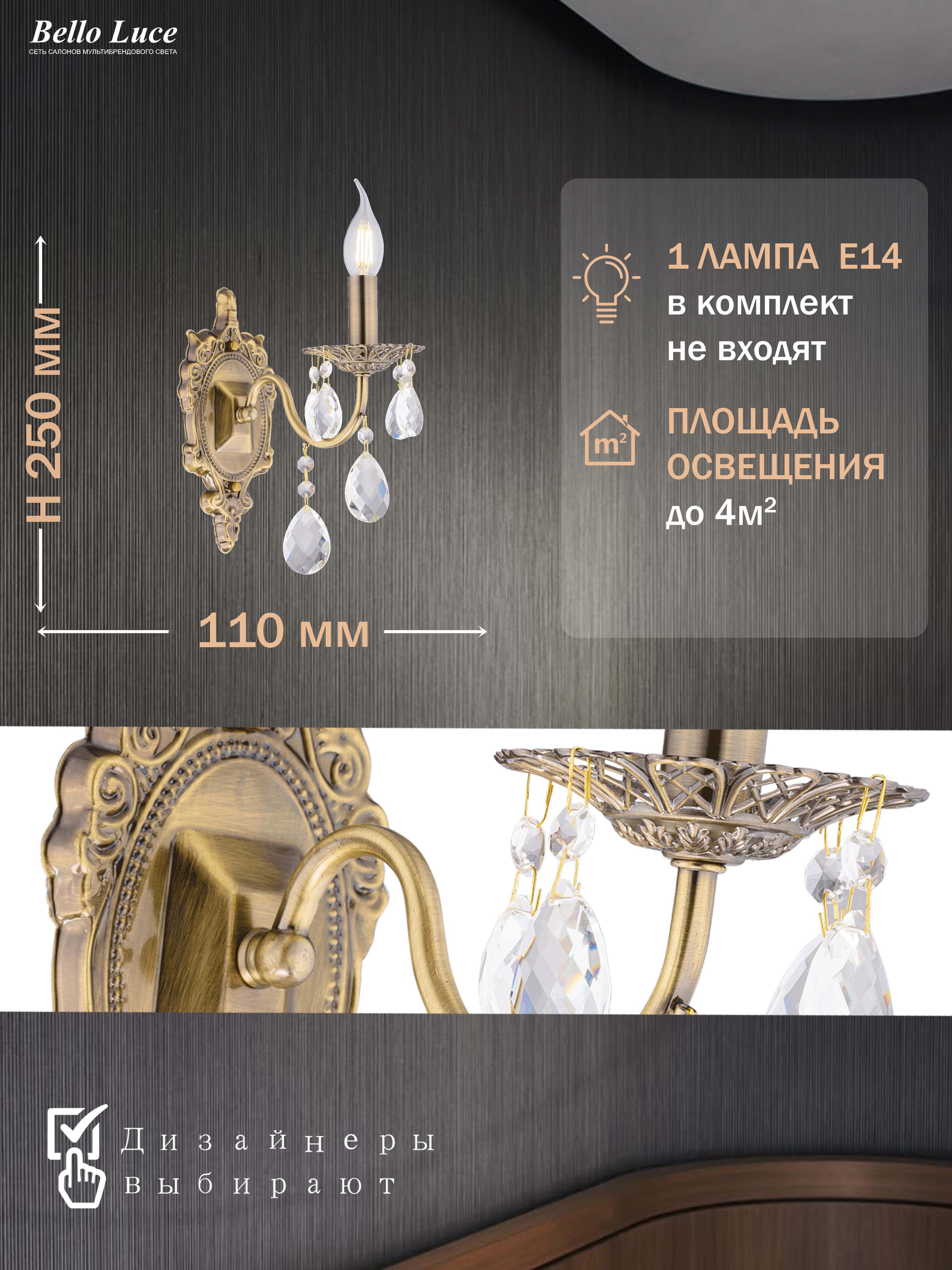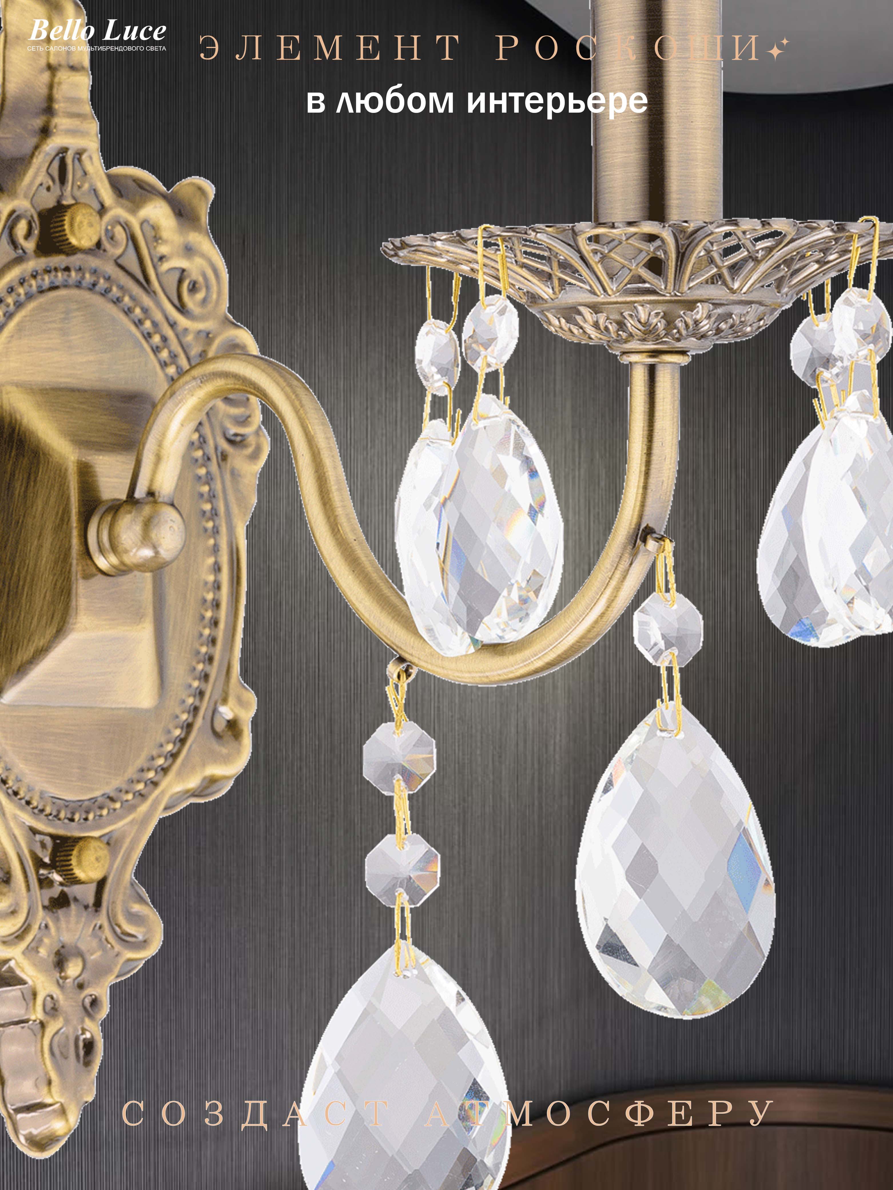 Компания Мегасвет предлагает вам оптом и в розницу Светильник настенный, бра Классика античная бронза с прозрачными хрустальными подвесками на 1 лампу E14 по цене 1773 рублей.