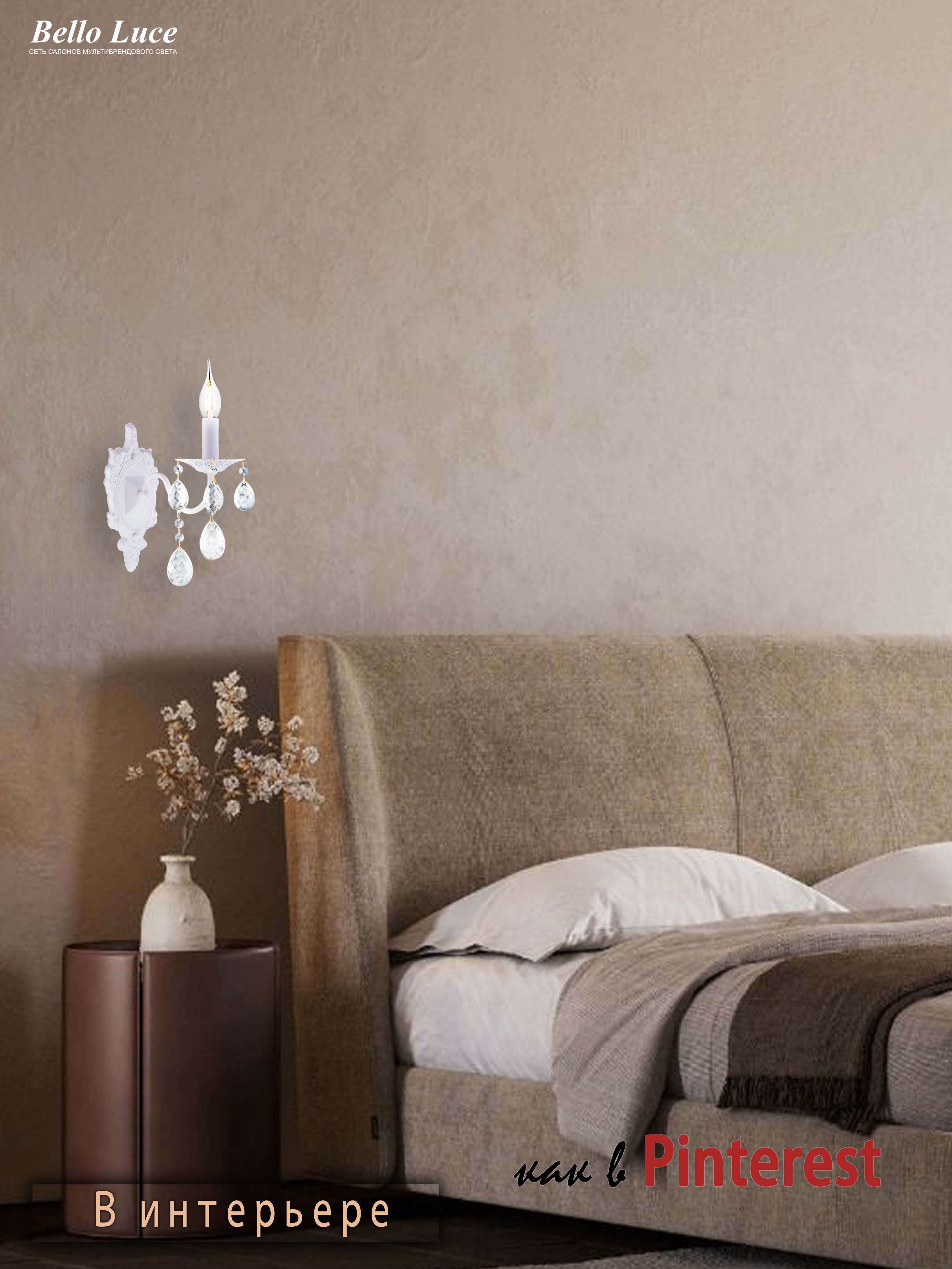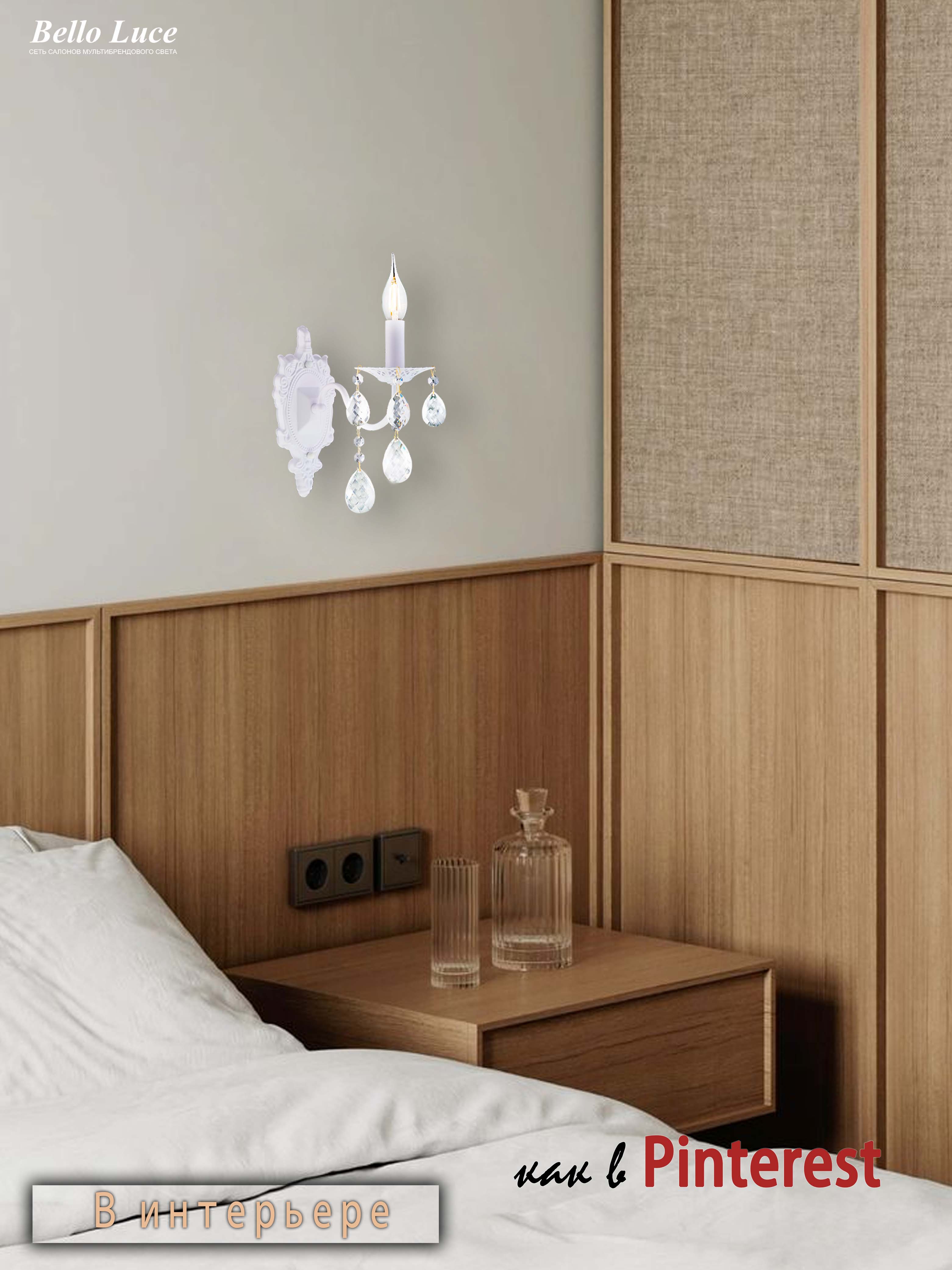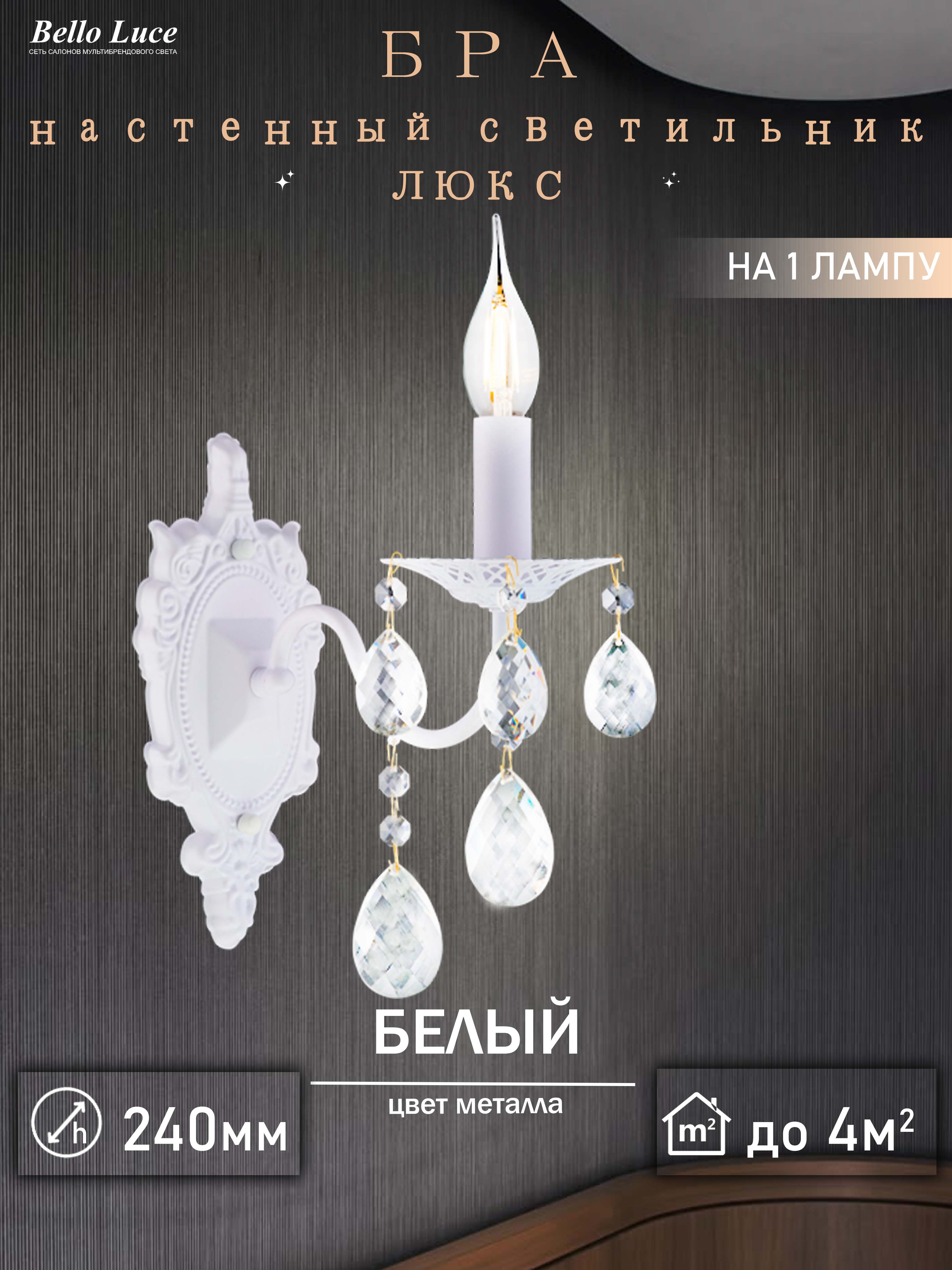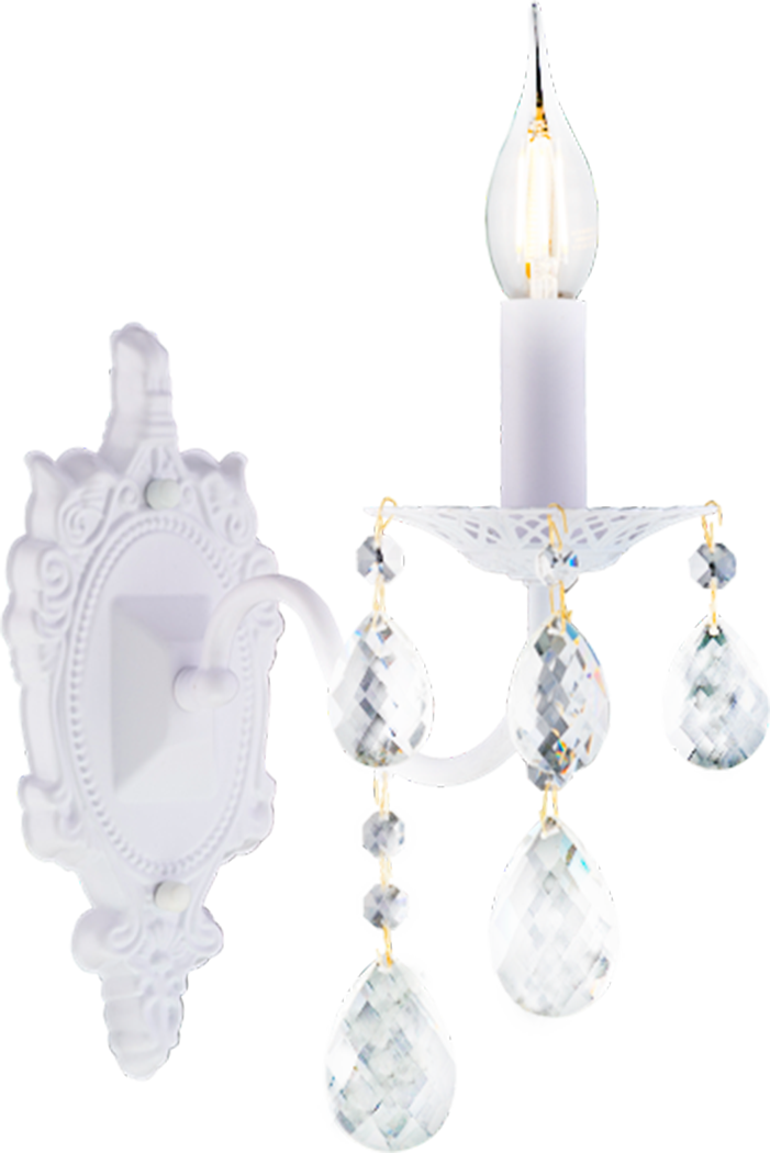 Компания Мегасвет предлагает вам оптом и в розницу Светильник настенный, бра Классика белая с прозрачными хрустальными подвесками на 1 лампу E14 по цене 1755 рублей.