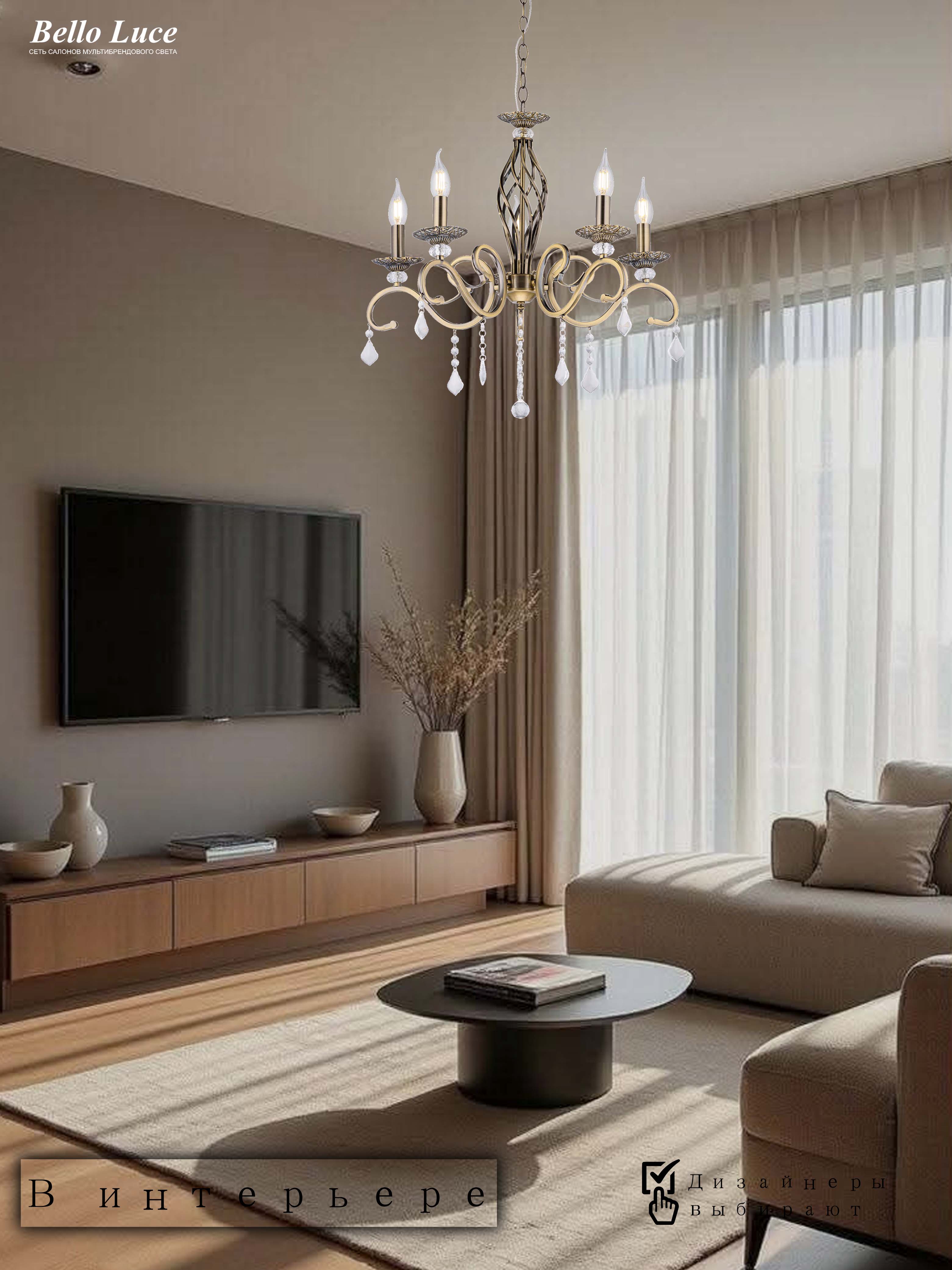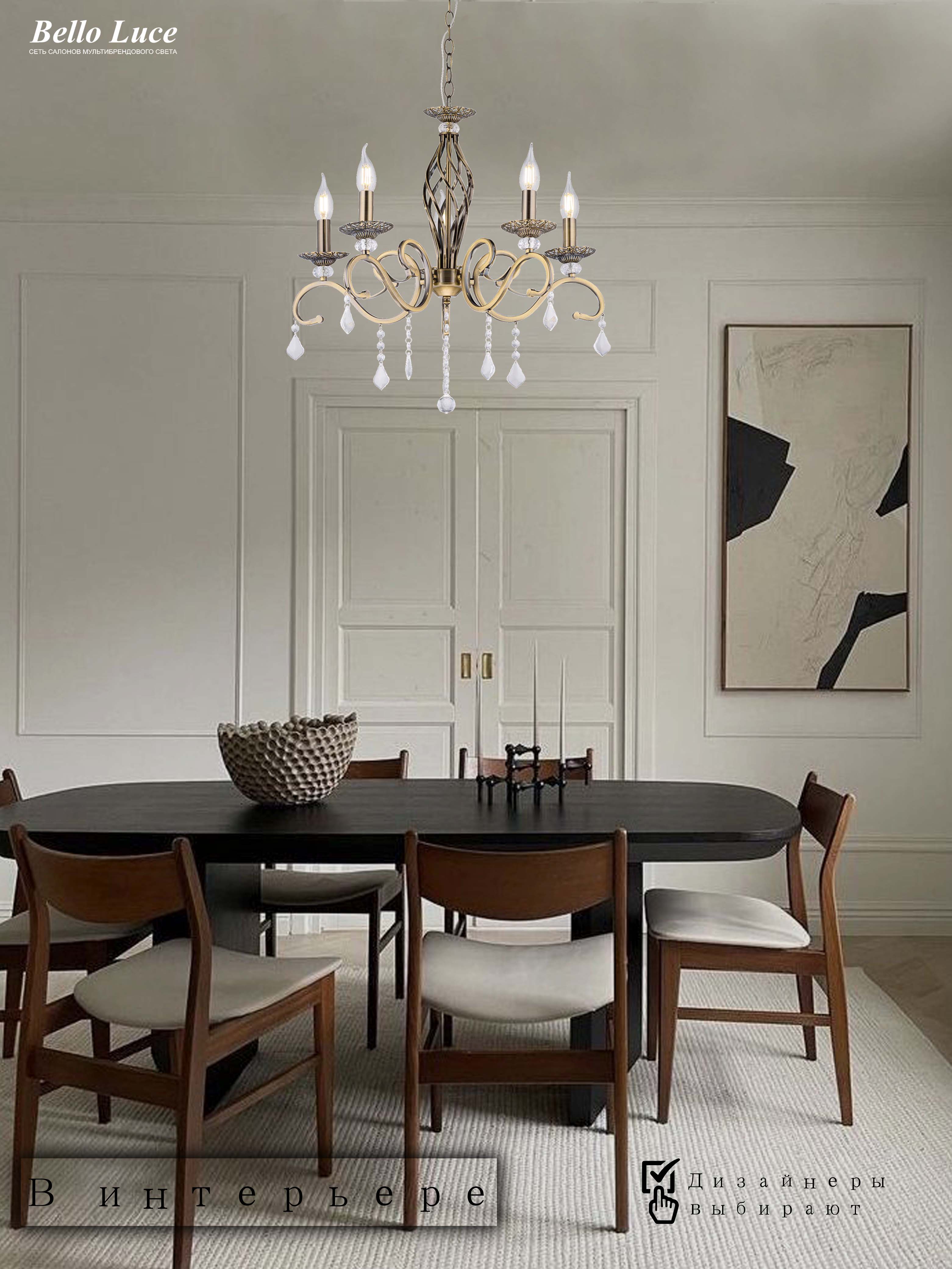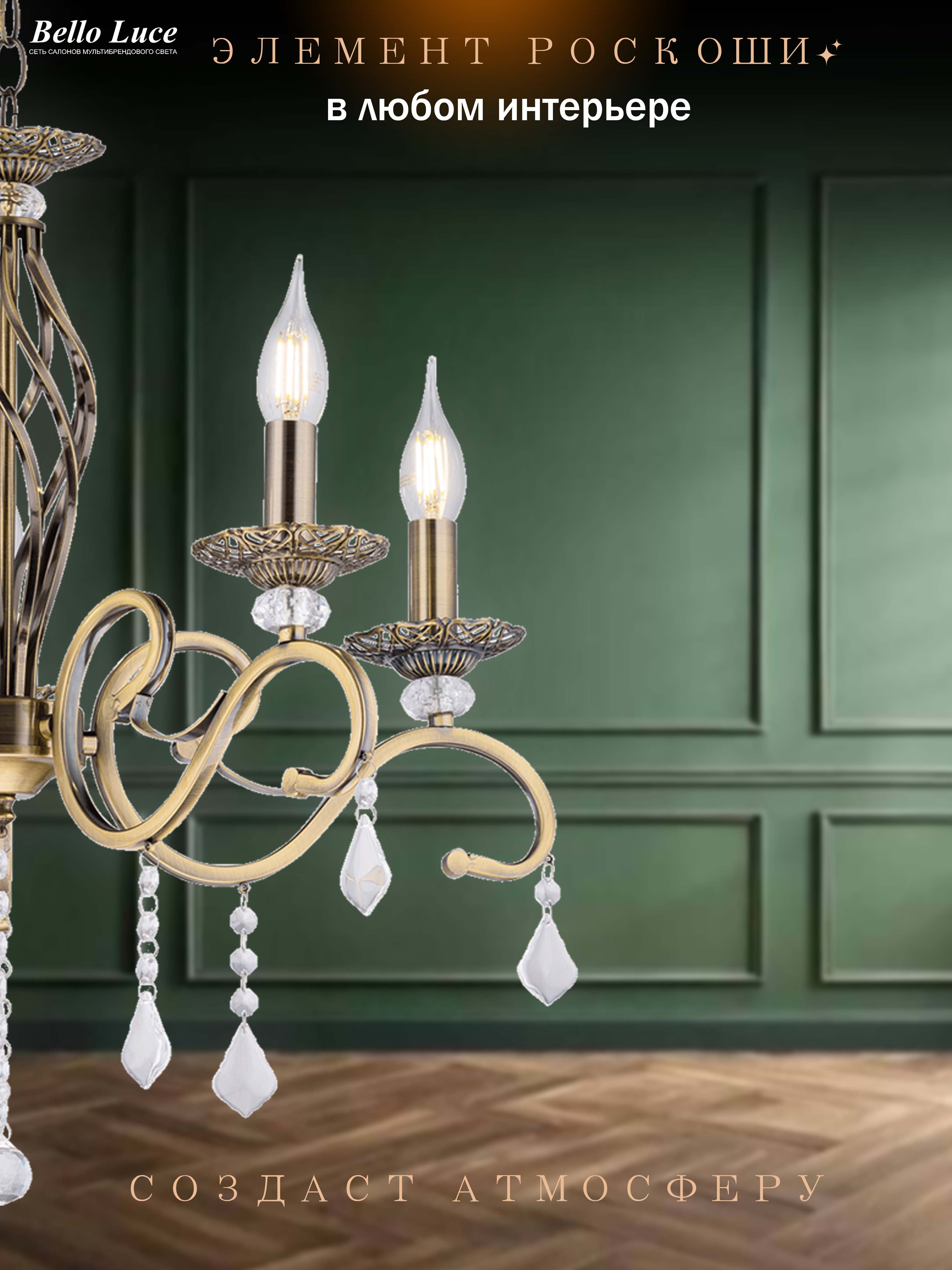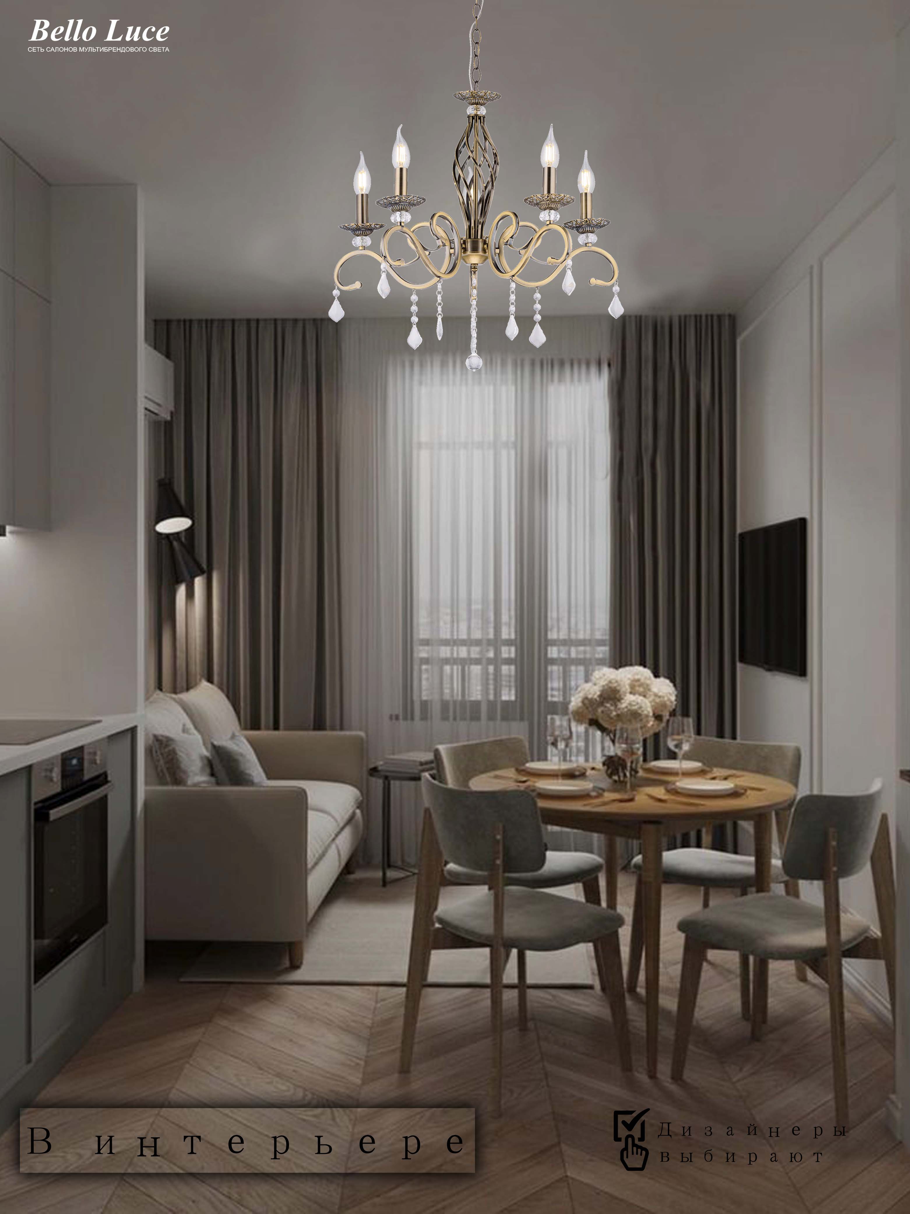 Она идеально впишется в разные интерьеры, будь то гостиная, спальня или обеденная зона. Хрустальные элементы добавляют изысканности и утонченности, а классический дизайн делает эту люстру универсальным выбором для разнообразных стилей — от традиционного до современного.