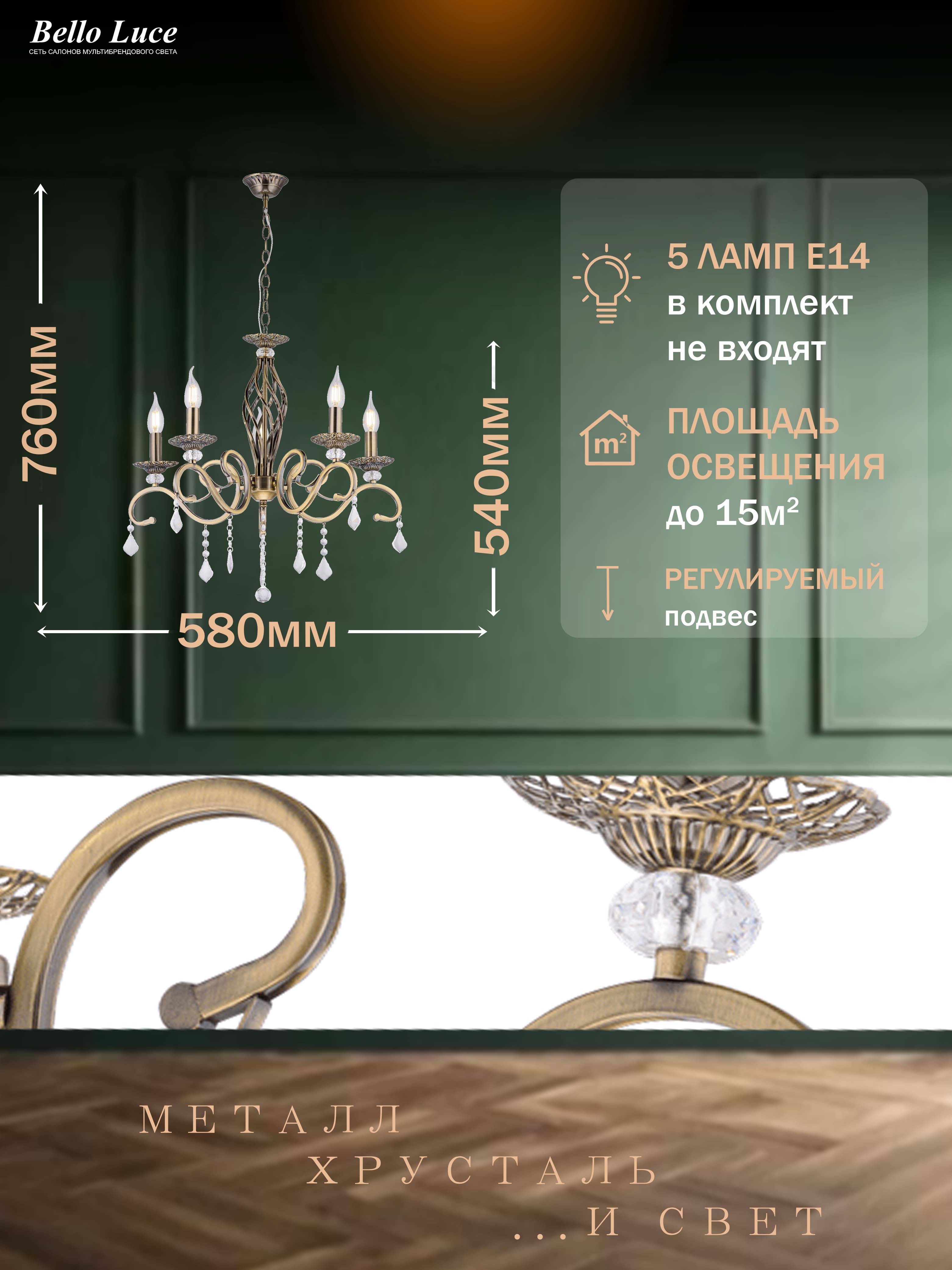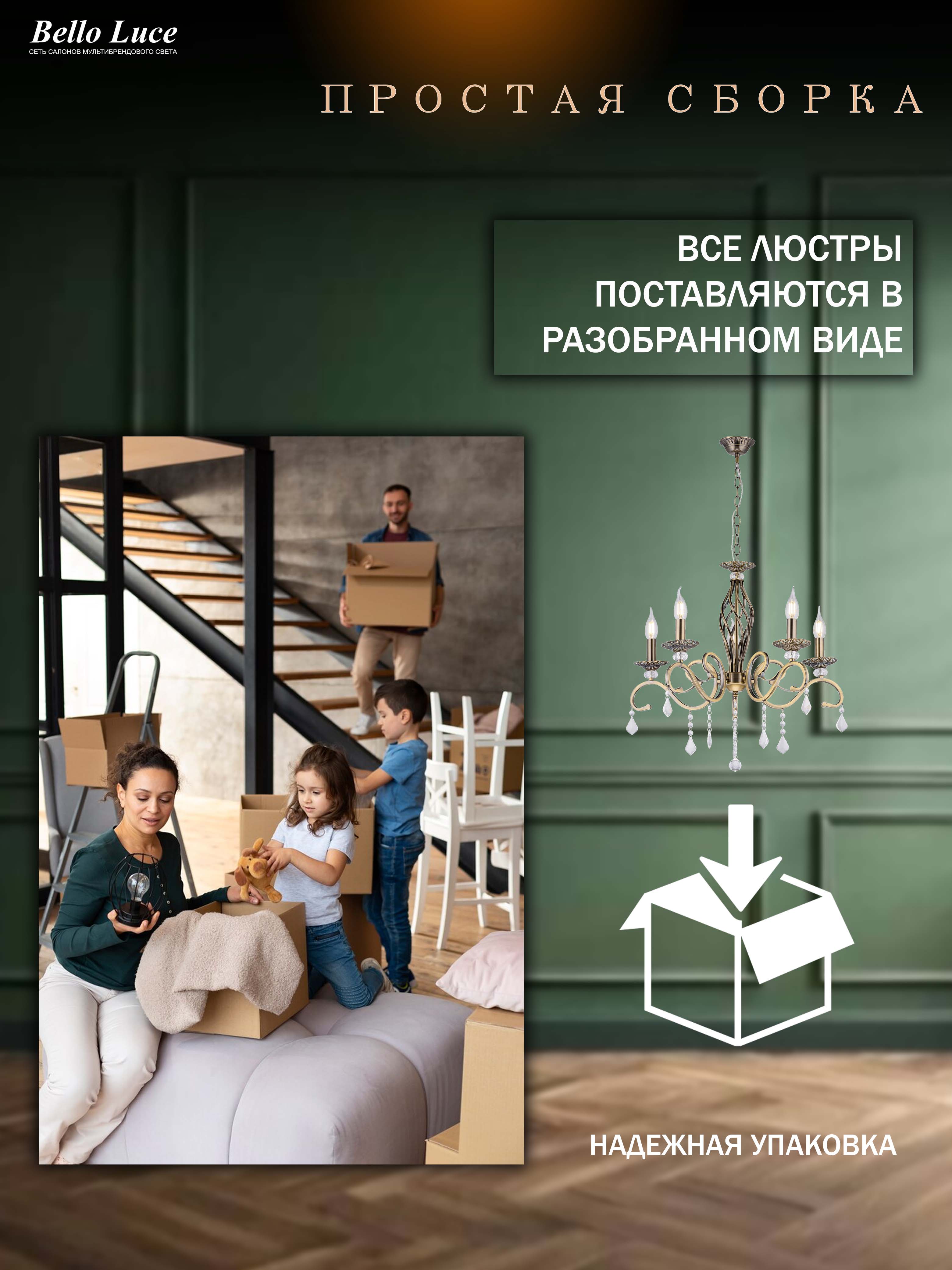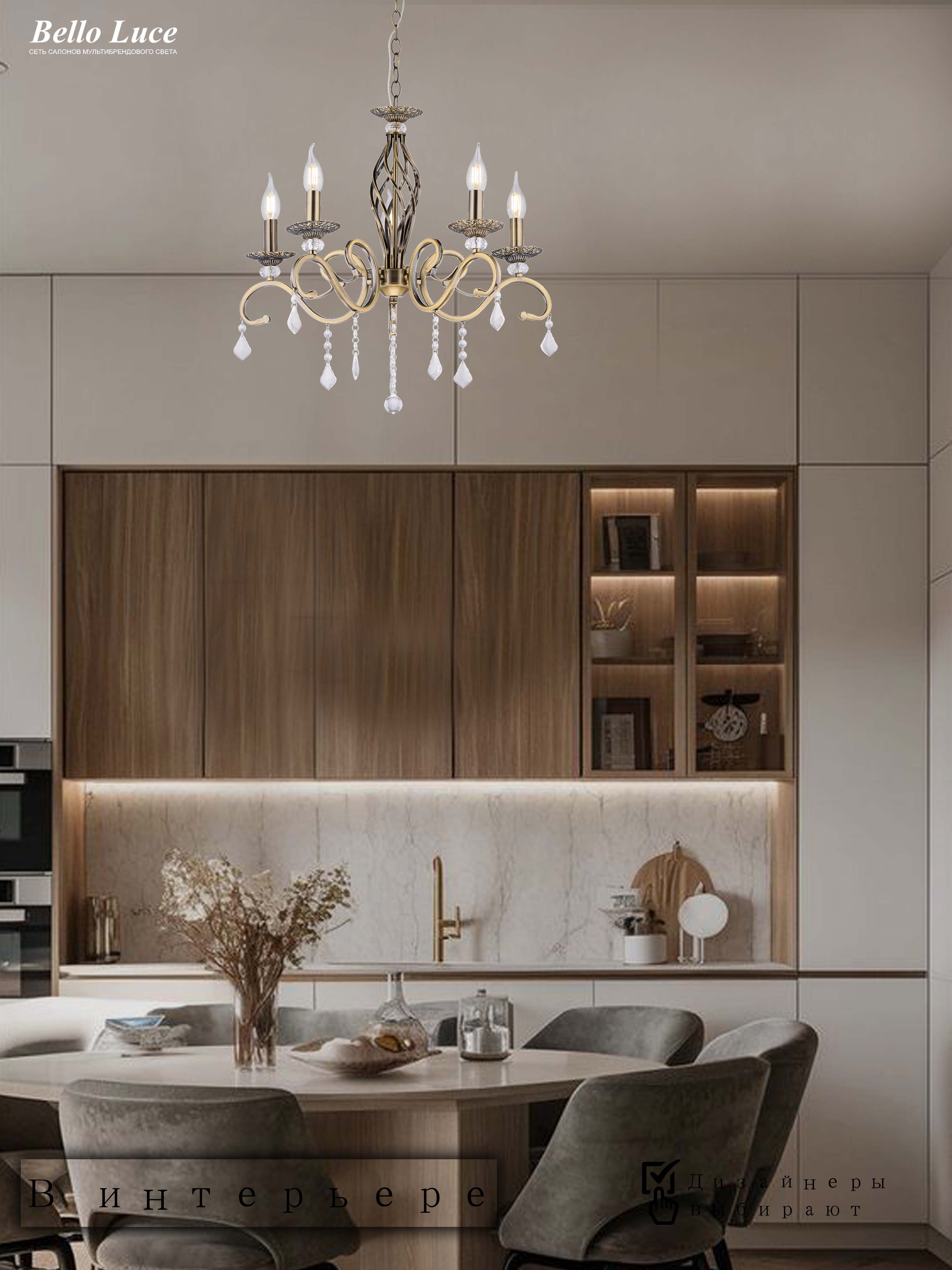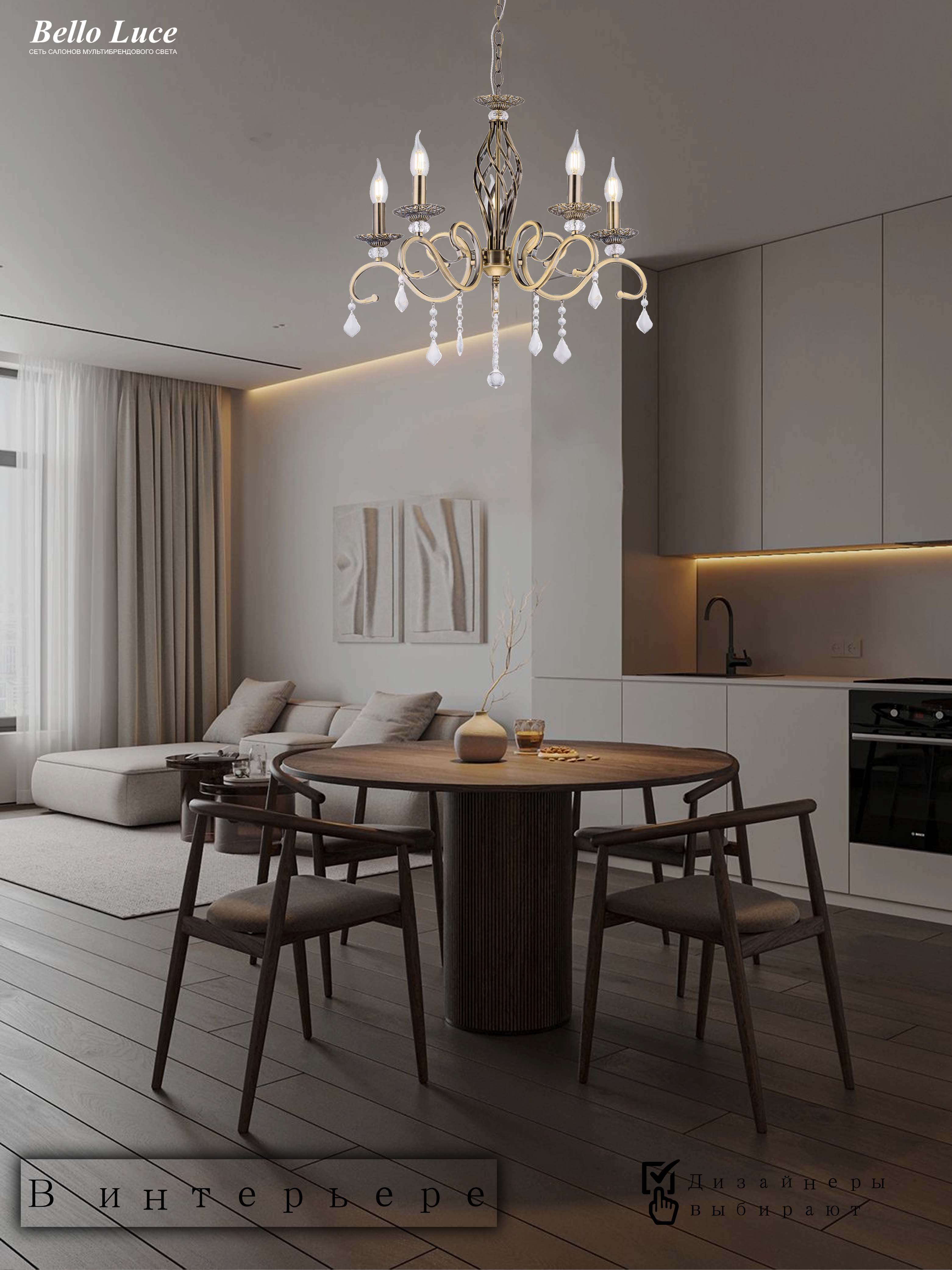 Она идеально впишется в разные интерьеры, будь то гостиная, спальня или обеденная зона. Хрустальные элементы добавляют изысканности и утонченности, а классический дизайн делает эту люстру универсальным выбором для разнообразных стилей — от традиционного до современного.